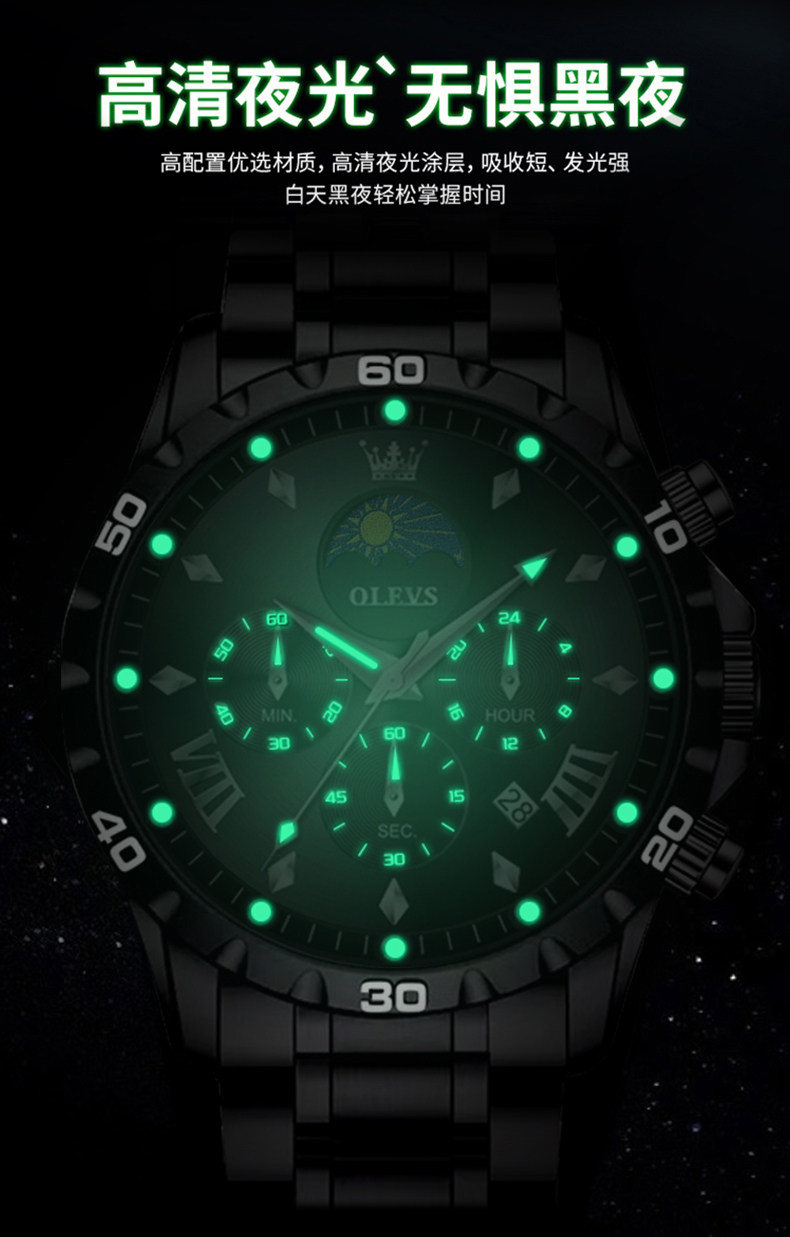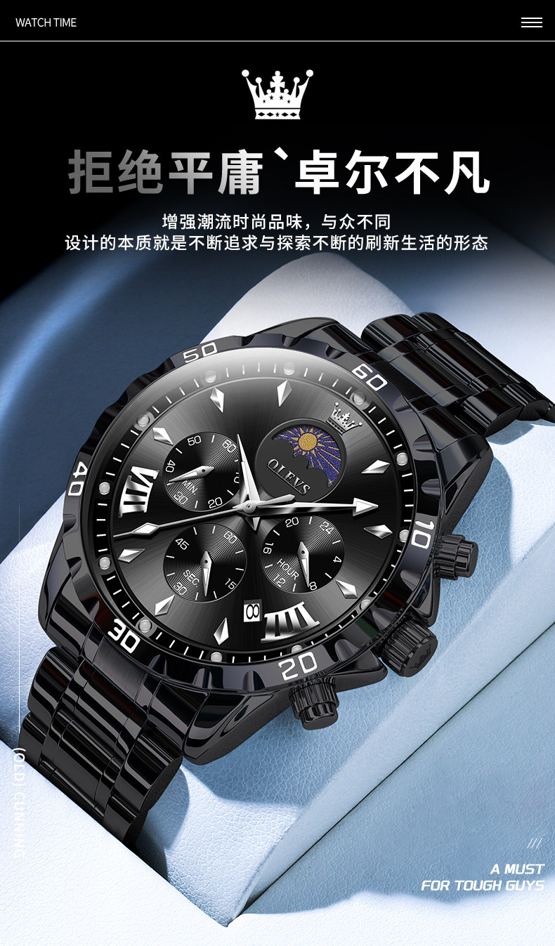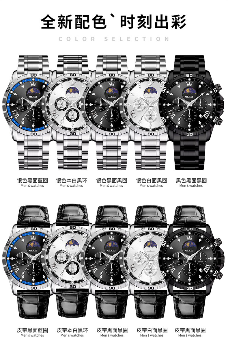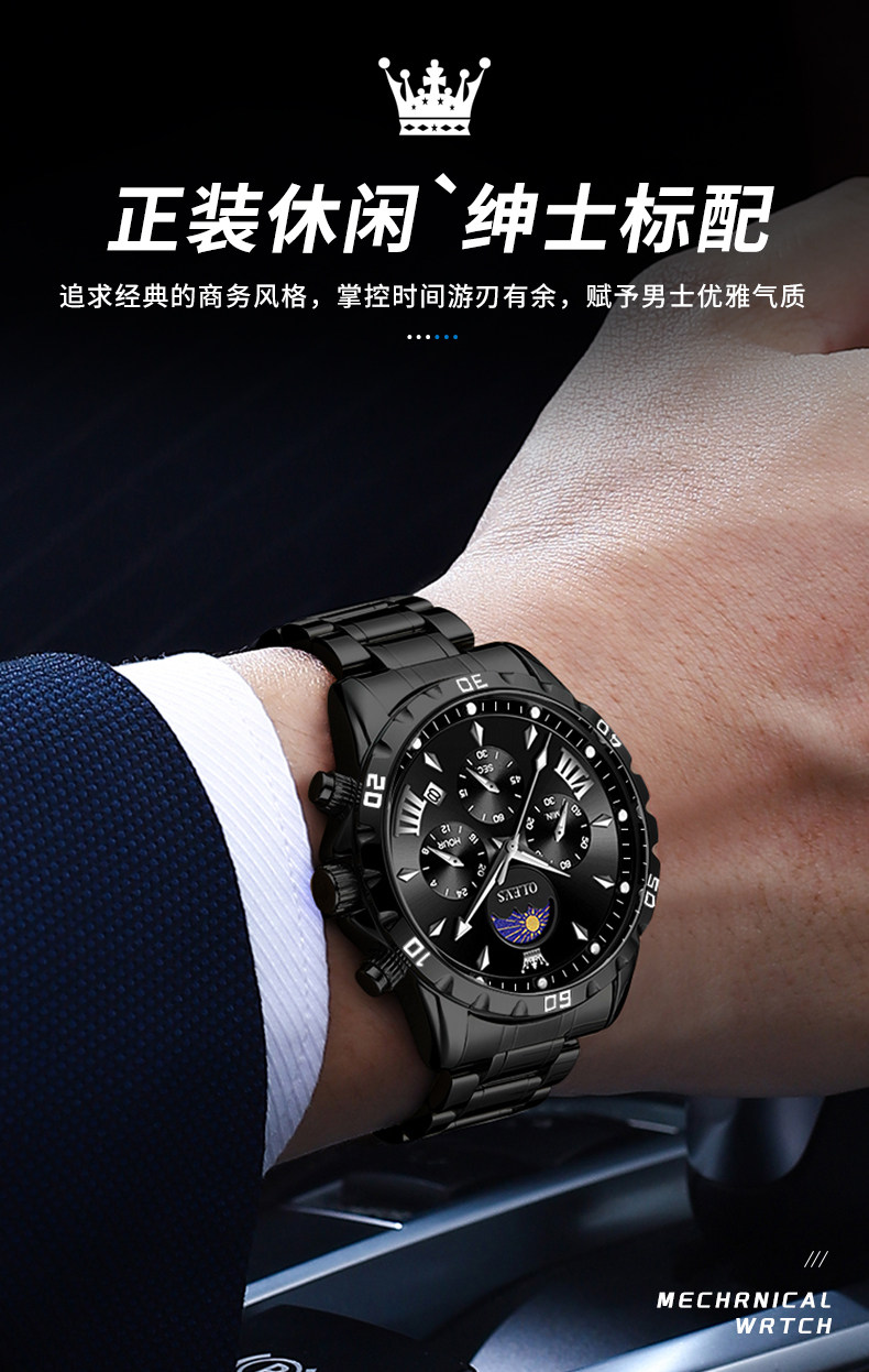 New Year's Gift Genuine Men's Watch Men's Mechanical Watch Business Versatile Multi-Functional Luminous Waterproof Quartz Men's Watch