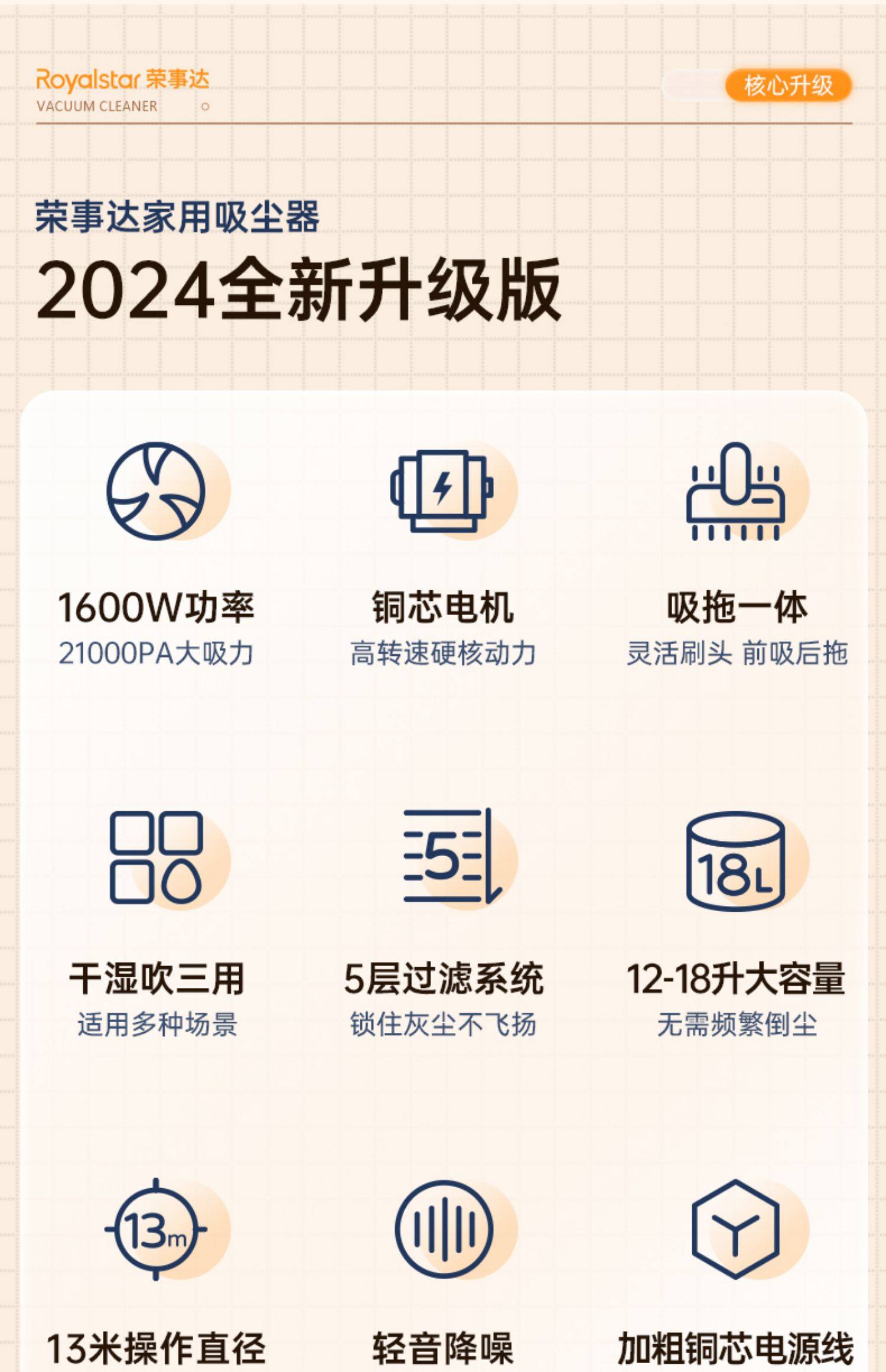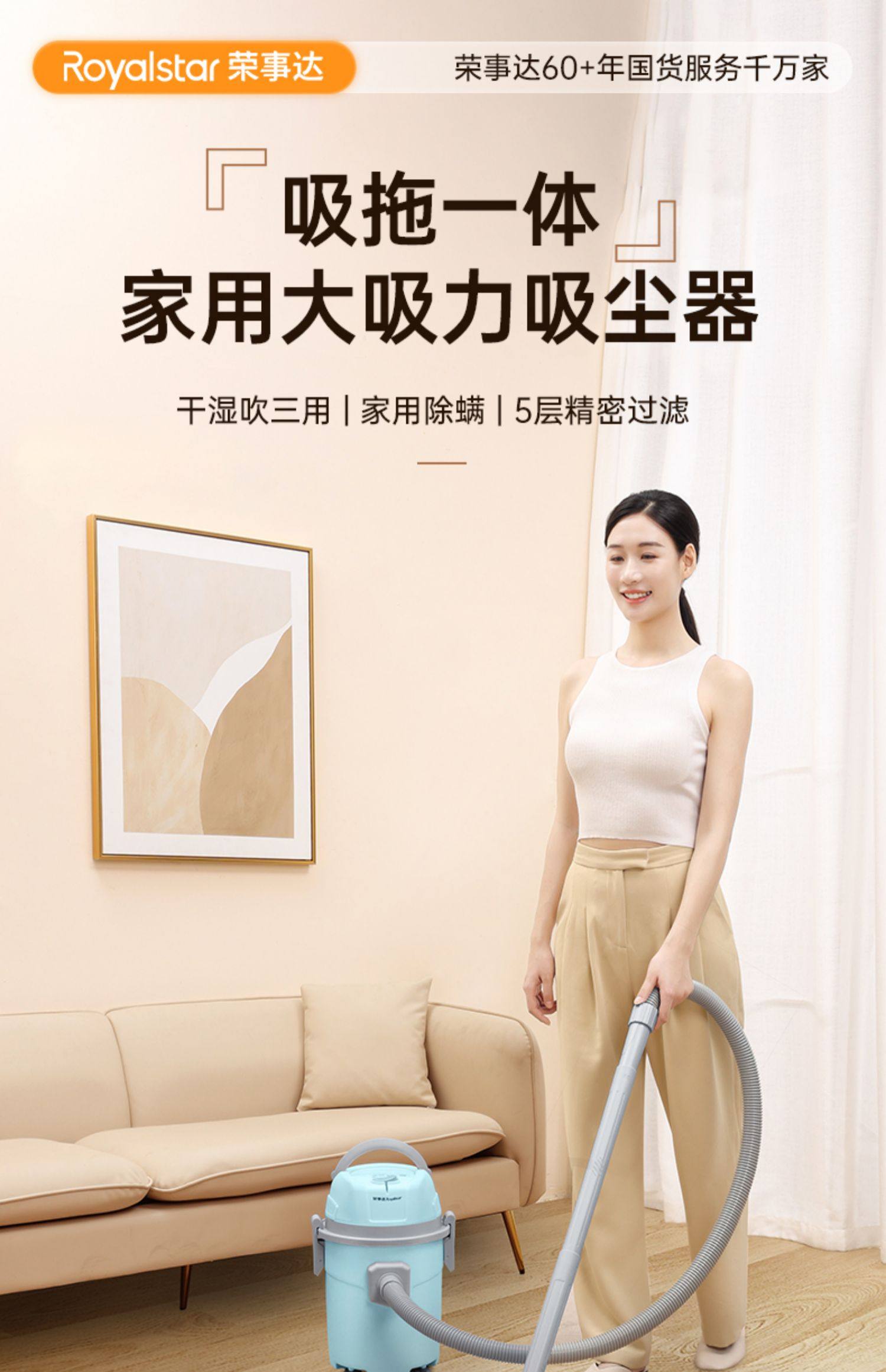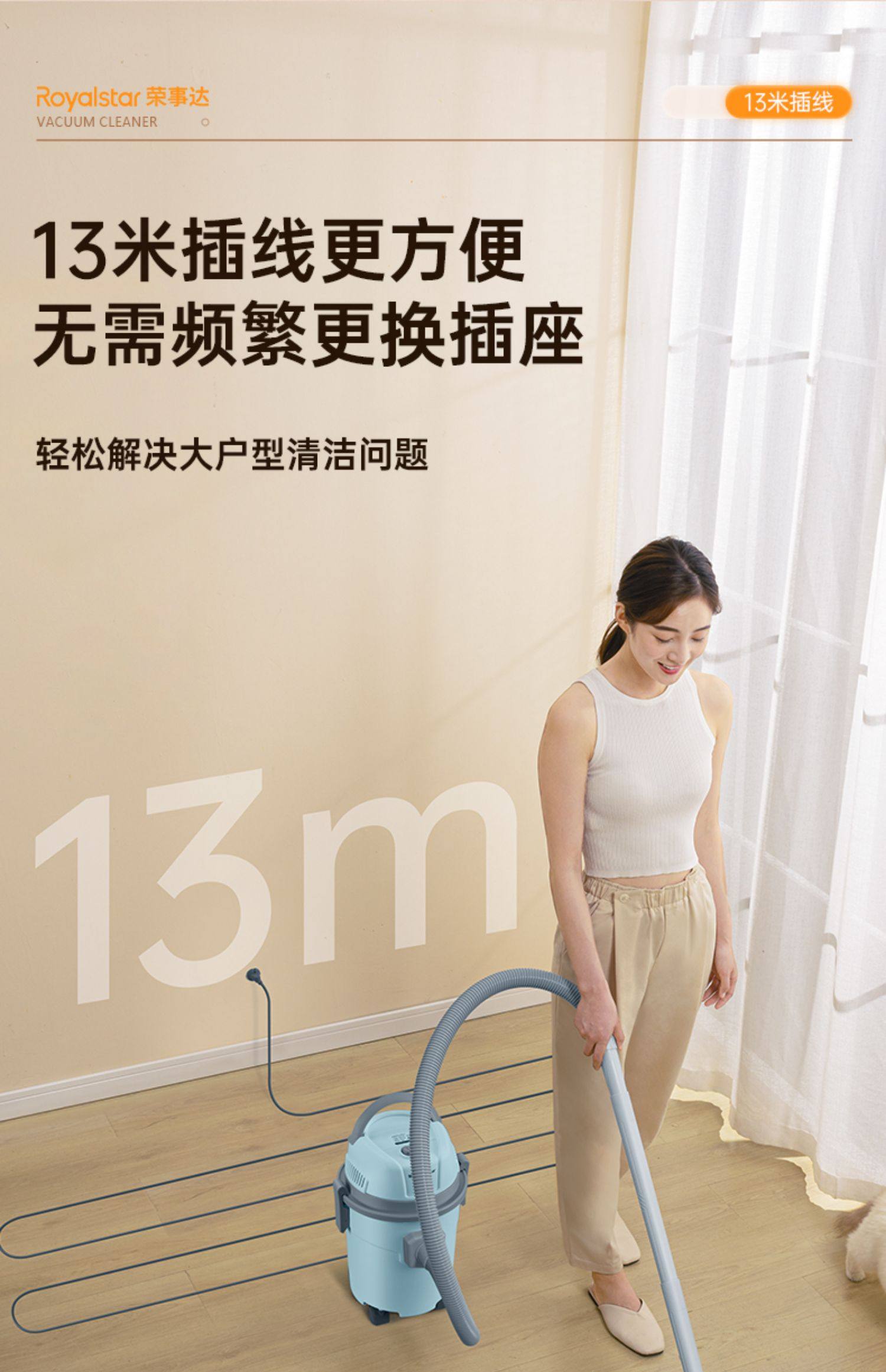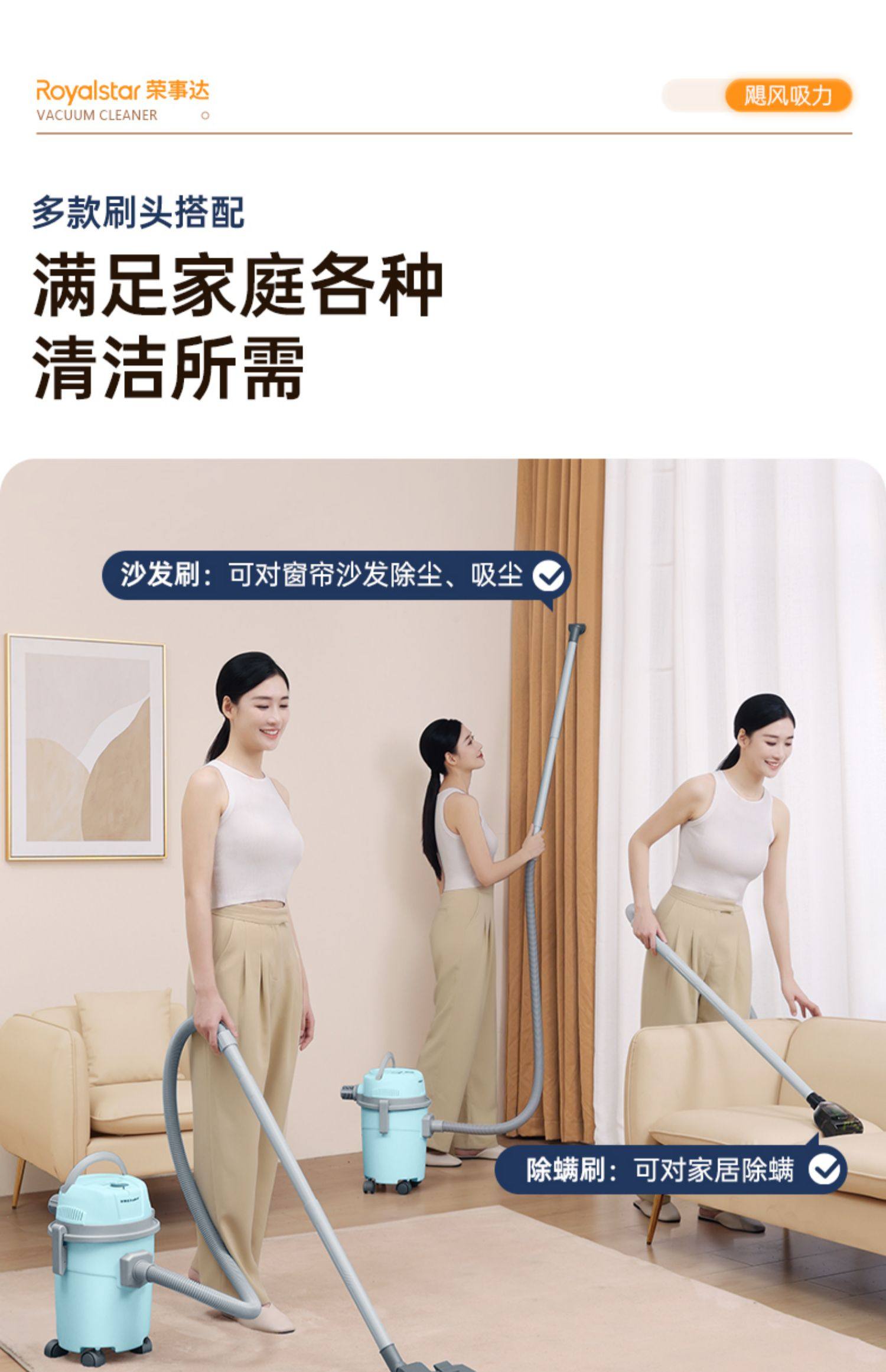 Royalstar Vacuum Cleaner for Home Use, High Suction Power, Suitable for Car Use, Powerful for Industrial Use, Integrated Suction and Mopping, Mite Removal Vacuum Cleaner