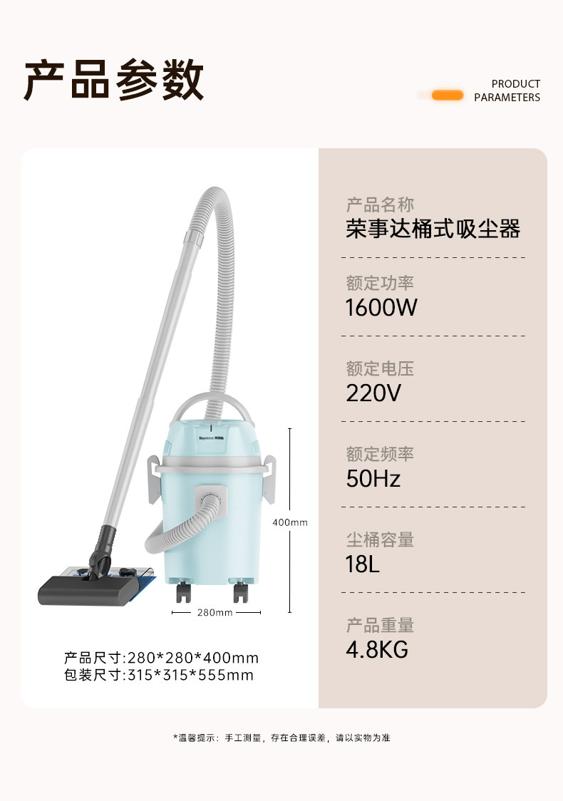 | Color Classification | [State-Owned Brand, 30-Day Trial, 10% Off if Fake],[Nationwide Warranty, Lifetime Warranty, Replacement and Repair],[Official Warehouse Delivery, Invented Today and Delivered Tomorrow, Free with a Machine],[Basic Model]1200W+69000Pa Suction Power+12L[Dry and Blow Dual Use],[Standard Model]1200W+69000Pa Suction Power+15L[Dry and Blow Dual-Purpose 9-Piece Suction Head Set],[Anti-Mite Model]1200W+69000Pa Suction Power+18L[Dry and Blow Dual-Purpose + Bonus Mite Removal Brush],[Basic Vacuum Model]1400W+89000Pa Strong Suction+12L[Three Uses for Dry, Wet and Blowing],[All-In-One Vacuum and Mop - Standard Model]1400W+89000Pa Strong Suction+15L[Wet, Dry and Blowing Three-Purpose + Dust Barrier and Double Filter],[All-In-One Premium Vacuum and Mop]1400W+89000Pa Strong Suction+18L[Wet, Dry and Blowing Three-Purpose + Dust Barrier and Double Filter + Thickened Barrel],[All-In-One Vacuum and Mop to Remove Mites]1400W+89000Pa Strong Suction+18L[Wet, Dry and Blowing Three-Purpose + Dust Barrier and Double Filter + Mite Removal Brush + Thickened Bucket],[Basic Vacuum Model]1600W+99000Pa Explosive Suction+15L[Three Uses for Dry, Wet and Blowing],[All-In-One Vacuum and Mop - Standard Model]1600W+99000Pa Explosive Suction+15L[Wet, Dry and Blowing Three-Purpose + Dust Barrier Double Filtration],[All-In-One Premium Vacuum and Mop]1600W+99000Pa Explosive Suction+18L[Wet, Dry and Blowing Three-Purpose + Dust Barrier and Double Filter + Thickened Barrel],[All-In-One Vacuum and Mop to Remove Mites]1600W+99000Pa Explosive Suction+18L[Three-Purpose Wet and Dry Blowing + Dust Barrier Double Filtration + Mite Removal Brush + Thickened Bucket] |