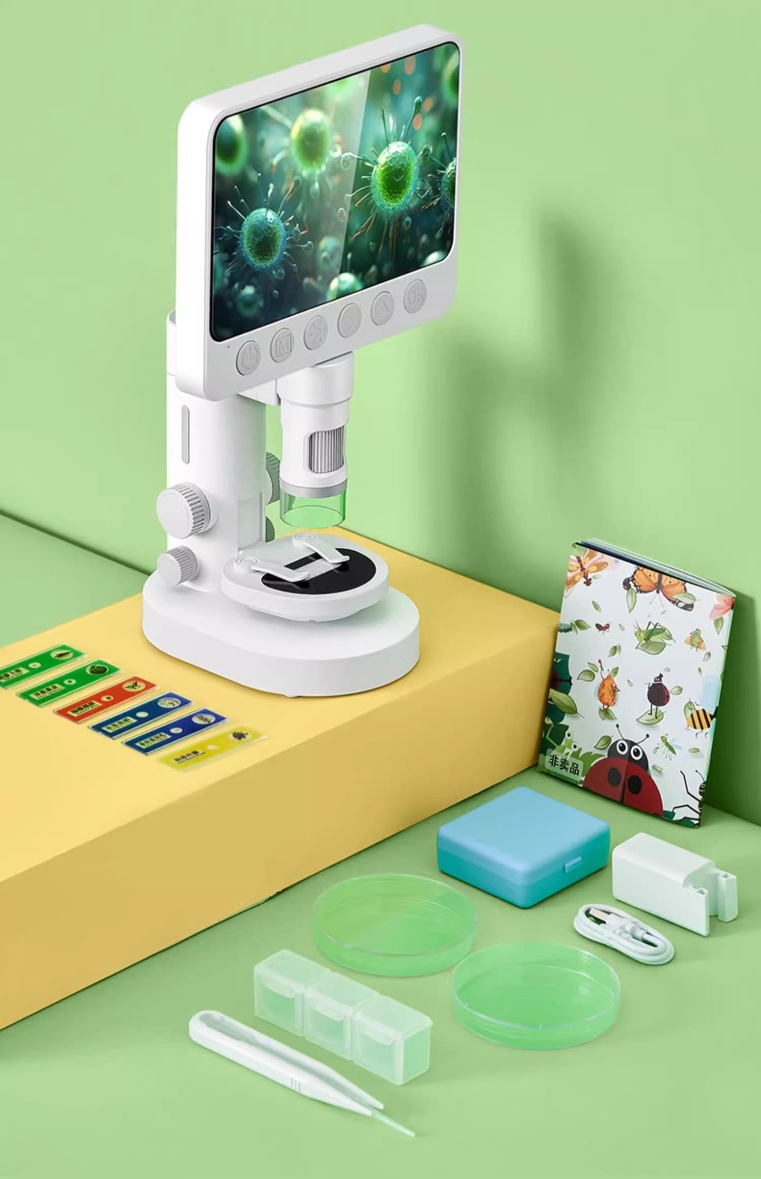 Children's Electron Microscope for Middle School and Elementary School Students, High Magnification and High Definition, Can View Bacterial Cells and Organisms, with Screen Magnifier, Birthday Gift for Boys, Desktop, Handheld, Portable, with Camera Function