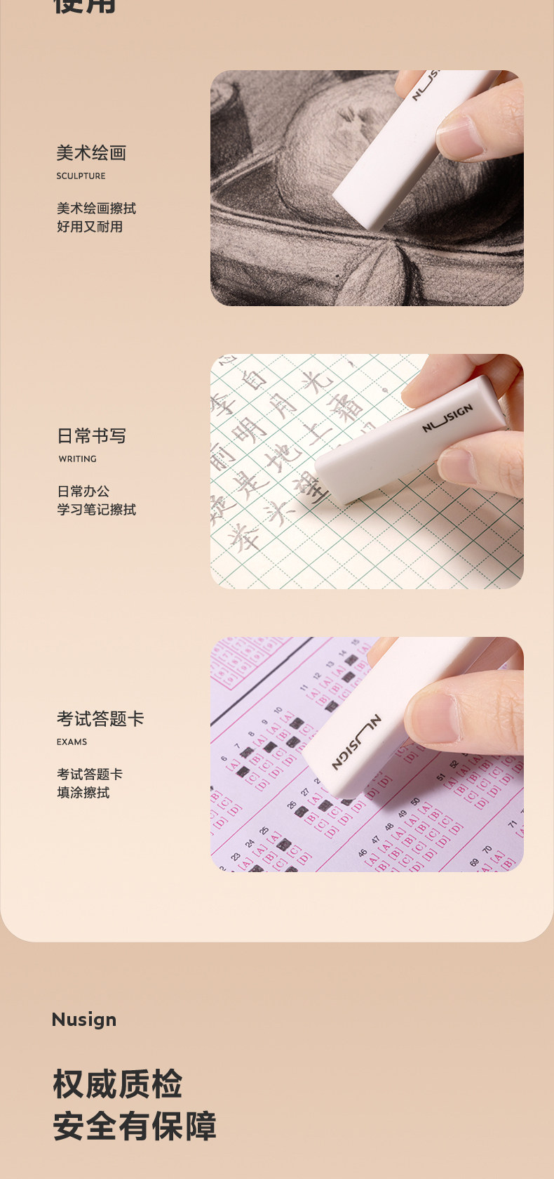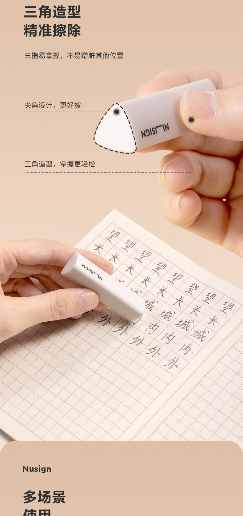 Deli New Sai Triangular Eraser for Elementary Students, Erases into a Line, Wipes into a Strip, Clean and Leaves No Marks, 2B Low-Dust Eraser, Children's Sketching Art Eraser