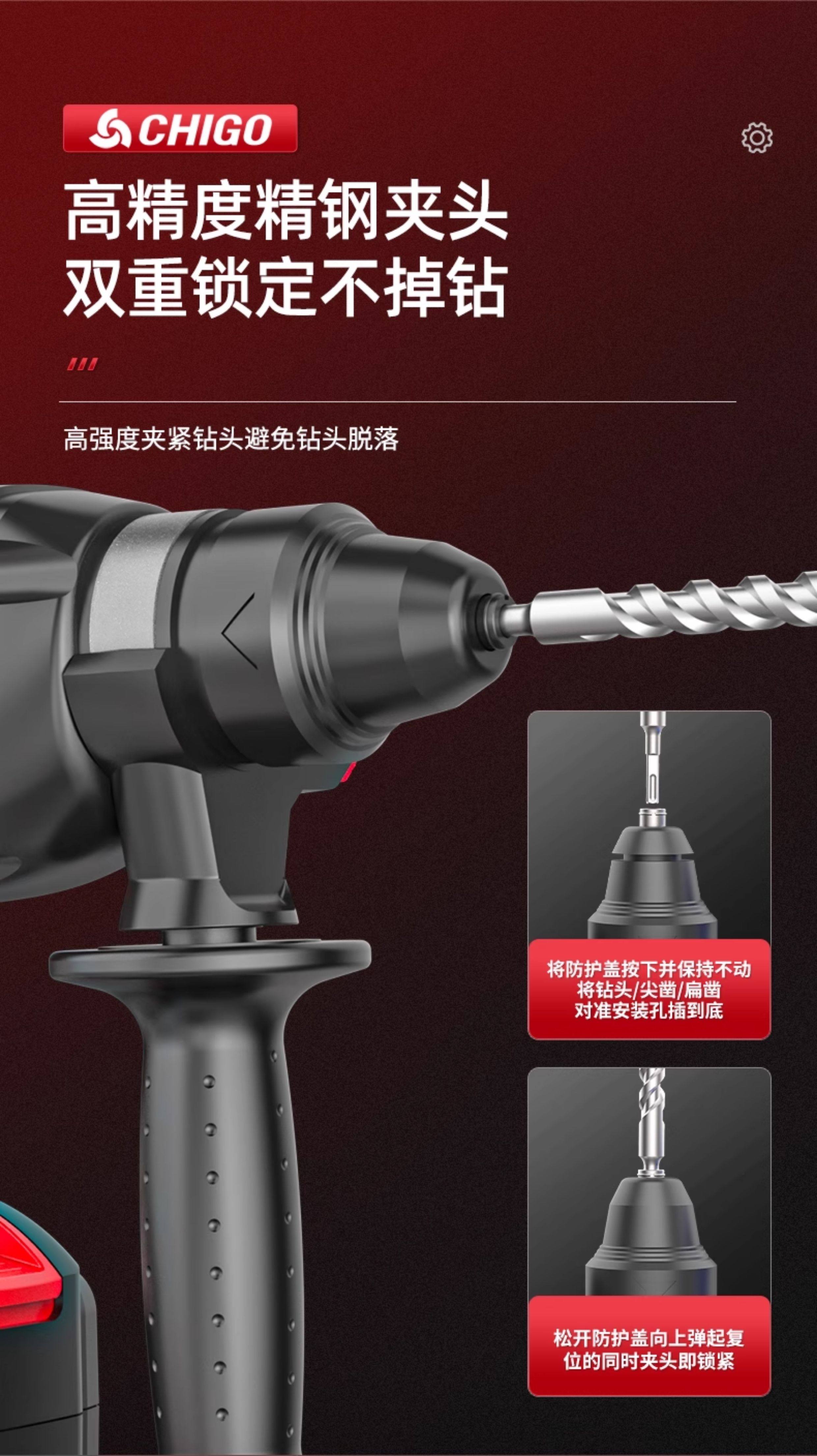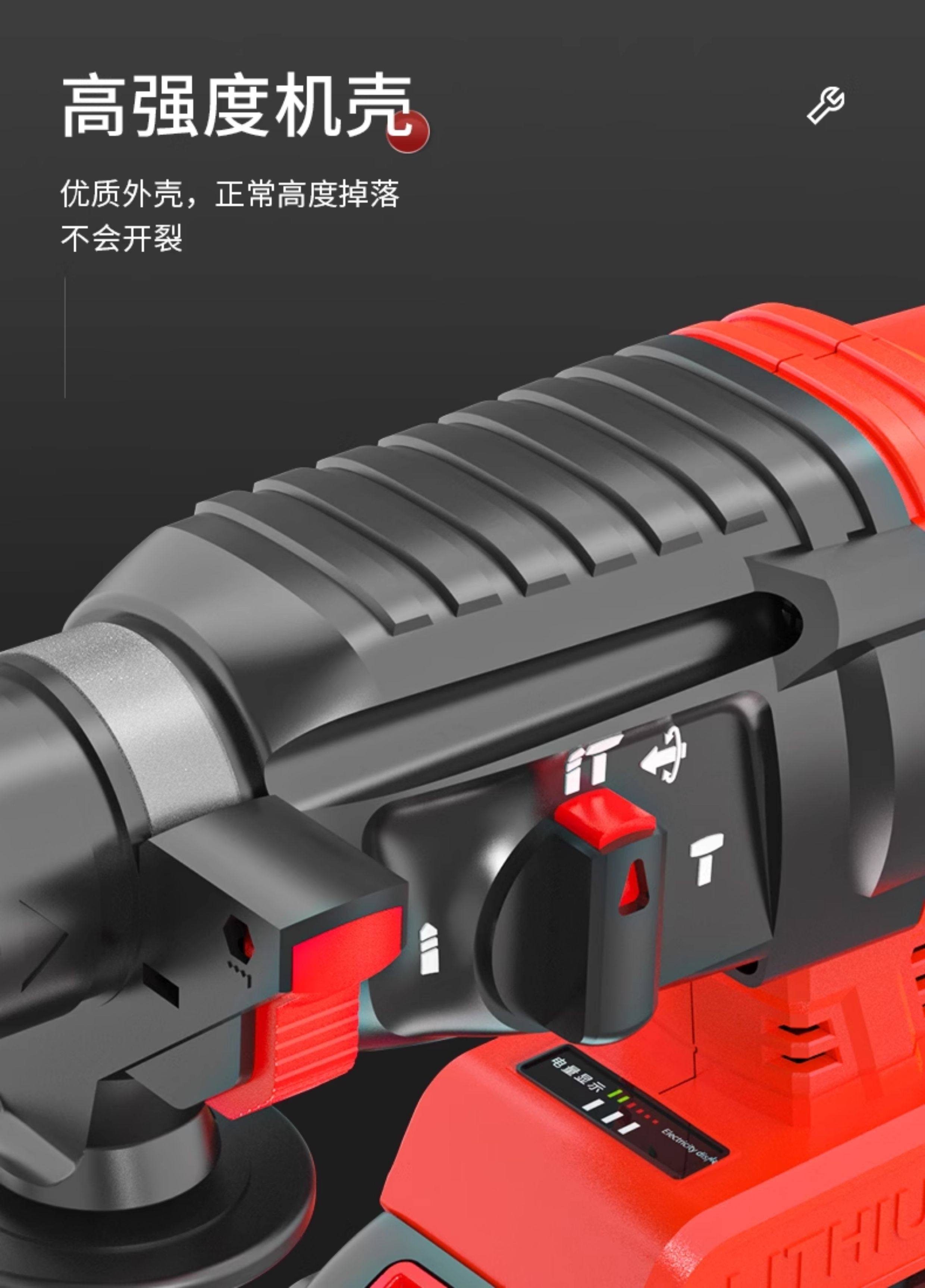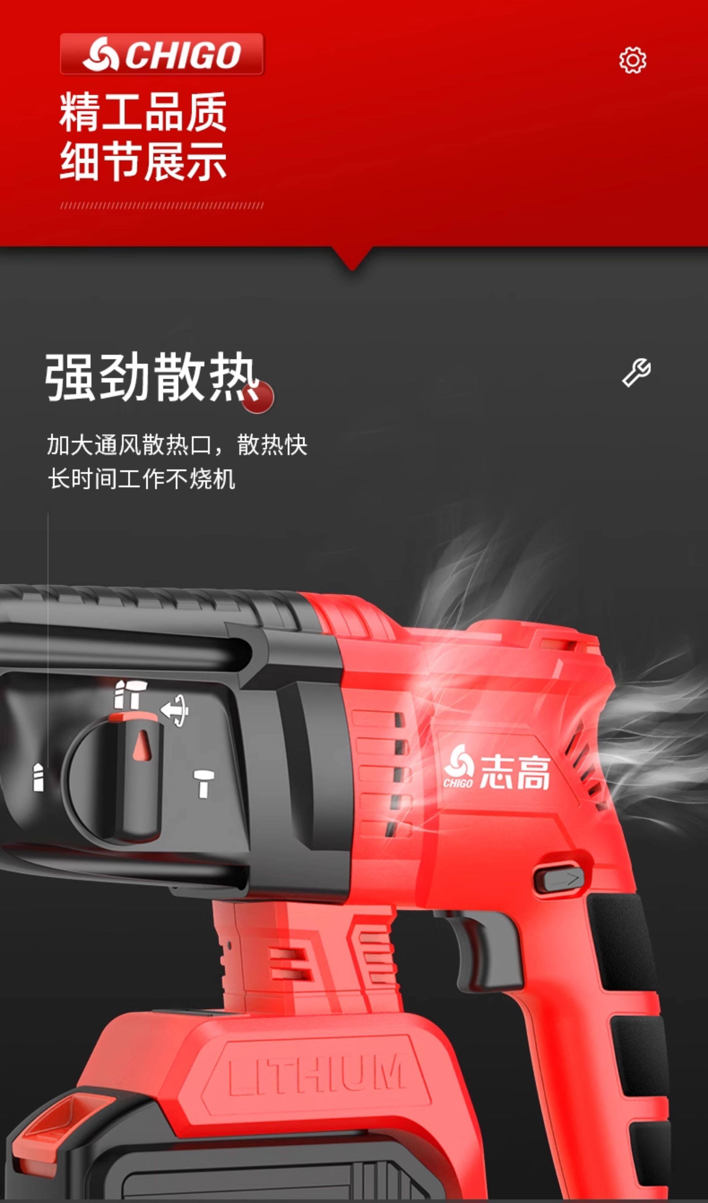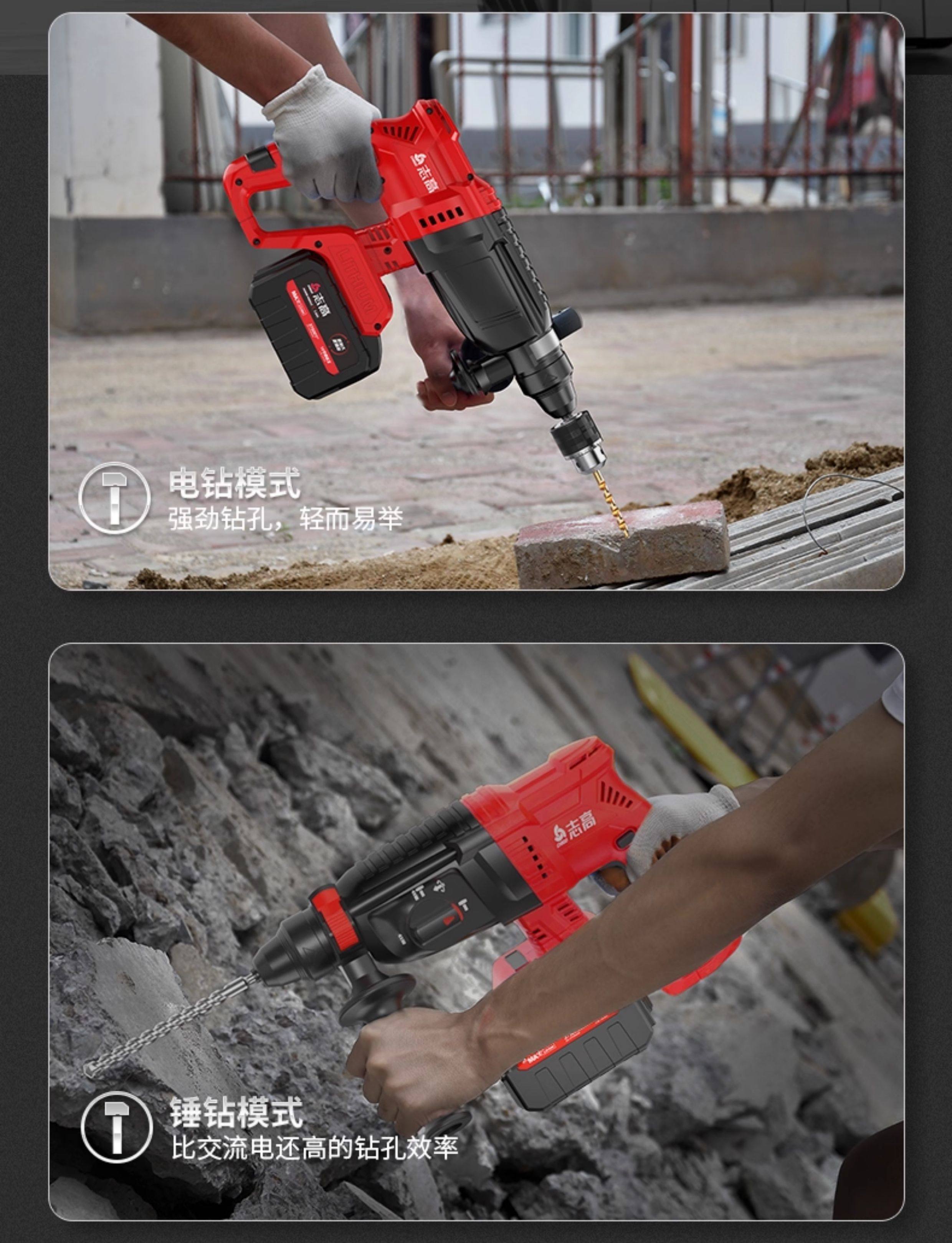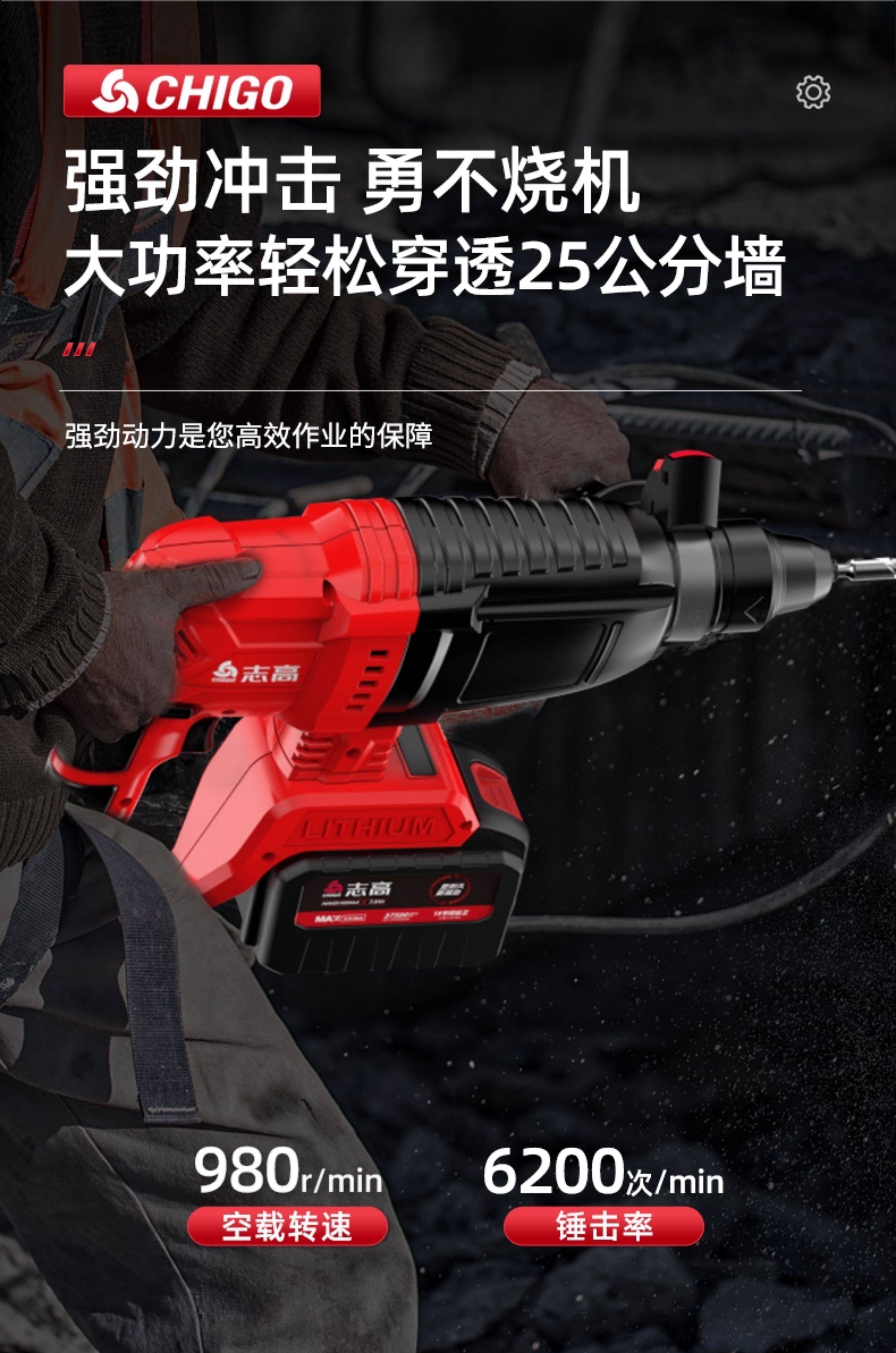 Chigo Brushless Rechargeable Electric Hammer, Electric Pick, Three-Purpose High-Power Concrete Tool, Lithium Battery Wireless Impact Drill