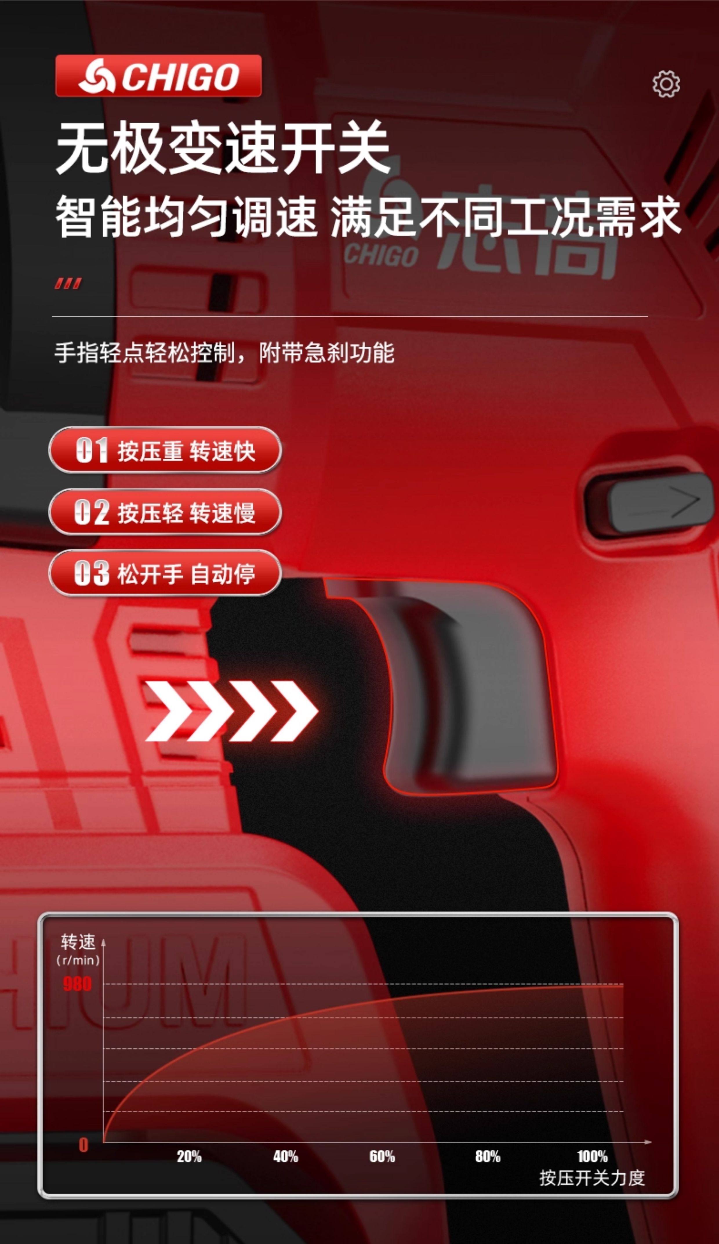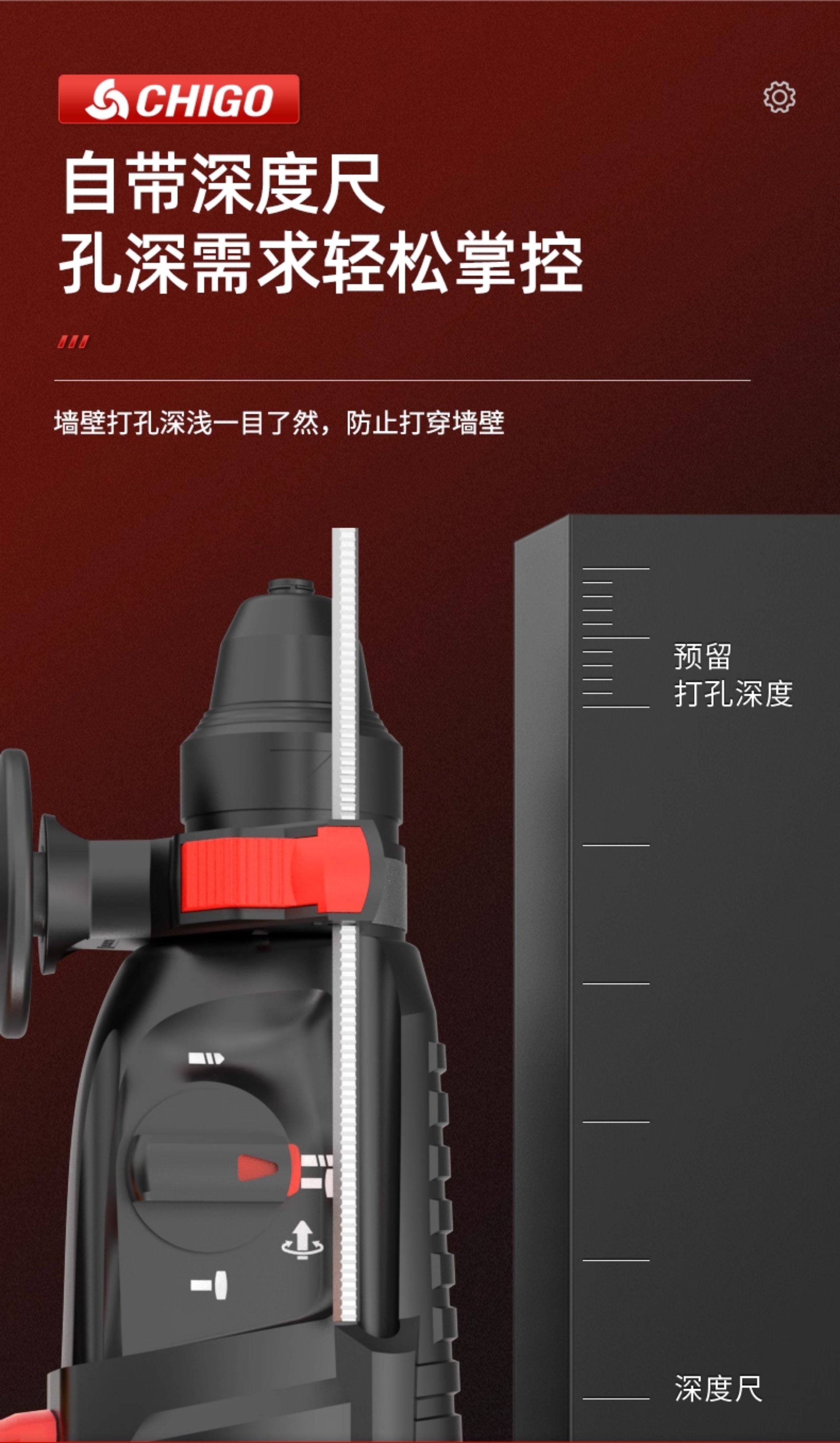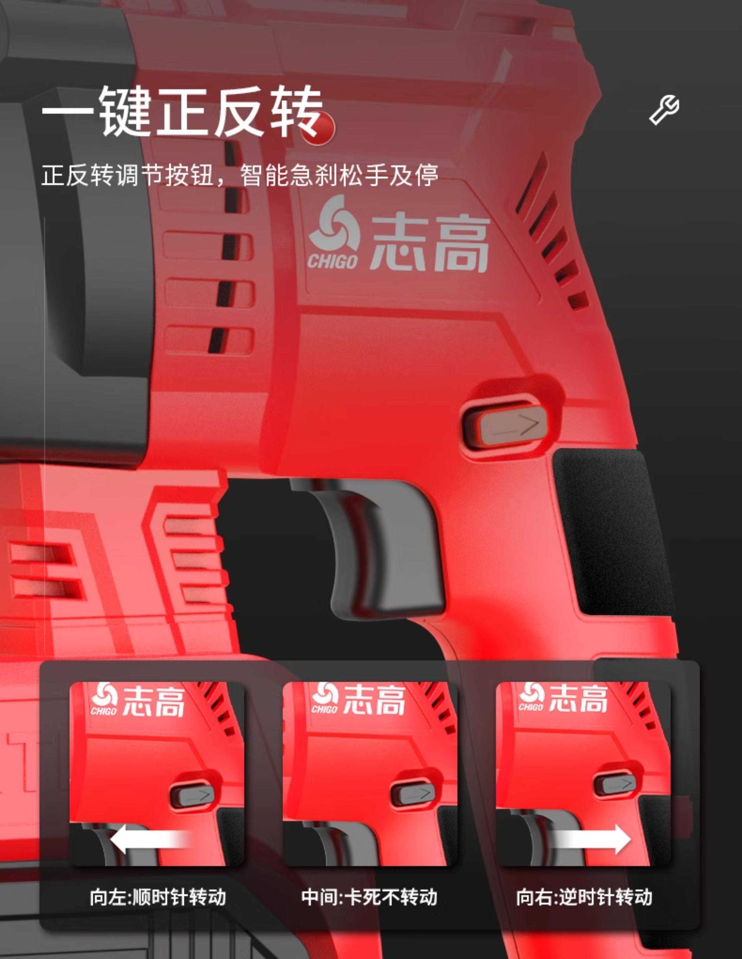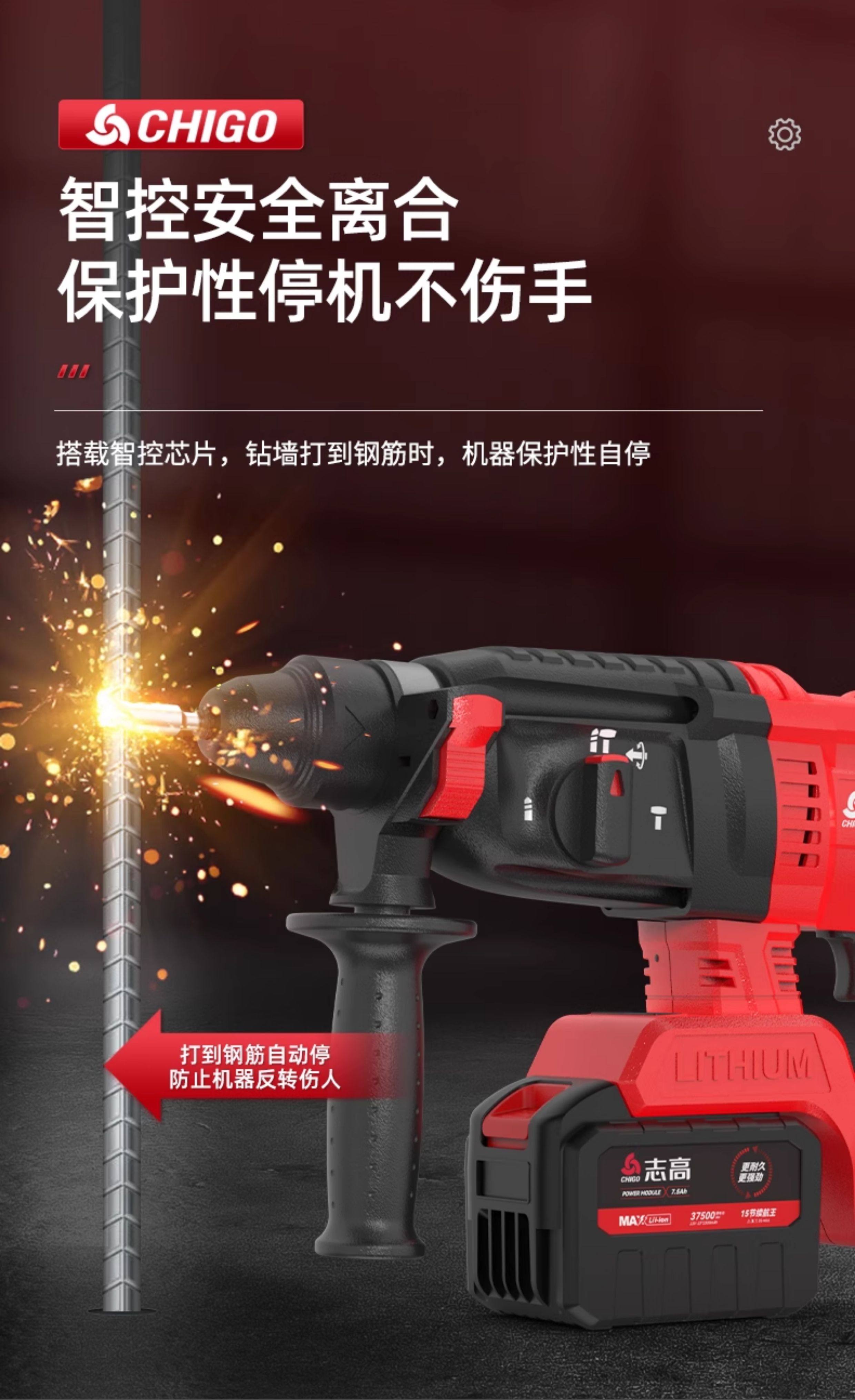 Chigo Brushless Rechargeable Electric Hammer, Electric Pick, Three-Purpose High-Power Concrete Tool, Lithium Battery Wireless Impact Drill