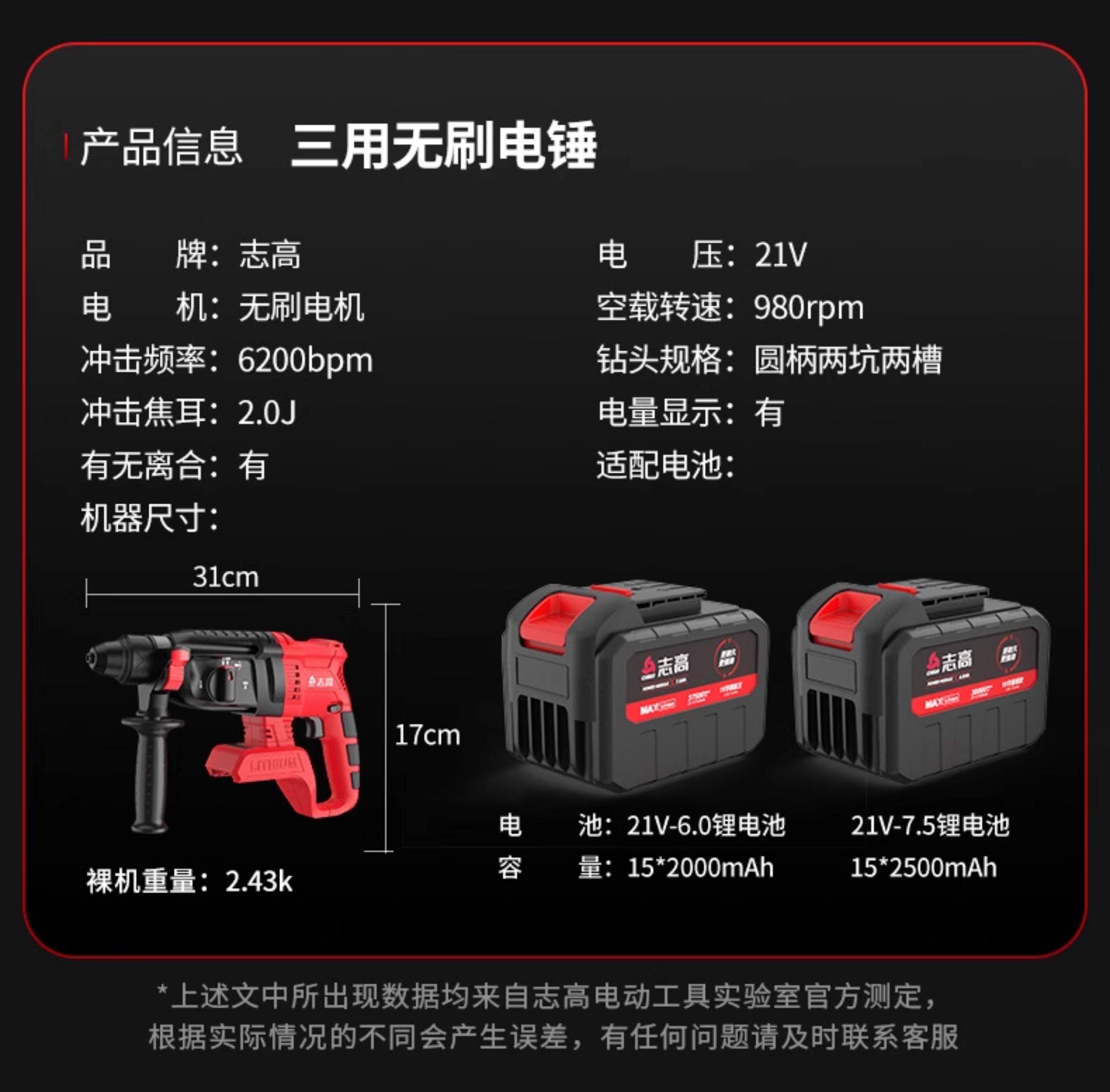 | Color Classification | Stop Buying Electric Hammers with 10 Small Batteries!,✅What You'Re Experiencing: [Hammer Drill Weak, Short Battery Life],✅It’S All because of [Small Battery and Low Capacity],✅Get High-End Quality with Chigo! 15 Batteries or More!,✅Brand Savings: Get 15 Batteries for the Price of 10!,Three-Purpose Brushless Electric Hammer 15 Cells 6.0Ah One Battery,Three-Purpose Brushless Electric Hammer 15 Cells 6.0Ah Secondary Battery,Three-Purpose Brushless Electric Hammer 15 Sections 6.0Ah One Battery + Luxury Gift,Three-Purpose Brushless Electric Hammer 15 Sections 6.0Ah Two Batteries + Luxury Gift,Three-Purpose Brushless Electric Hammer 15 Cells 7.5Ah One Battery,Three-Purpose Brushless Electric Hammer 15 Cells 7.5Ah Secondary Battery,Three-Purpose Brushless Electric Hammer 15 Sections 7.5Ah One Battery + Luxury Gift,Three-Purpose Brushless Electric Hammer 15 Sections 7.5Ah Two Batteries + Luxury Gift,Brushless [Electric Hammer + Angle Grinder] 15 Sections 6.0Ah Second Battery + Luxury Gift,Brushless [Electric Hammer + Angle Grinder] 15 Sections 7.5Ah Second Battery + Luxury Gift |