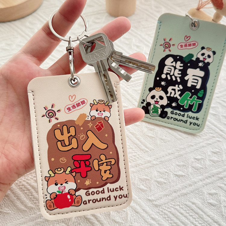 Soft Leather Bus Card Protective Cover Student Id Card Meal Card Keychain Id Card Holder Campus Access Control Subway Card Card Holder