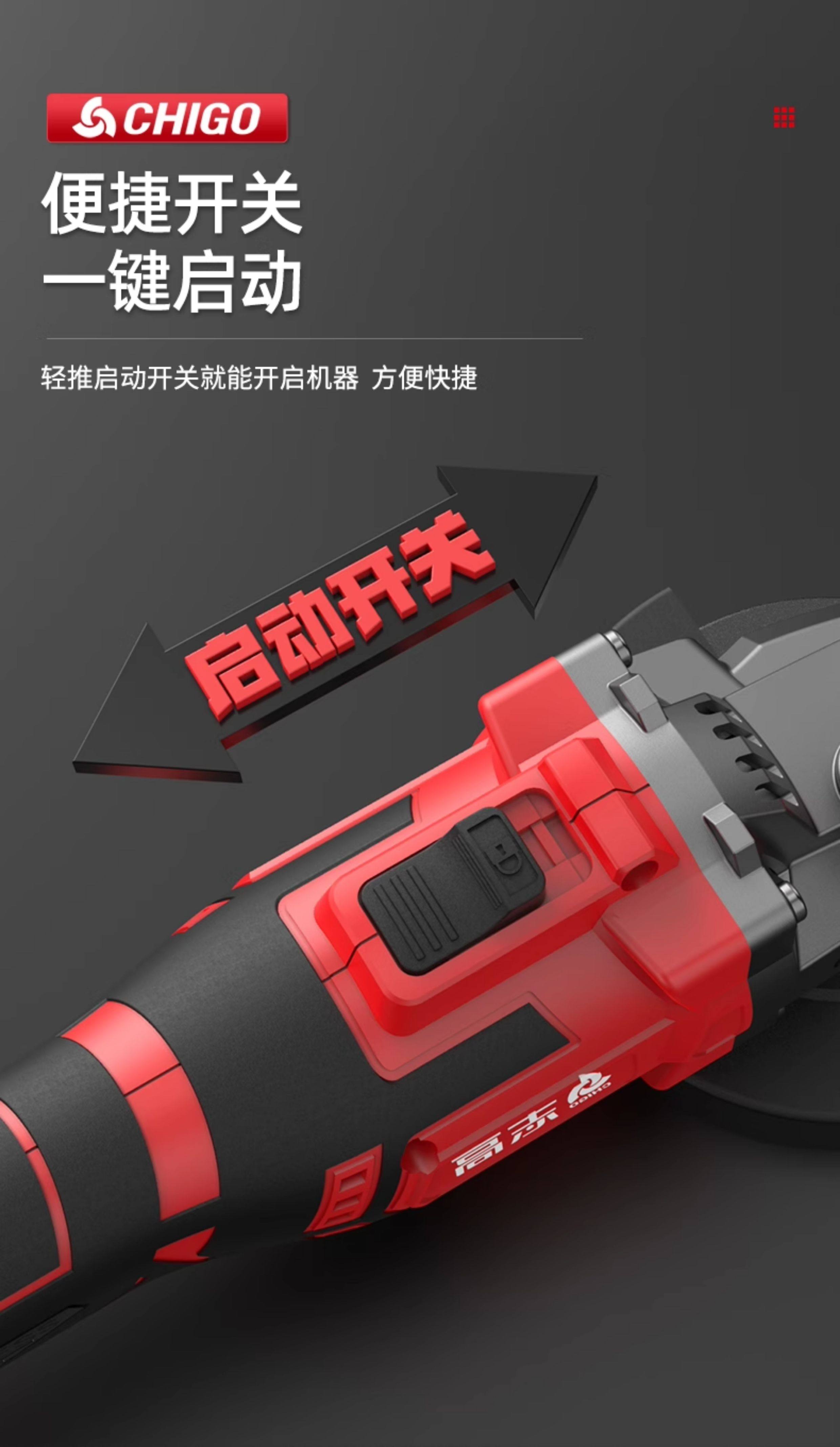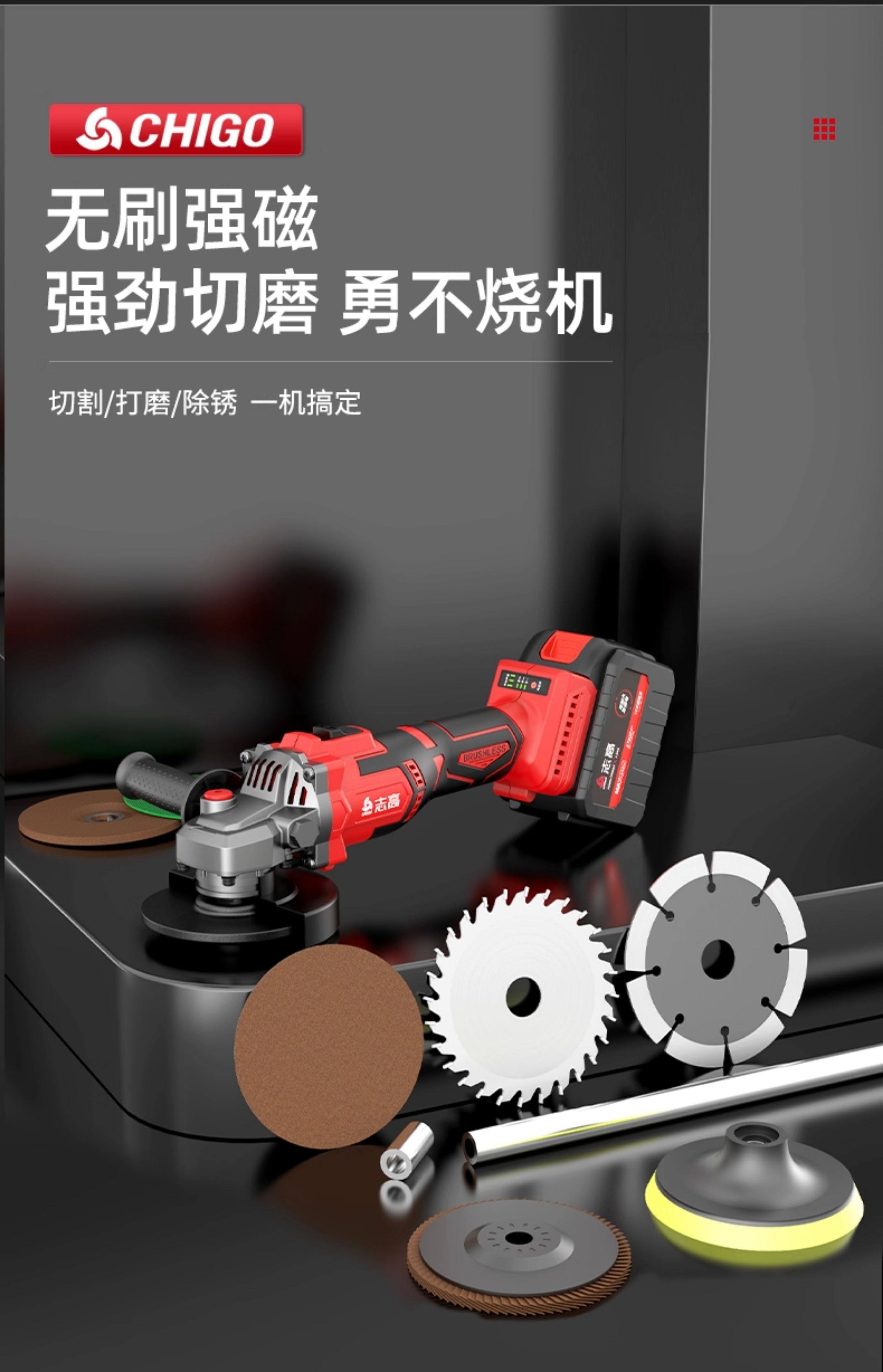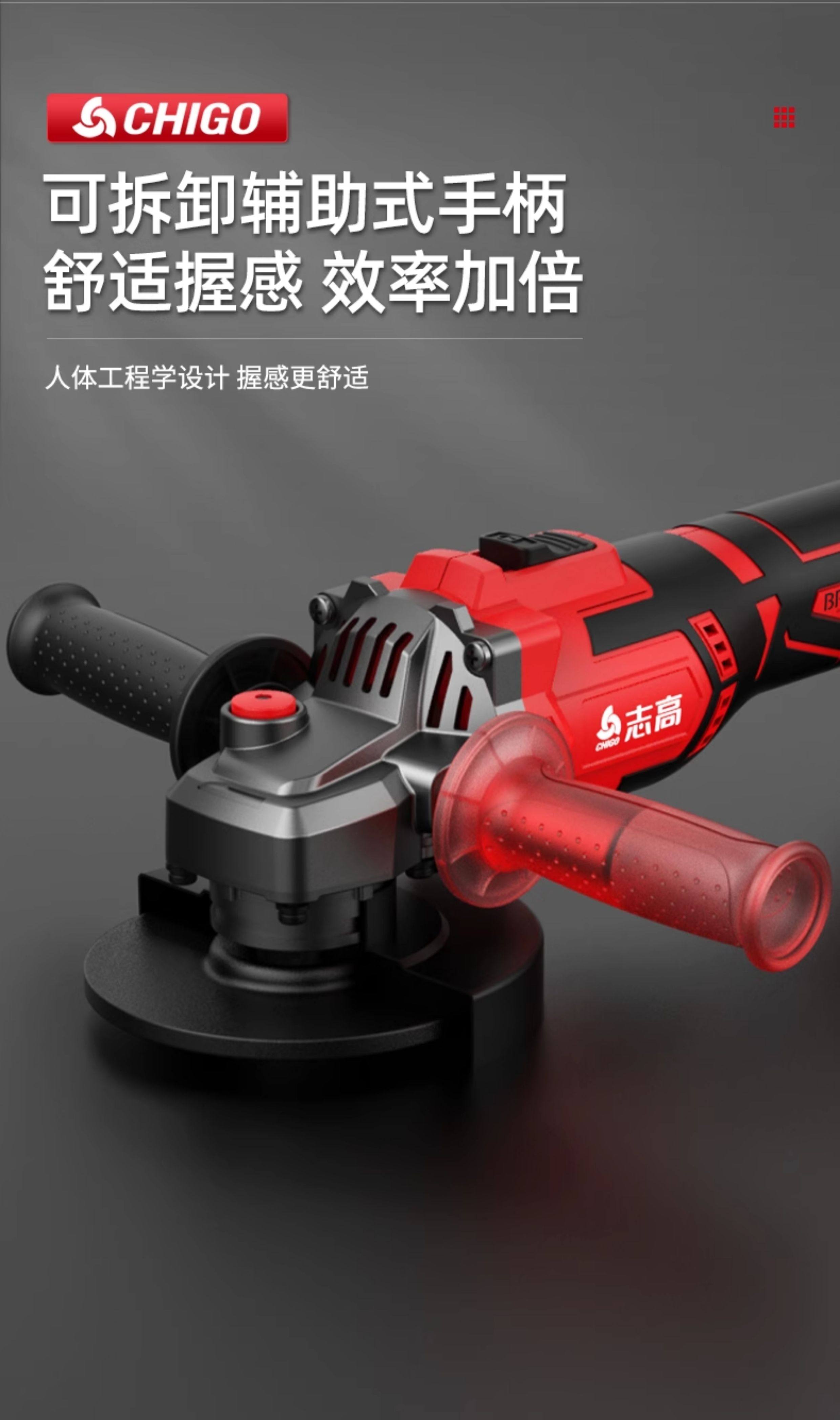 Chigo Angle Grinder Lithium Battery Multifunctional Rechargeable Household High-Power Cutting Machine Grinder Polisher Hand Grinder