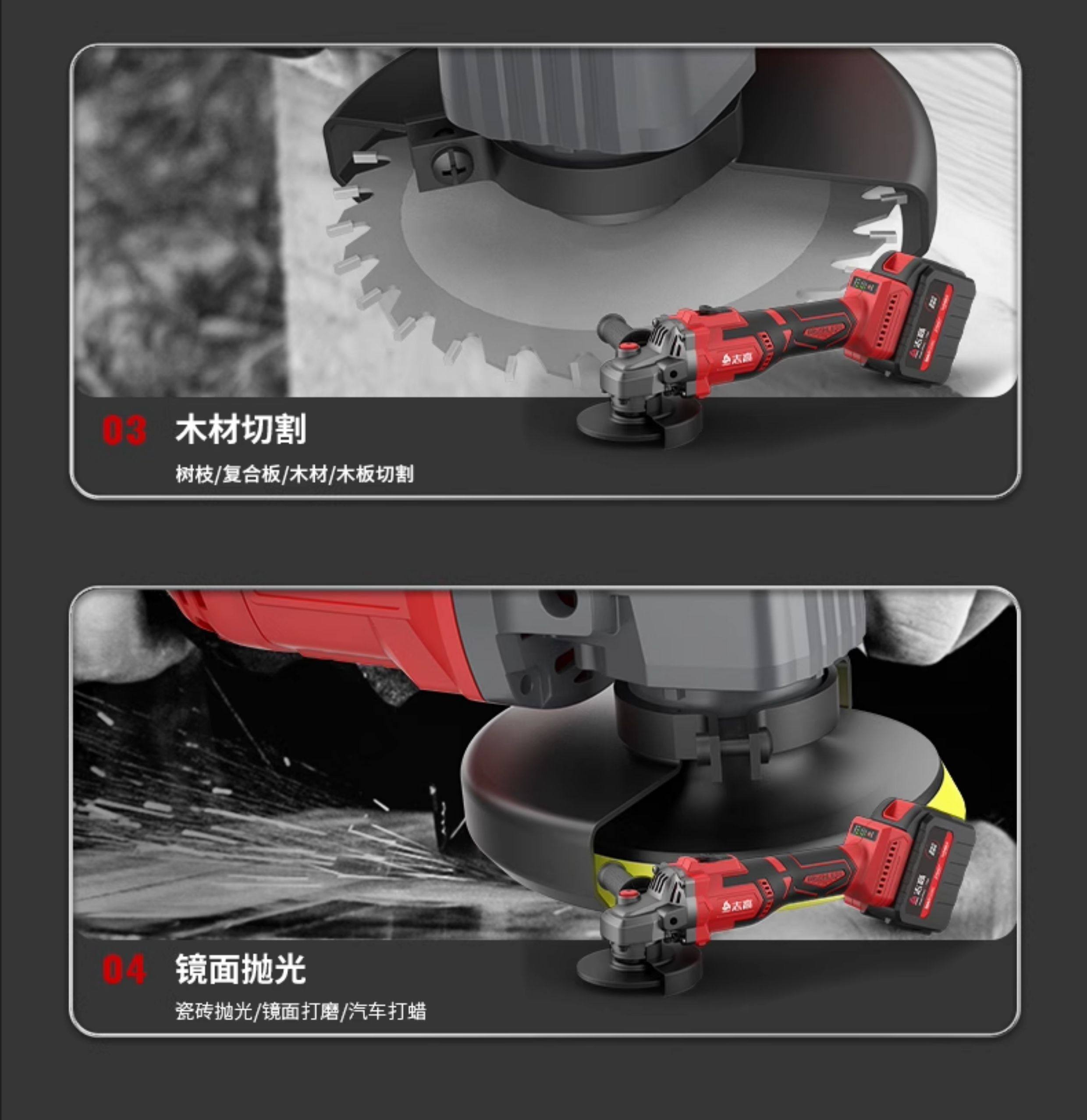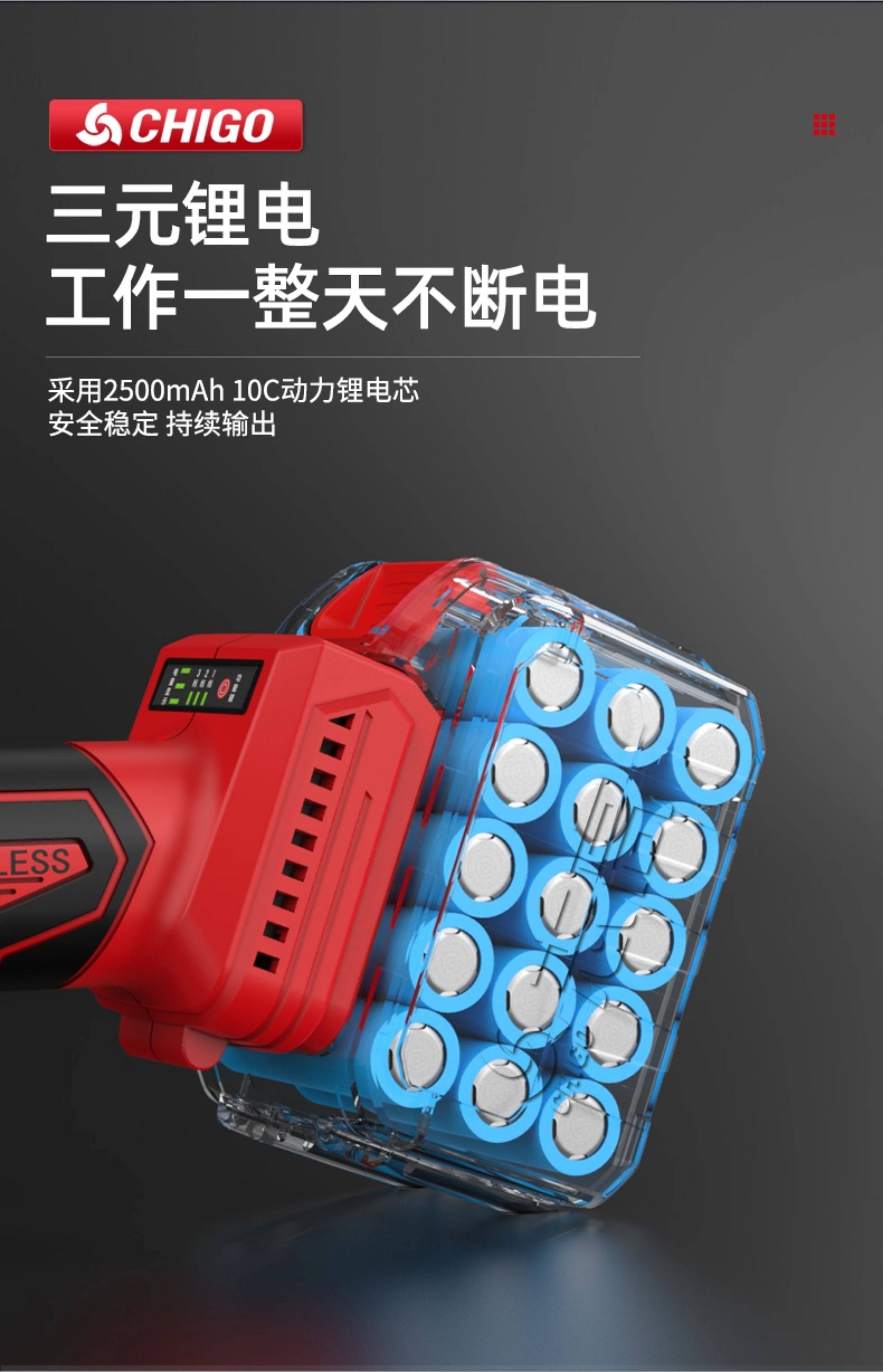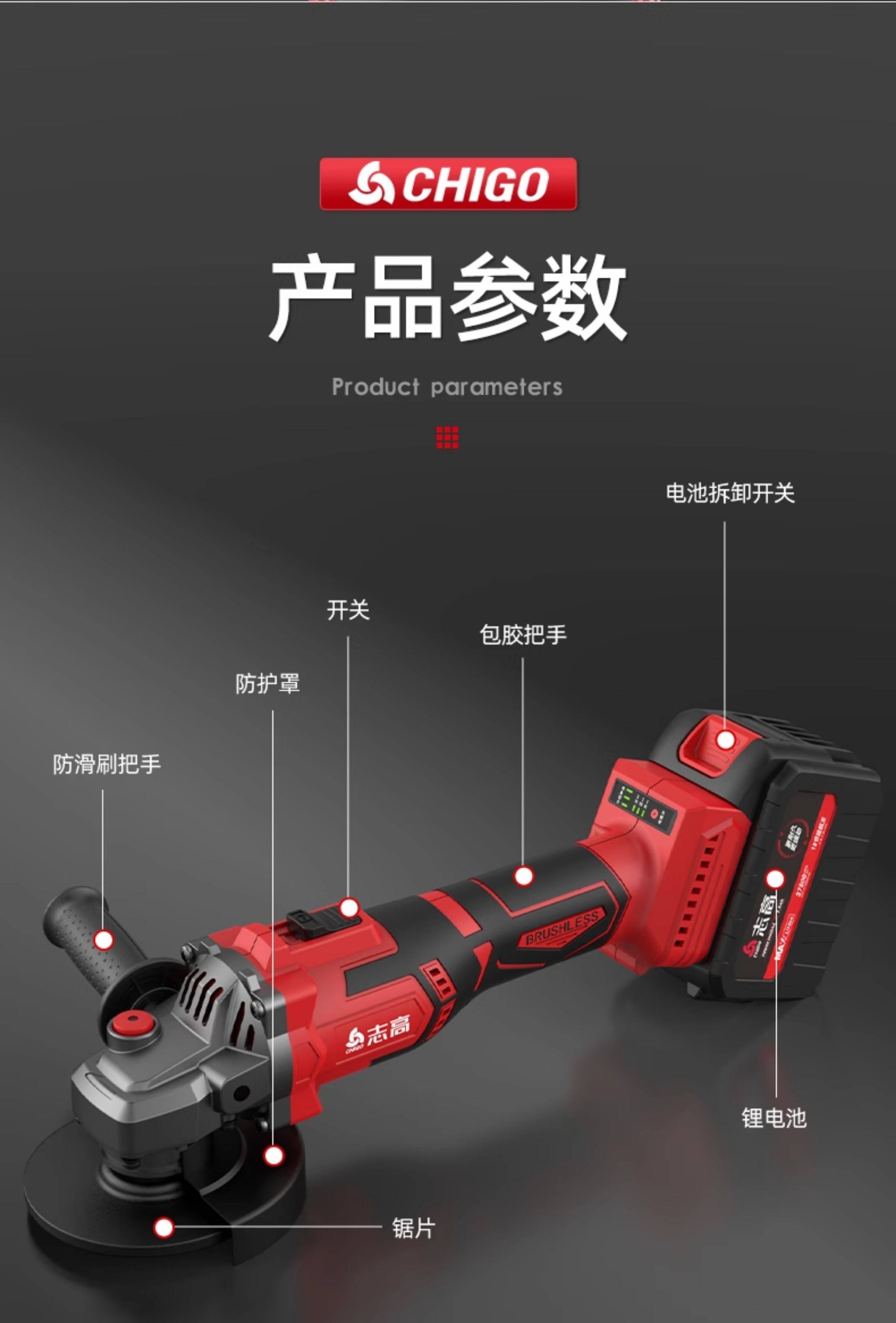 Chigo Angle Grinder Lithium Battery Multifunctional Rechargeable Household High-Power Cutting Machine Grinder Polisher Hand Grinder