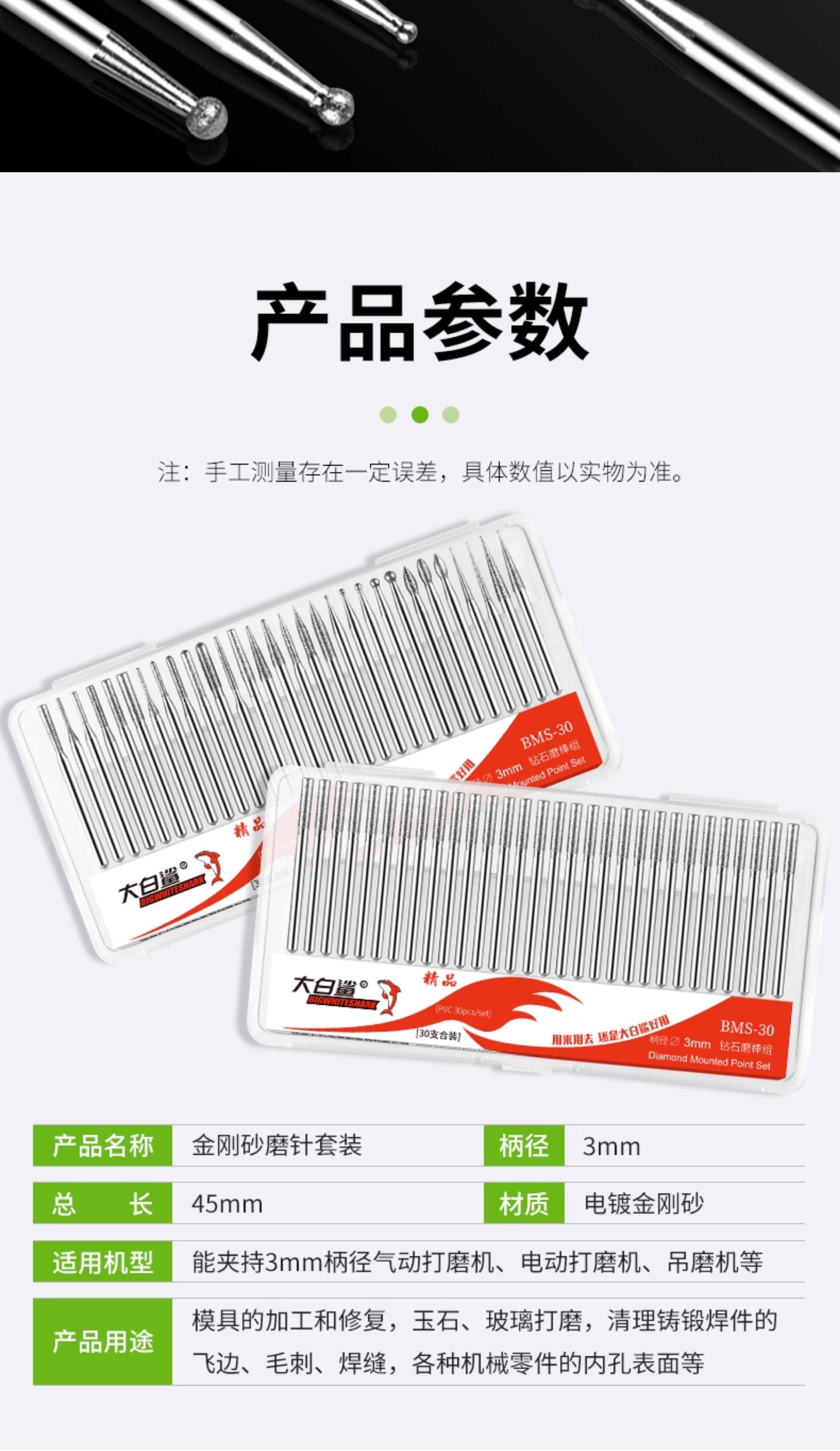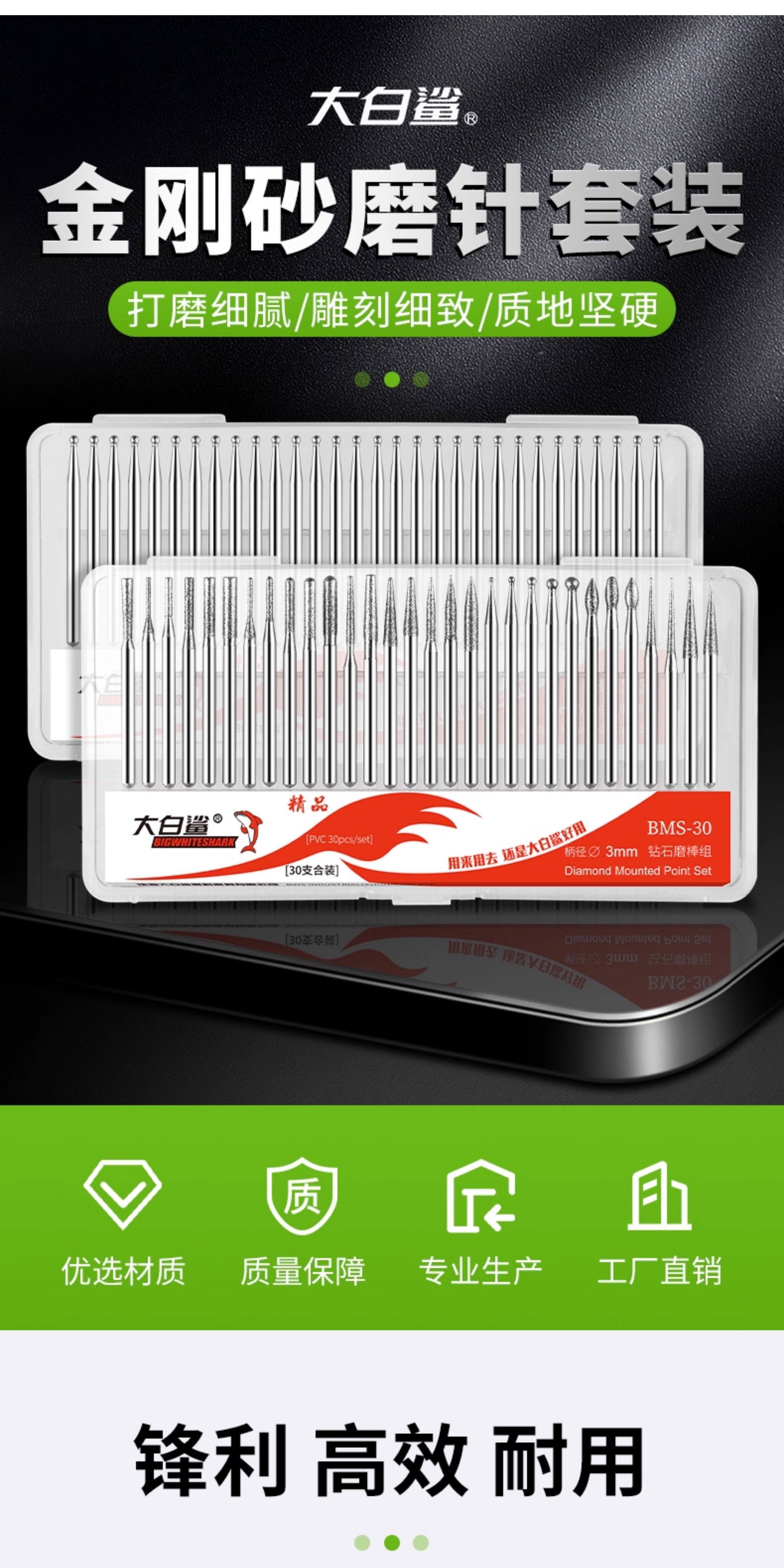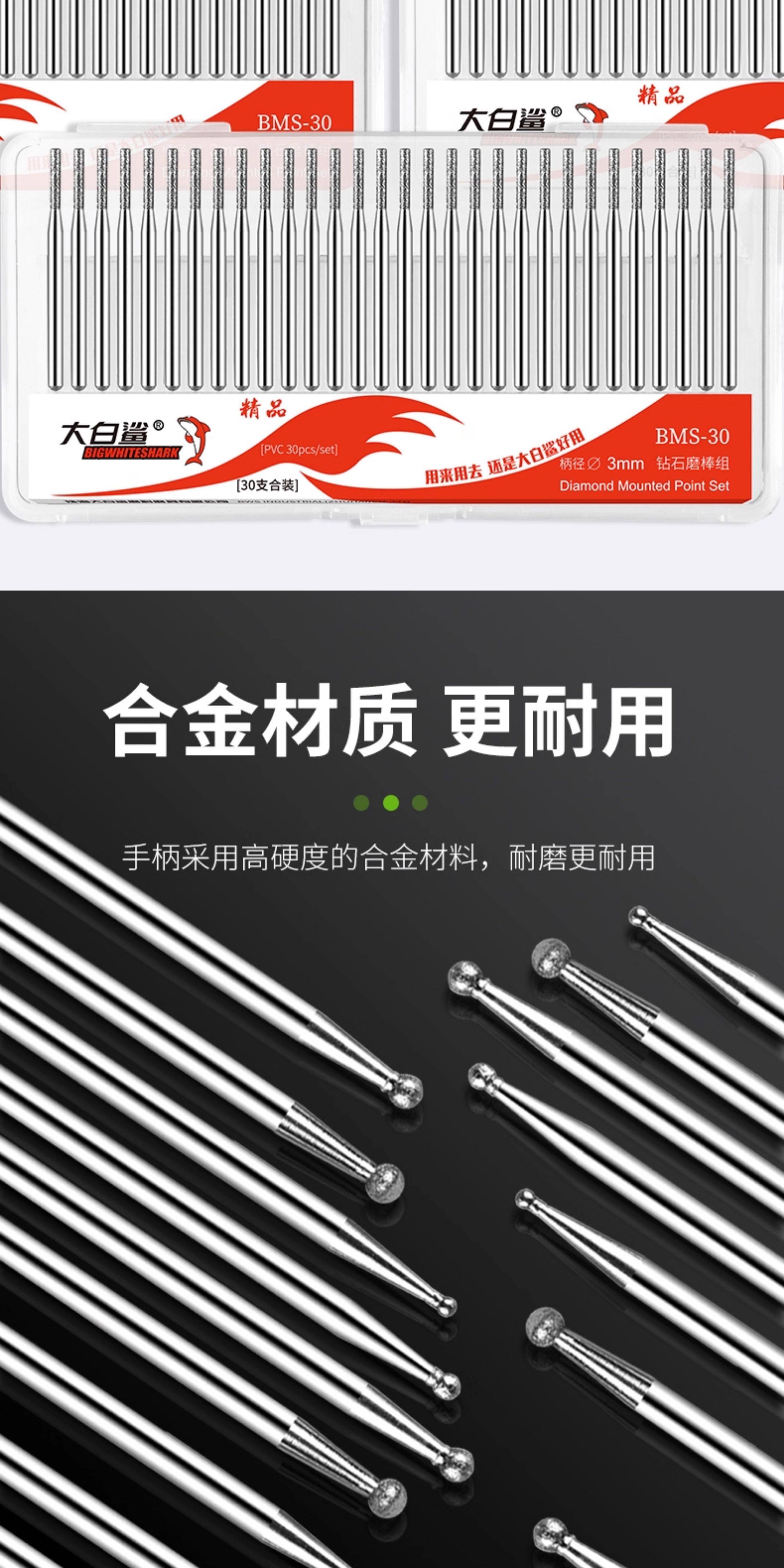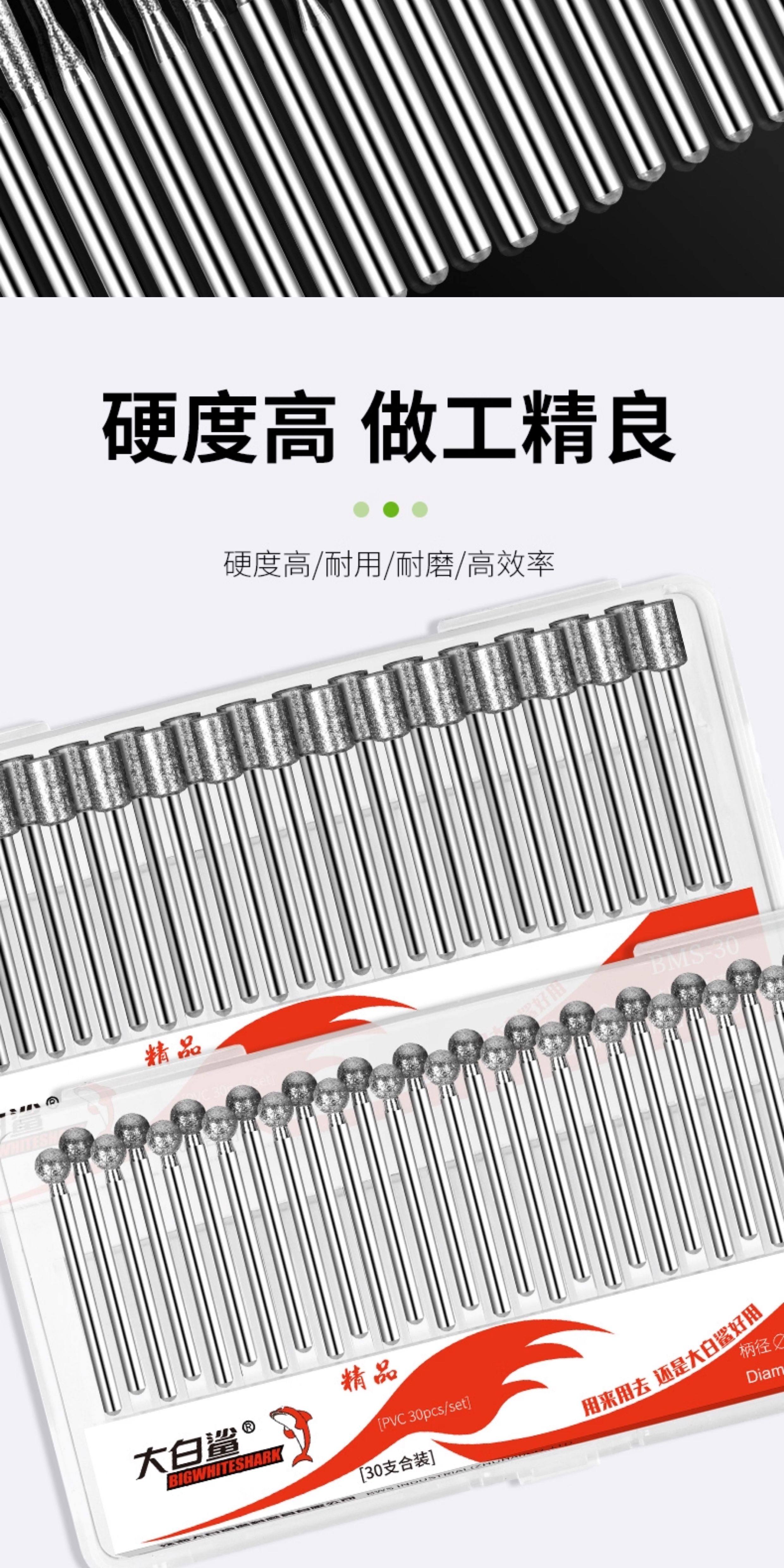 Large White Shark Diamond Grinding Head 3mm Alloy Electric Grinder Pneumatic Grinding Needle Diamond Grinding Rod