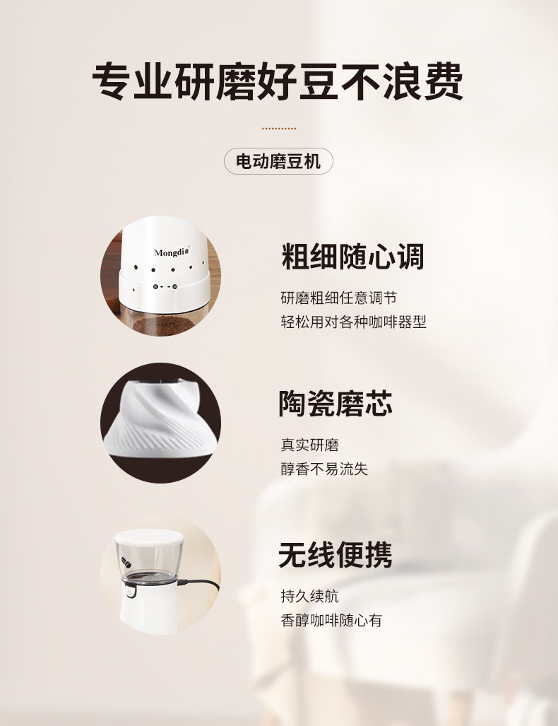Mongdio Coffee Bean Grinder Electric Grinder Portable Coffee Grinder Automatic Bean Grinder Powder Grinder