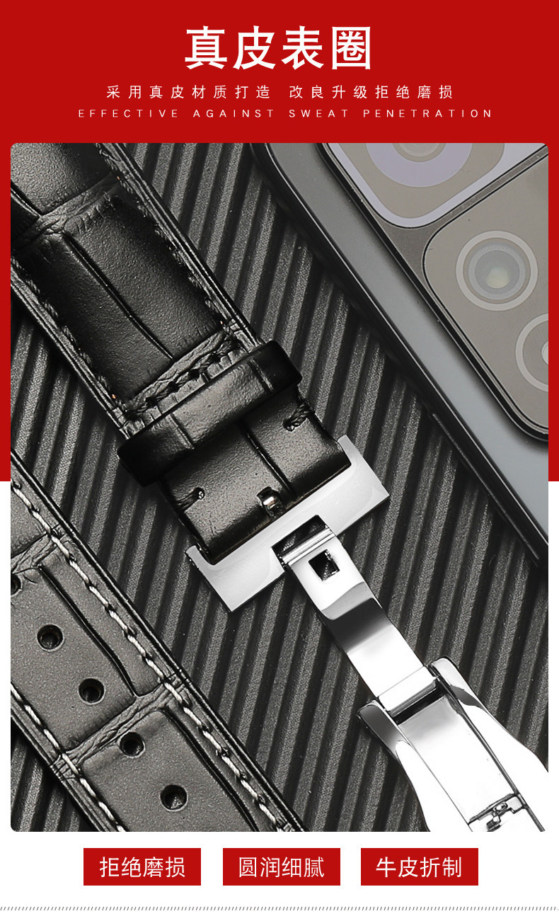 Suitable for Omega Butterfly Watch Strap, Men's Genuine Leather, Original Omega Seamaster Speedmaster Watch Strap, Women's Butterfly Buckle 20mm19