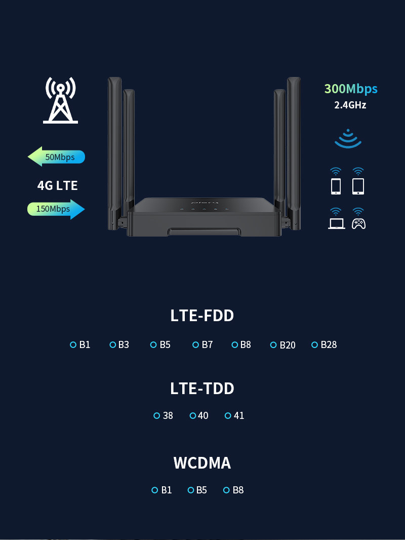 Plery R624 4g Sim Card Lte Mobile Cpe Wireless Router Cat4 Hard Routing Portable Wifi Mobile 4g Sim Card Router 300m Four Antennas Multi-Network Port Full Network Compatibility