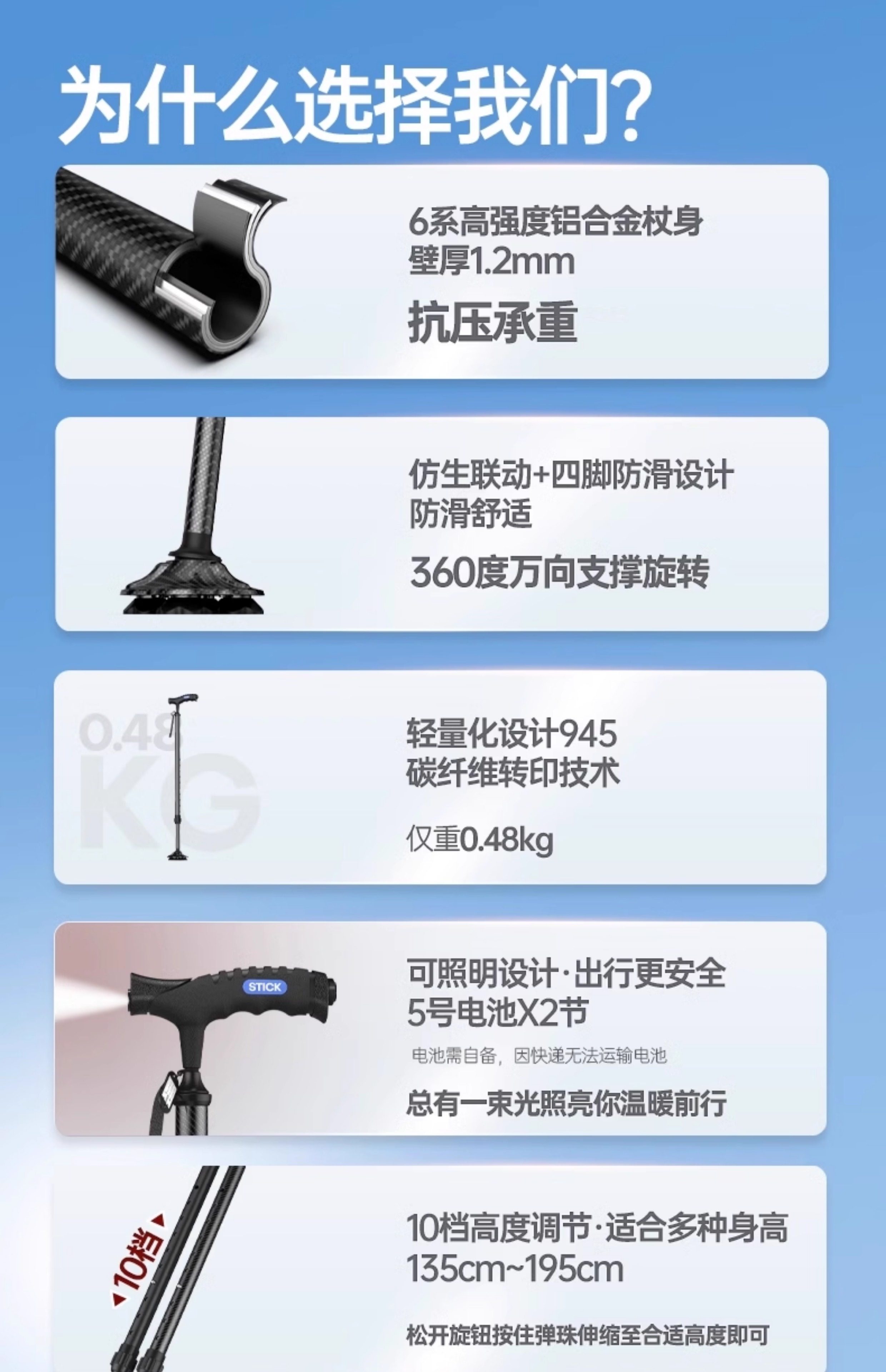 | Color Classification | Ultra-Light, Stable and Non-Slip + Universal Rotating Base + Aluminum Alloy - Black [Height Adjustable Without Light],Ultra-Light, Stable and Non-Slip + Universal Rotating Base + Aluminum Alloy - Black [Height Adjustable with Light],Ultra-Light, Stable and Anti-Slip + Universal Rotating Base + Carbon Fiber Transfer - Black [Height Adjustable with Light] |