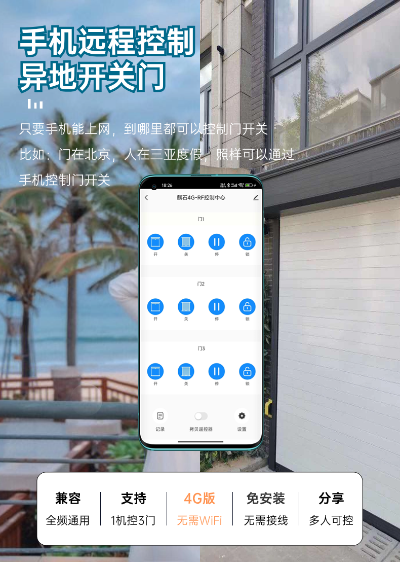 4g Rolling Shutter Door Mobile Phone Remote Controller Retractable Roller Shutter Door Remote Control for Electric Garage Door 433 Wireless