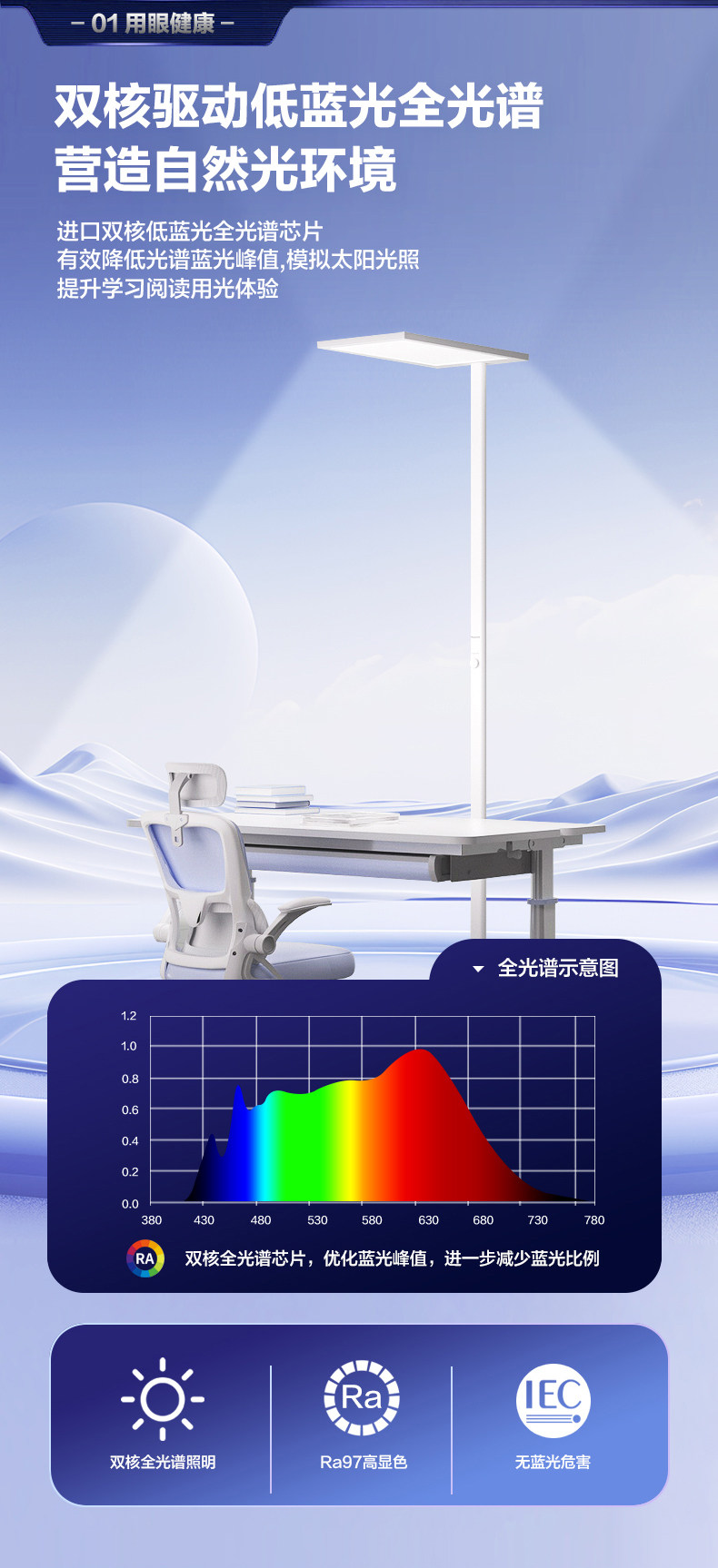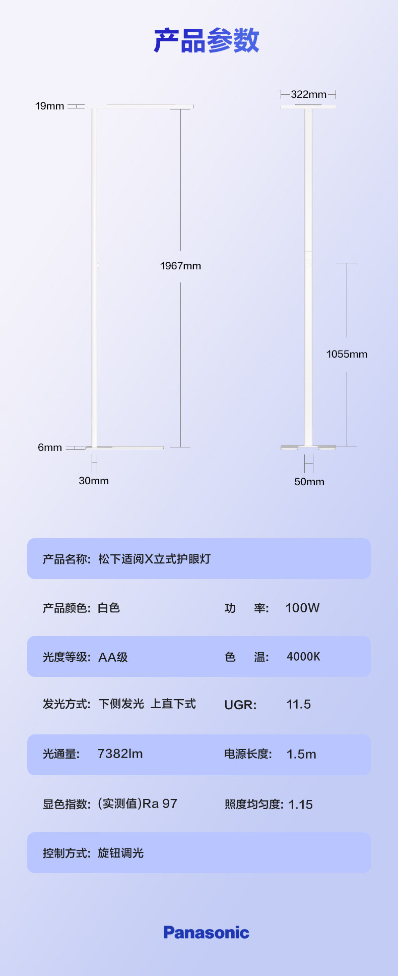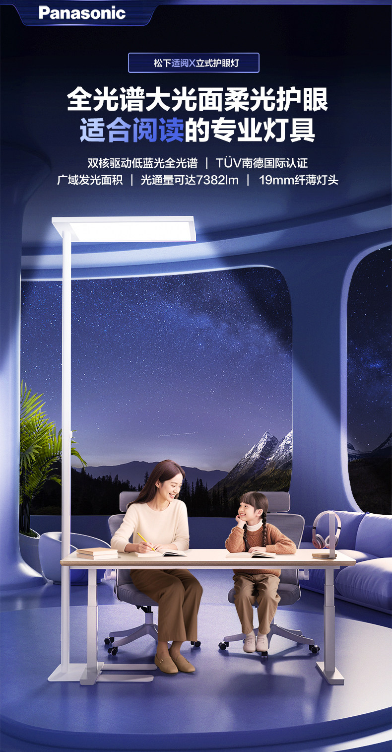 Panasonic Floor-Standing Eye-Protection Lamp for Studying, Children's Desk Reading Lamp, Piano Lamp, Full-Spectrum Vertical Street Lamp