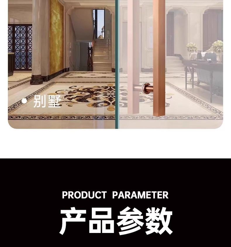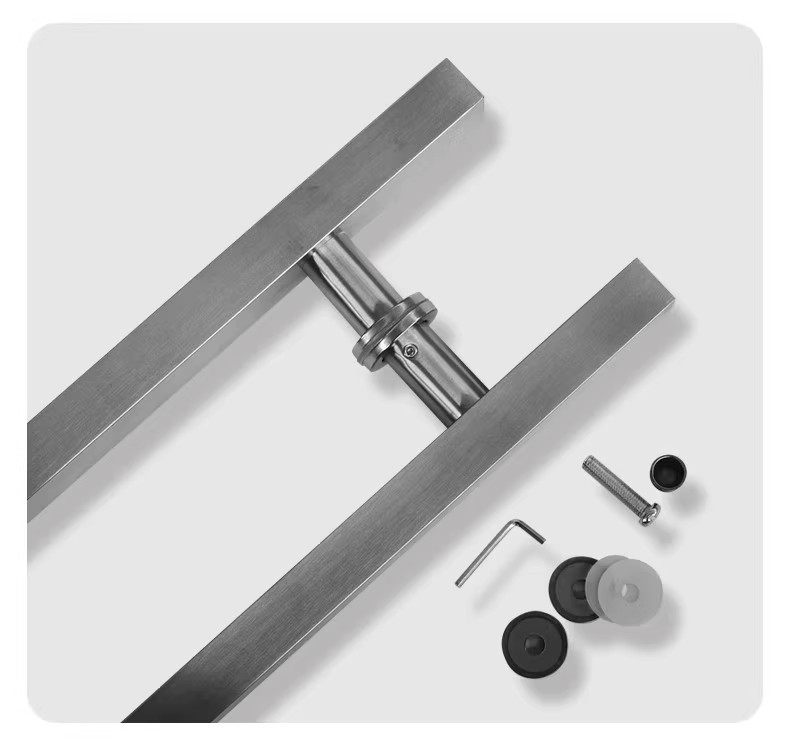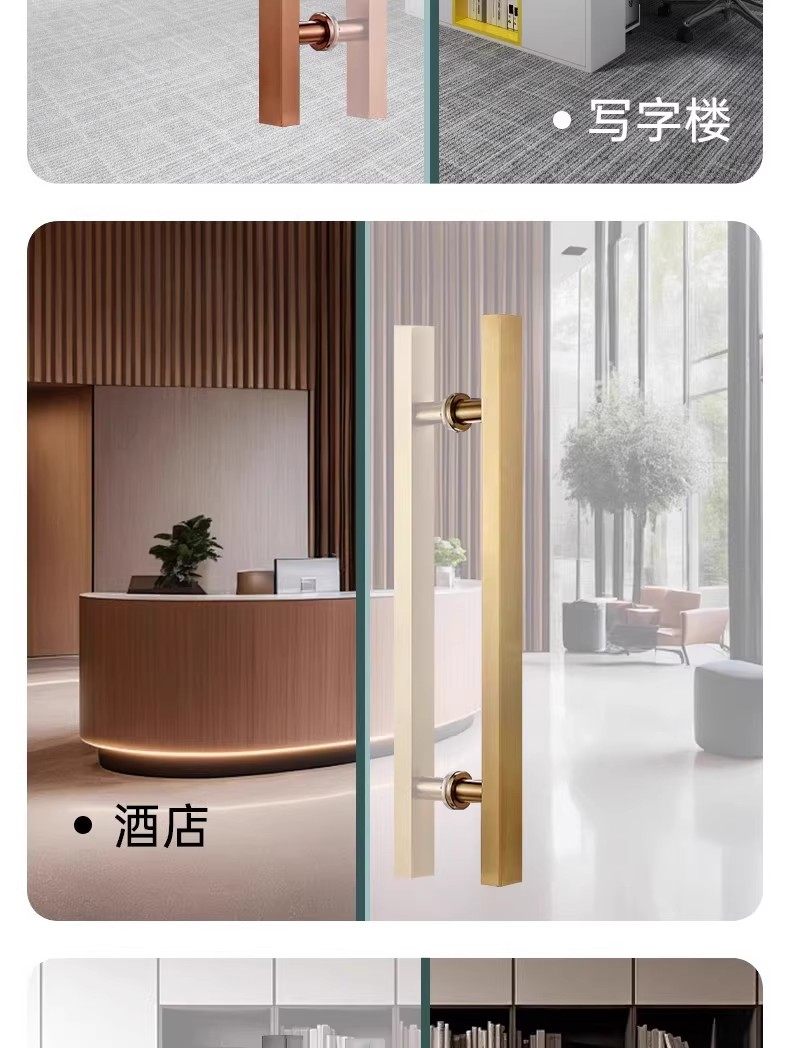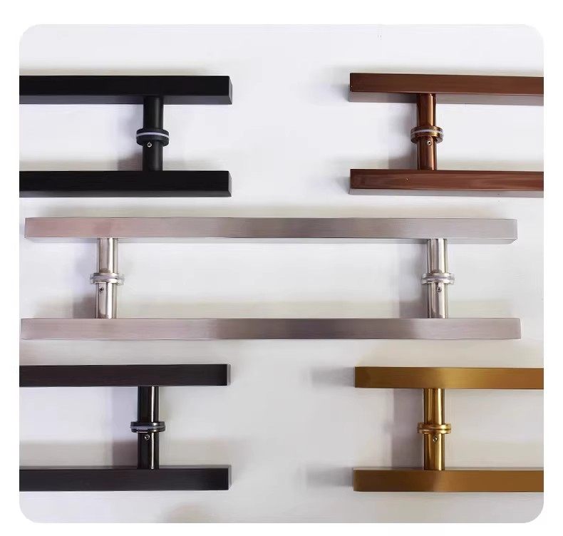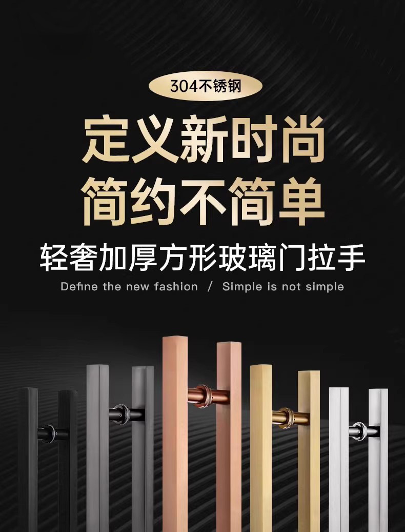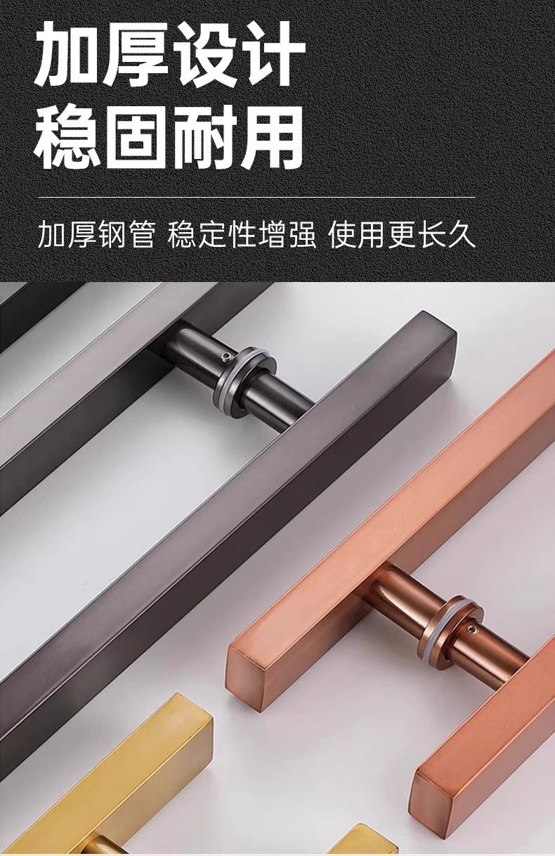 Glass Door Handle Stainless Steel Square Tube Fingerprint-Free Titanium Black Rose Gold Framed Frameless Sliding Large Wooden Door Handle