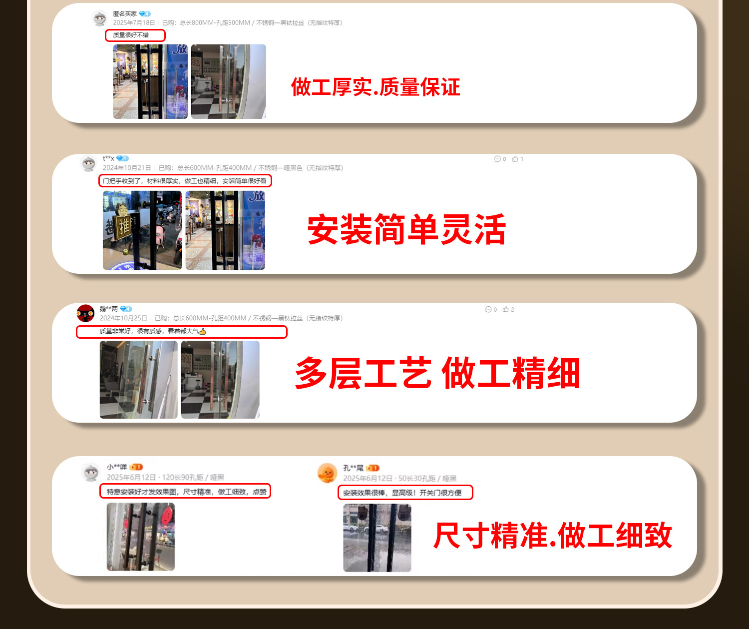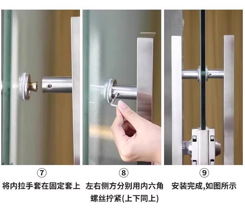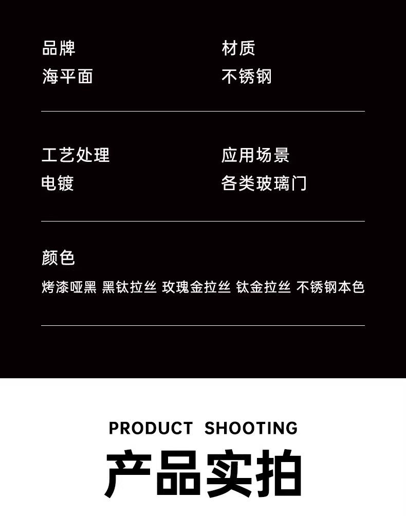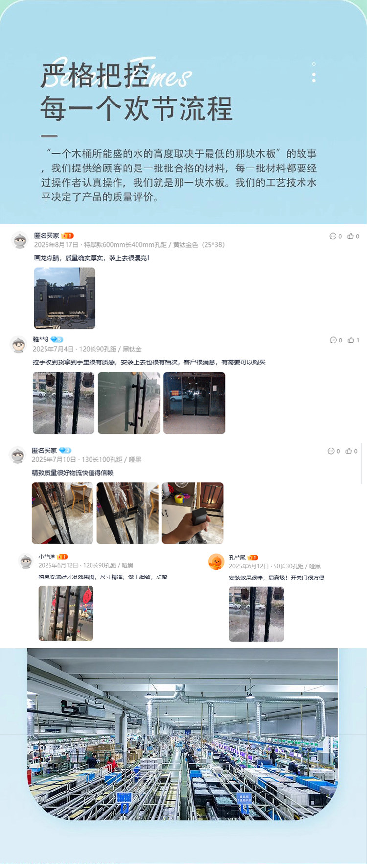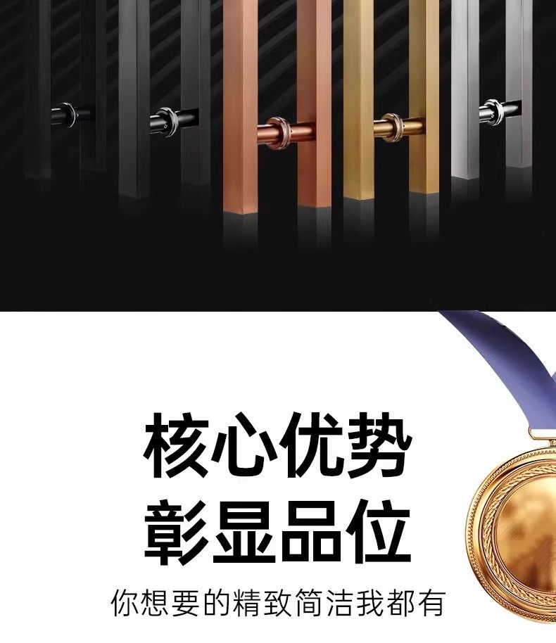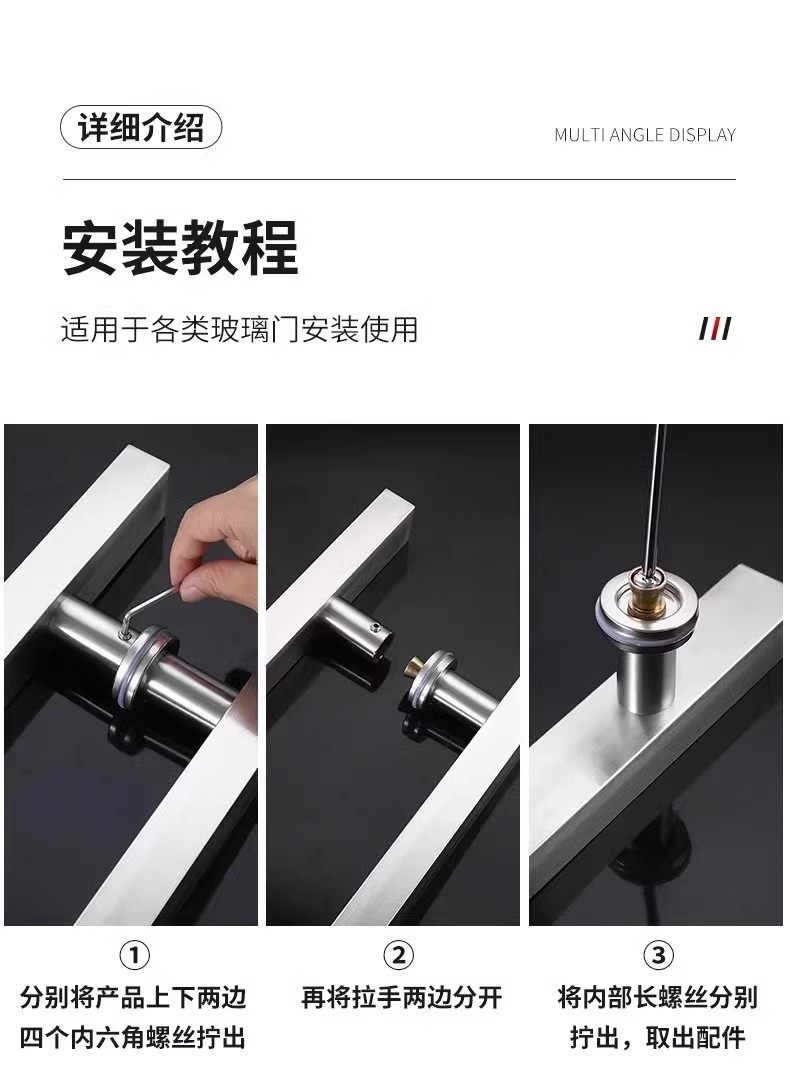 Glass Door Handle Stainless Steel Square Tube Fingerprint-Free Titanium Black Rose Gold Framed Frameless Sliding Large Wooden Door Handle