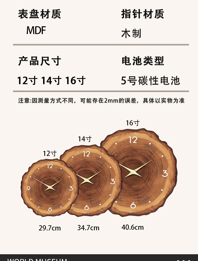 | Color Classification | Annual Rings a,Annual Ring B,Annual Ring C,Annual Rings D,Annual Rings E,Annual Rings F,Stainless Steel Iron Frame (if You Don’T Take a Picture of the Iron Frame, the Clock Will Be Sent by Default) |