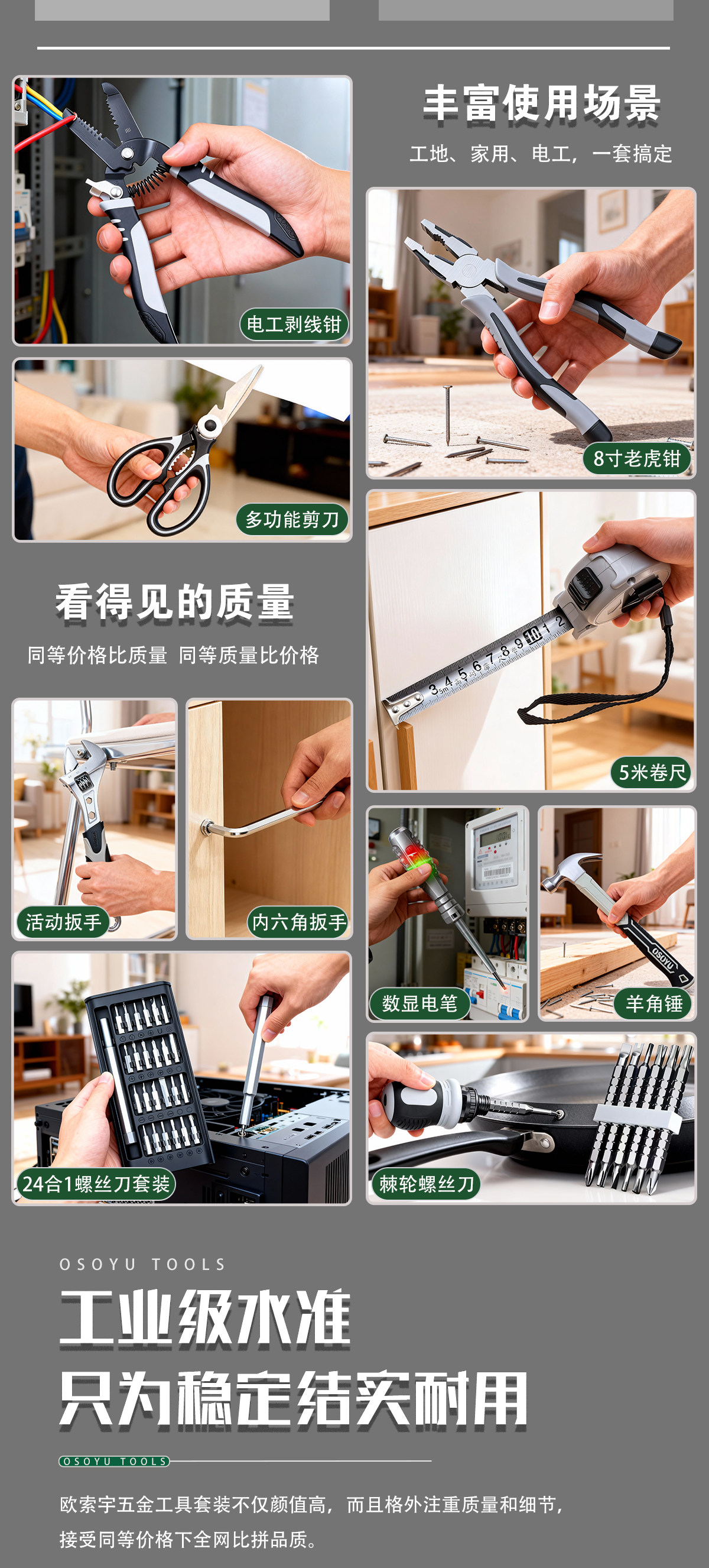 Household Tool Box Set, Multi-Functional, Suitable for Home, Car, and Daily Use, Includes Electrician's Hardware Tools, Screwdrivers, and Vise