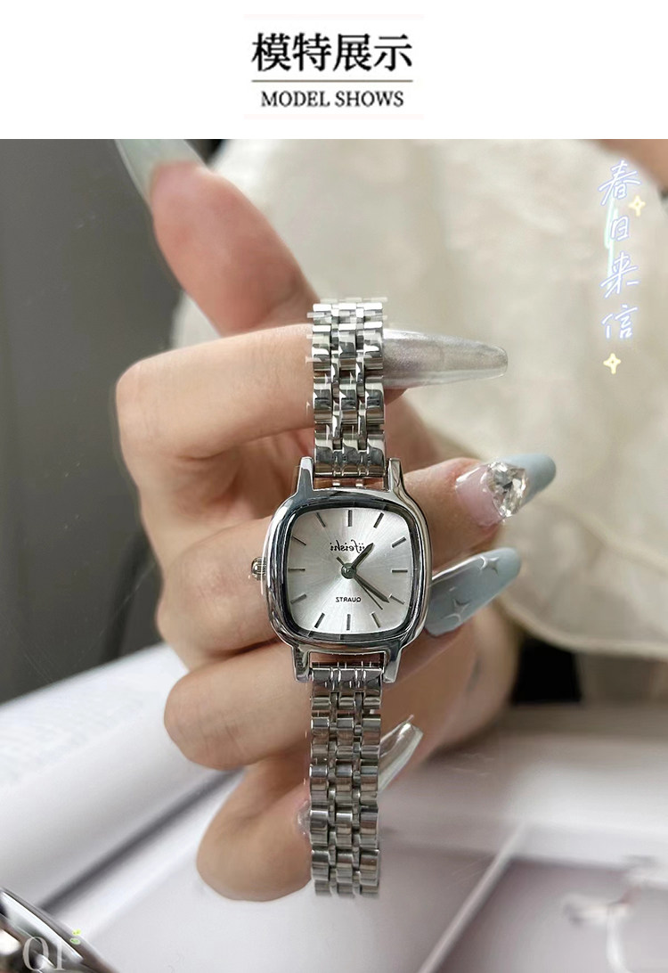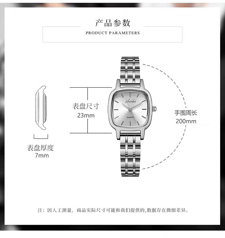 [New Year's Gift] Ji Feishi Small Square Sugar Watch for Women, Light Luxury Steel Band Small Dial Wristwatch Gift Box for Girlfriend