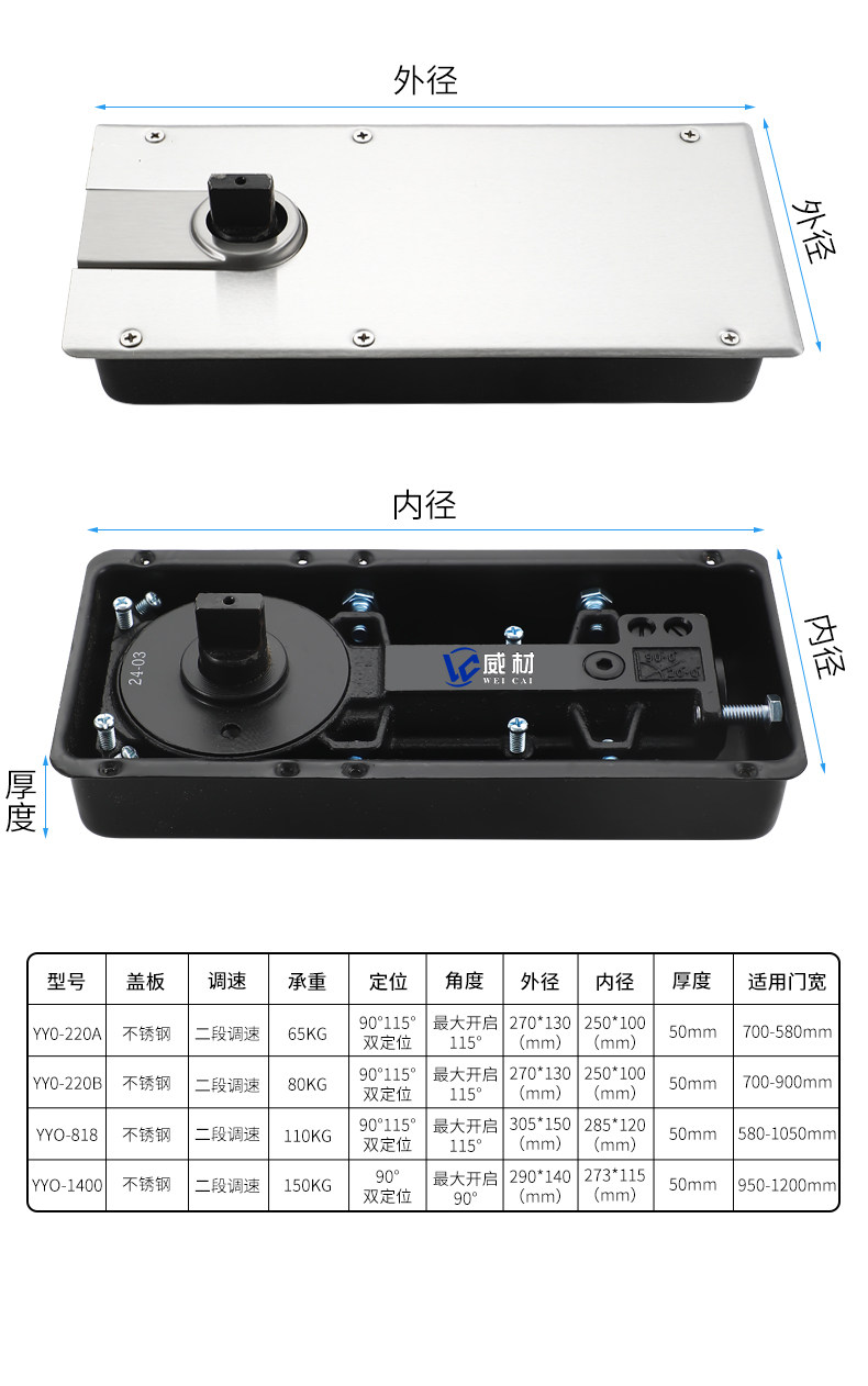 Glass Door Floor Spring H220B Heavy-Duty 818 Frameless Door Framed Door Shop Entrance Door Floor Spring Universal Type