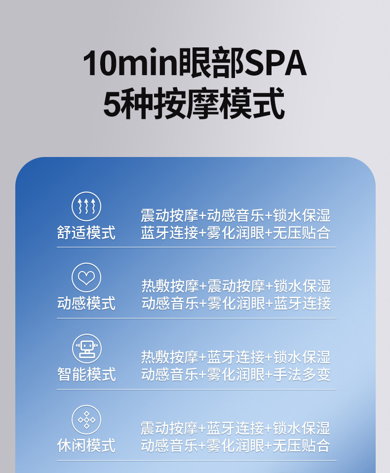 | Color Classification | Ice Spring Blue[Dual-Hole Steam Eye Moisturizing + Hot and Cold Double Compress + Eye Acupoint Massage + 12 Major Contact Vibrations + Temple Kneading + 8 Modes + Large-Area Hot Compress + Visualization],Hyacinth Purple[Dual-Hole Steam Eye Moisturizing + Hot and Cold Double Compress + Eye Acupoint Massage + 12 Major Contact Vibrations + Temple Kneading + 8 Modes + Large-Area Hot Compress + Visualization],[Steam Atomization Gift Box-White]Dual-Nozzle Steam Eye Massager + 16-Pin Vibration + 5 Modes + Visual Display + Hot Compress + Bluetooth.,[Steam Atomization Gift Box Model-Grey]Dual-Nozzle Steam Eye Massager + 16-Pin Vibration + 5 Modes + Visual Display + Hot Compress + Bluetooth Music,[Steam Atomization Model-White]Dual-Nozzle Steam Eye Massager + 16-Pin Vibration + 5 Modes + Visual Display + Hot Compress + Bluetooth Music,[Steam Atomization Model-Grey]Dual-Nozzle Steam Eye Massager + 16-Pin Vibration + 5 Modes + Visual Display + Hot Compress + Bluetooth Music,[Vibration Massage Model/White]Simulated Human Vibration Massage + 14 Massage Heads + 5 Modes,Ready Stock, Quick Delivery,Lightning Direct!,Consult Customer Service for More Discounts! |