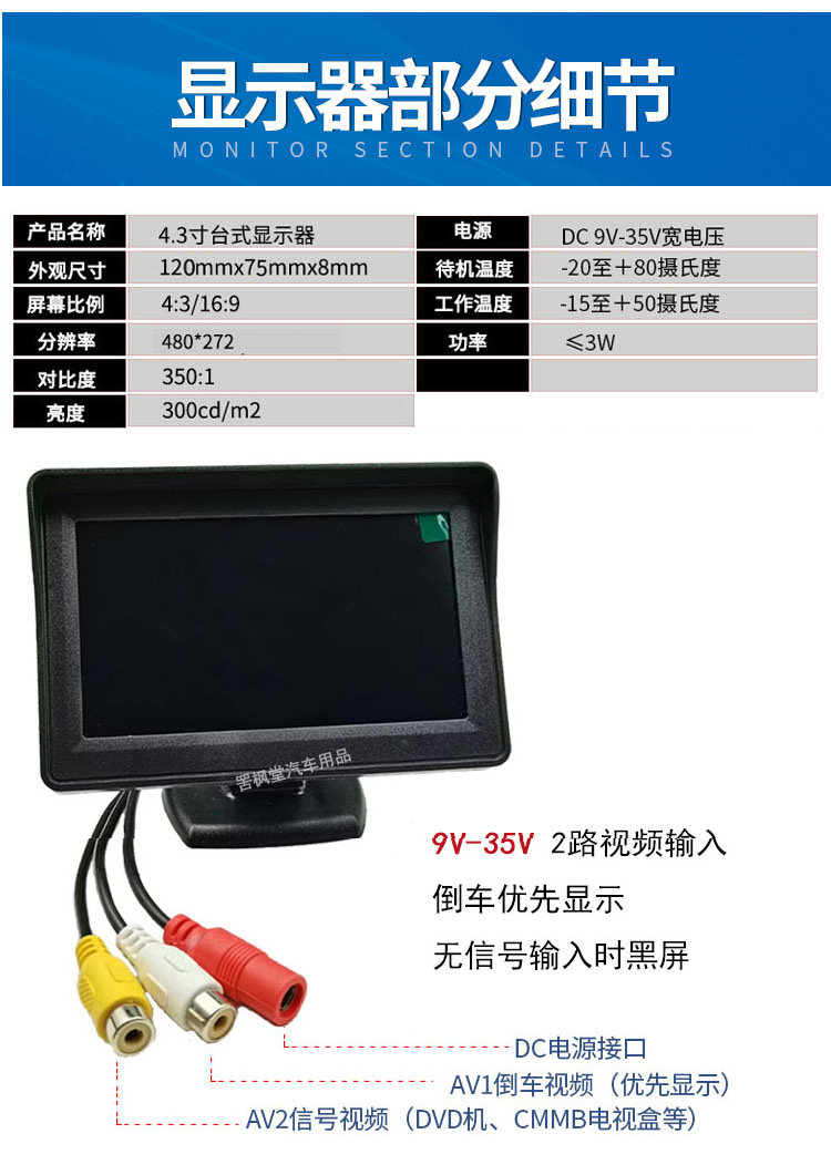 4.3inch Desktop Car Monitors, Car Dvd Small Display, Reversing Image, Simple Installation Model for Trucks and Sedans