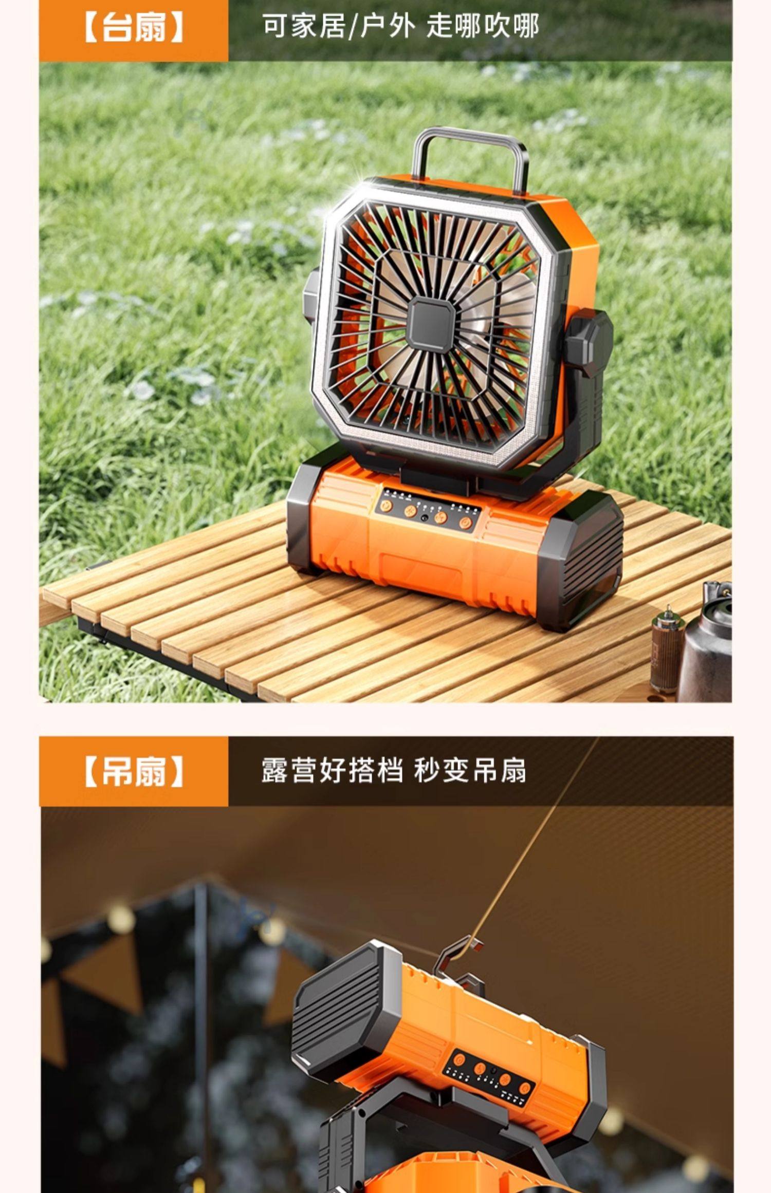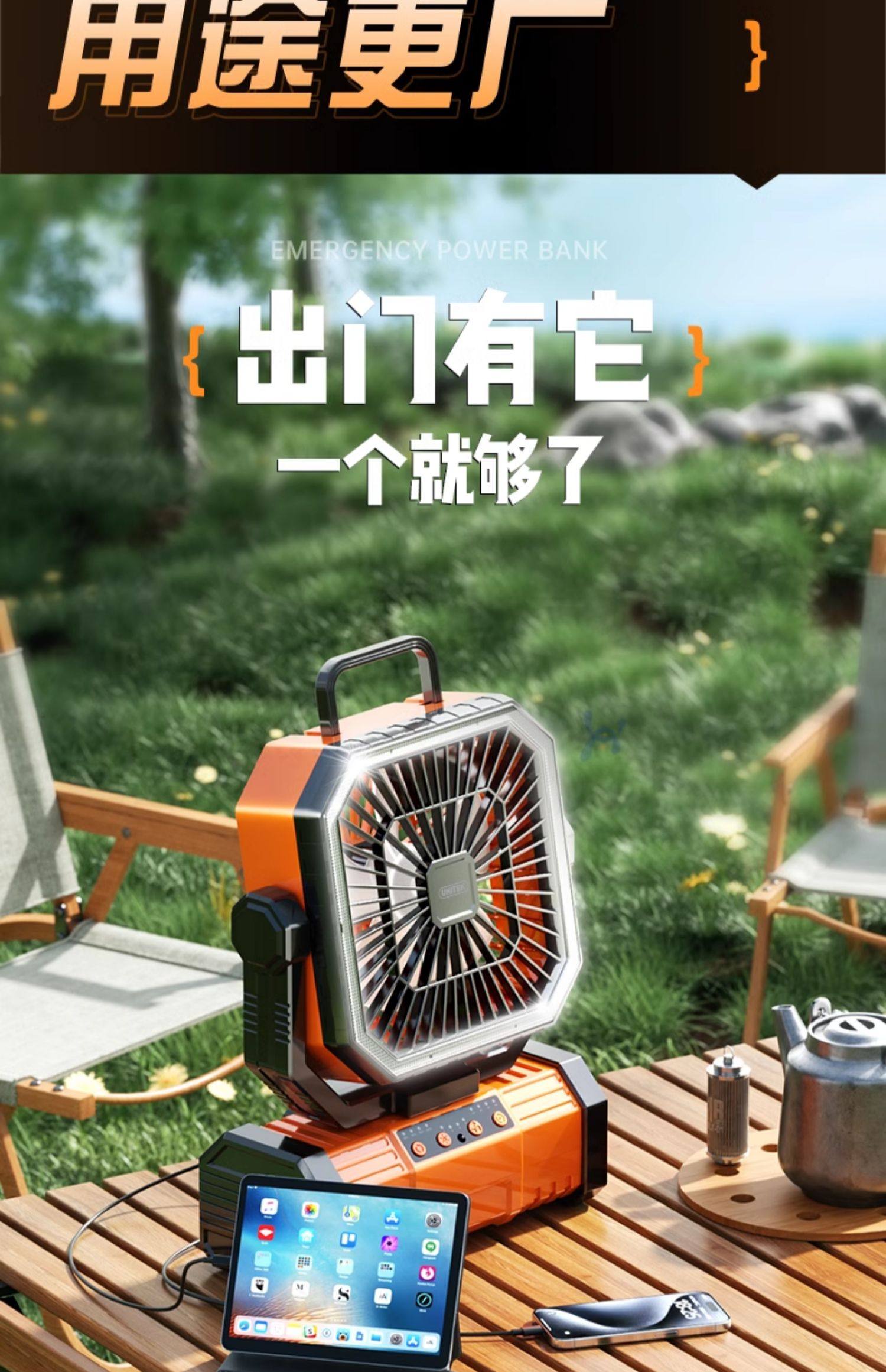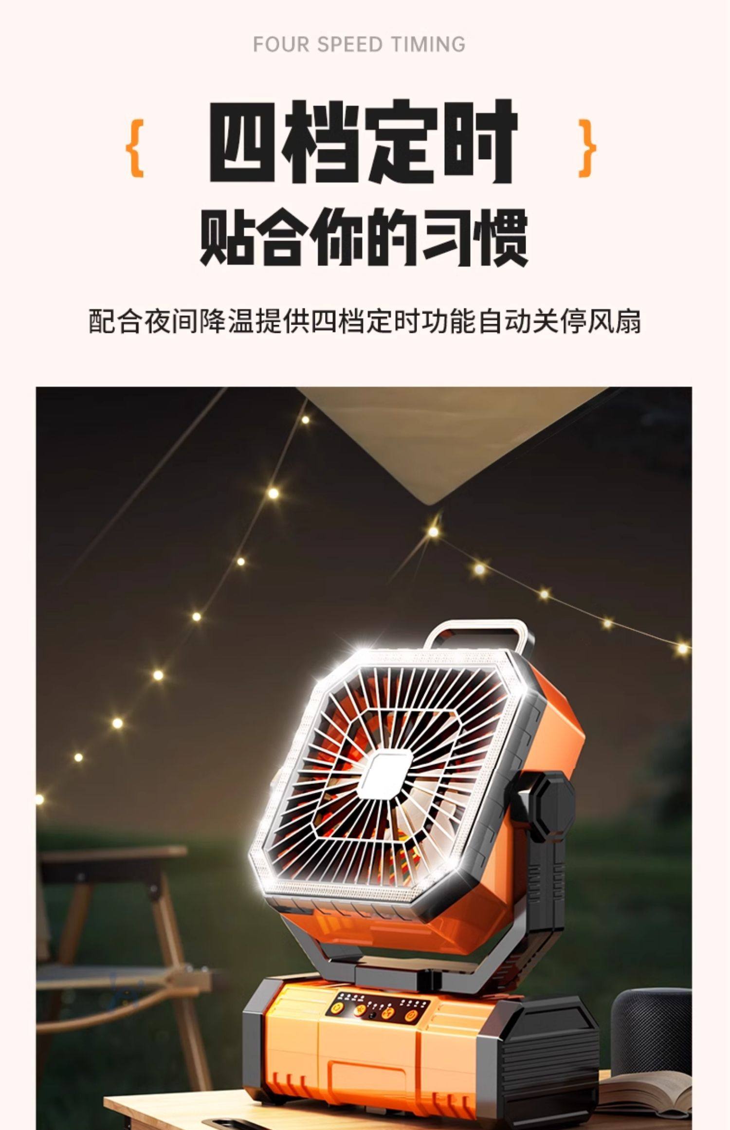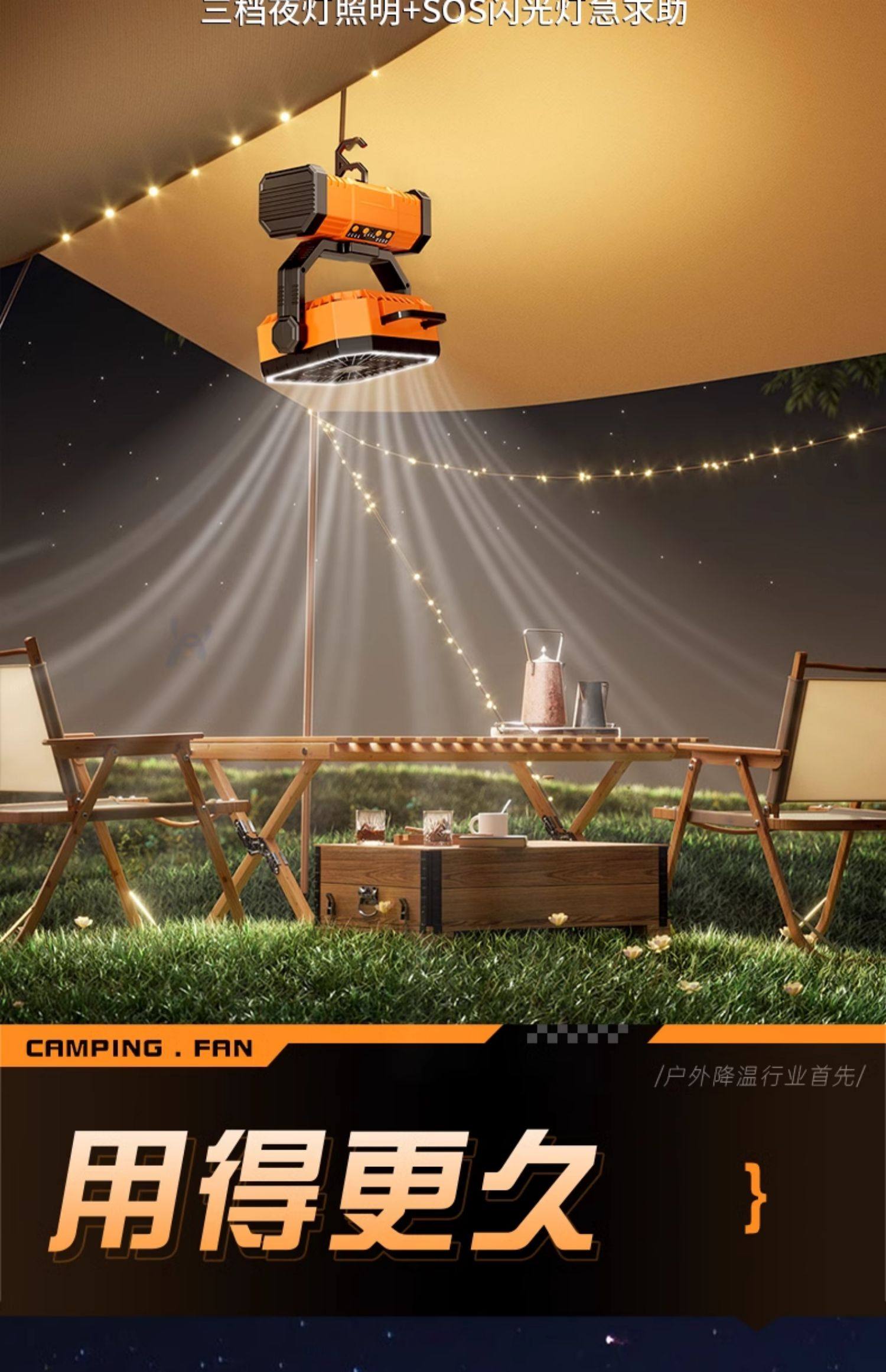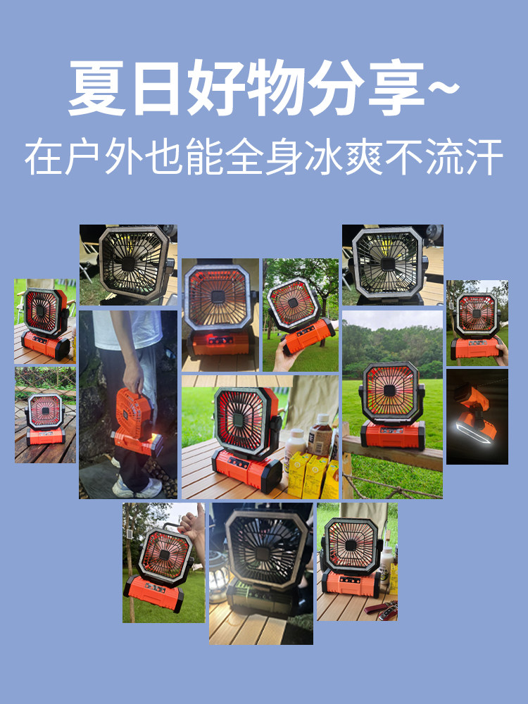 American Brand]Outdoor Camping Rechargeable Fan USB Portable Cooling Air Conditioner Fishing Small Camping Tent Strong Wind Cooling Device Student Dormitory Office Desktop Long Battery Life