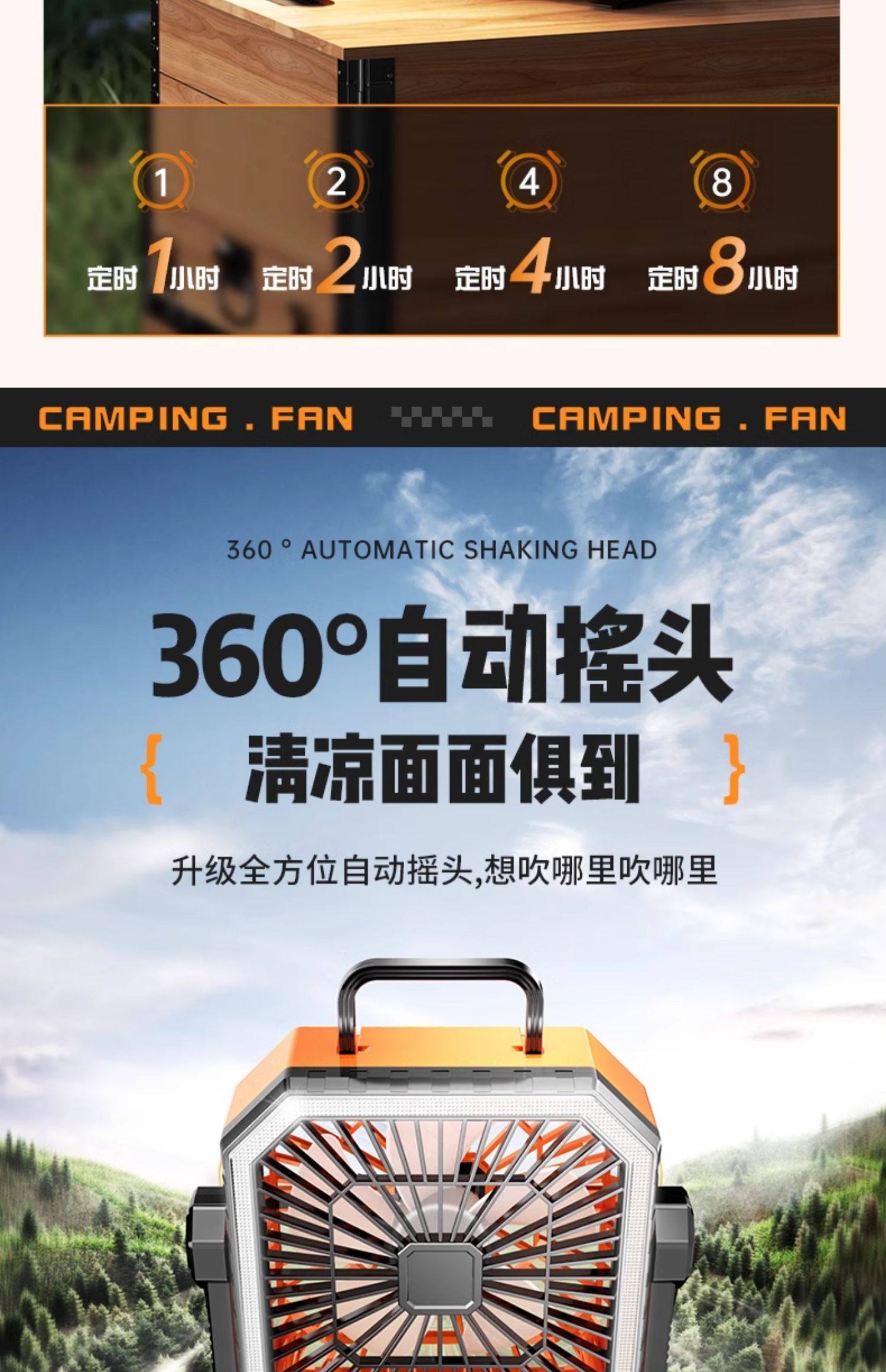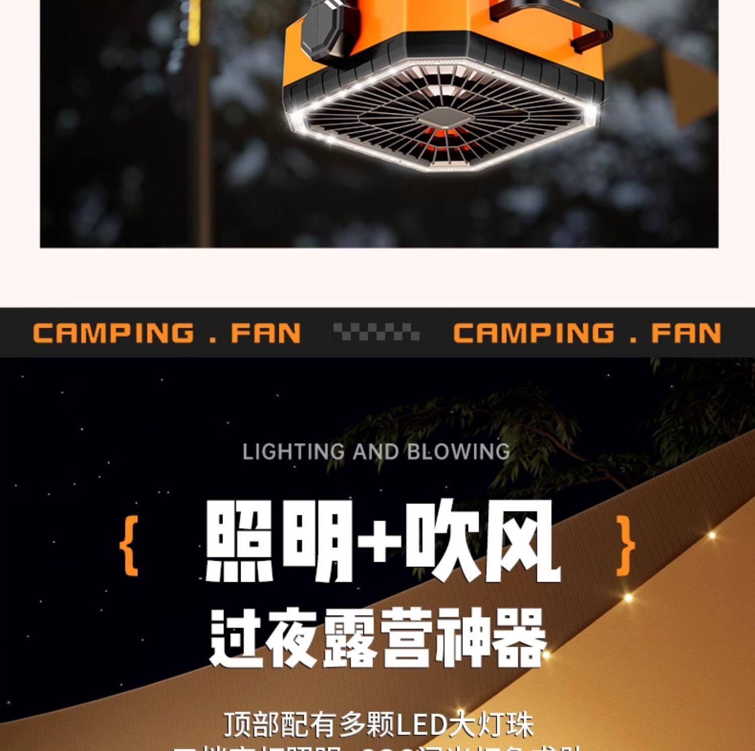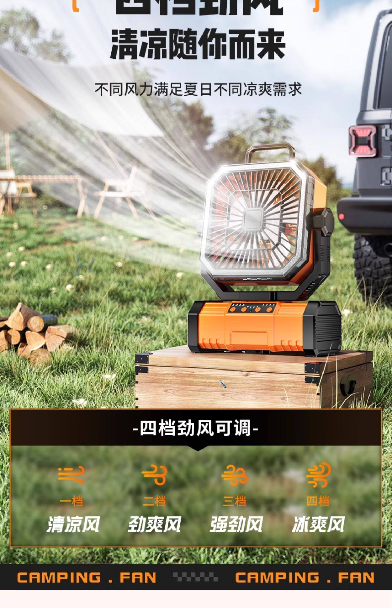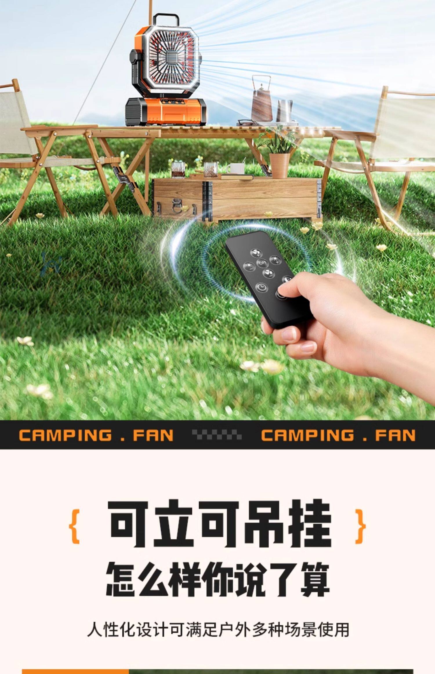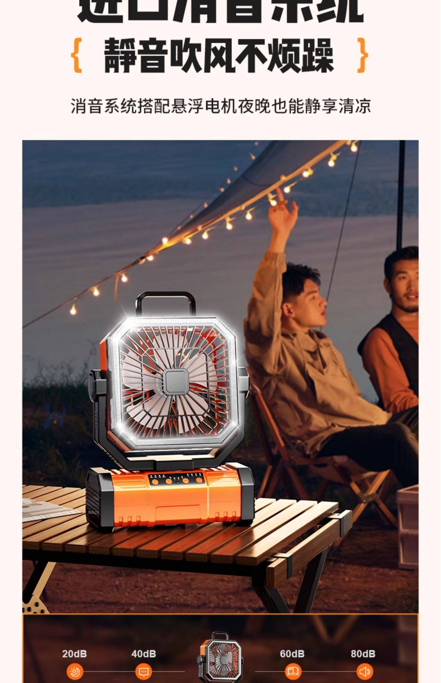 American Brand]Outdoor Camping Rechargeable Fan USB Portable Cooling Air Conditioner Fishing Small Camping Tent Strong Wind Cooling Device Student Dormitory Office Desktop Long Battery Life