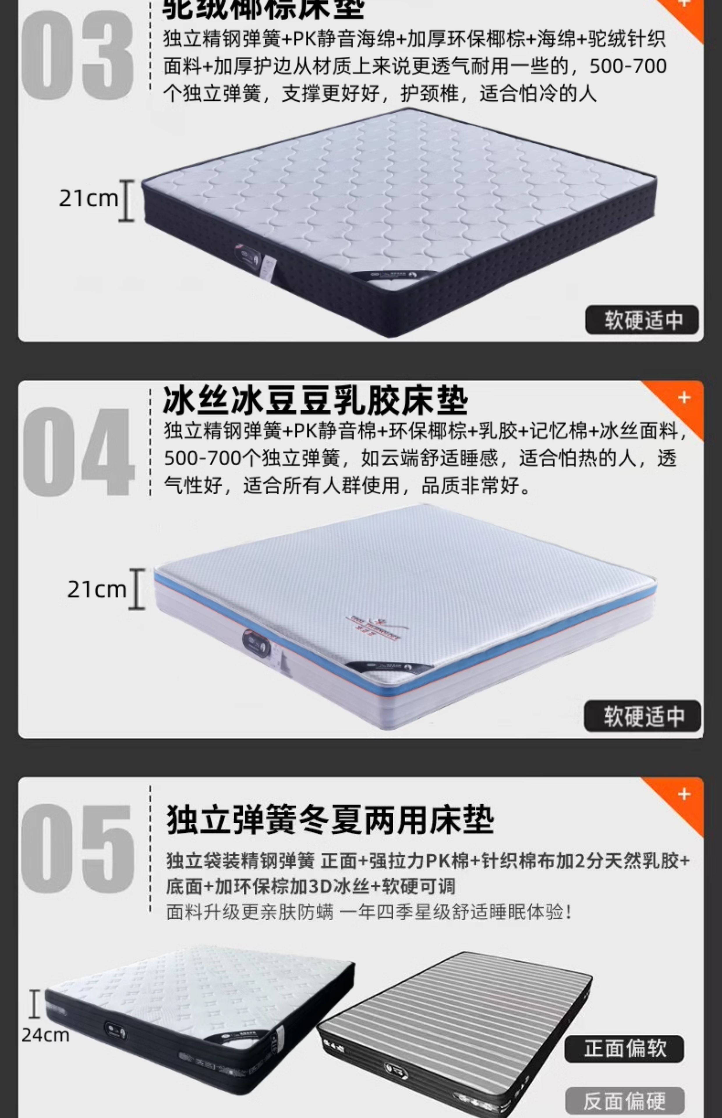 | Color Classification | Environmentally Friendly Brown Mattress (Hard 20 Whole Mesh Spring),9D Latex Mattress (Moderate Softness and Hardness 20 Whole Mesh Springs),Camel Velvet Coconut Palm Mattress (Hard 21cm Independent Spring),Ice Silk Latex Mattress - Moderately Soft and Hard 21 Independent Springs,Environmentally Friendly Coconut Palm Mattress (Pure Coconut Palm 10cm),Ice Silk Fully Disassembled 3D Fiber Mattress-24Cm Independent Bag,Velvet Fully Disassembled Latex Mattress-Independent Bag Spring,Winter and Summer Latex Mattress-24Cm in Individual Bag,Vacuum Packed Latex Mattress-Independent Bagged Spring |