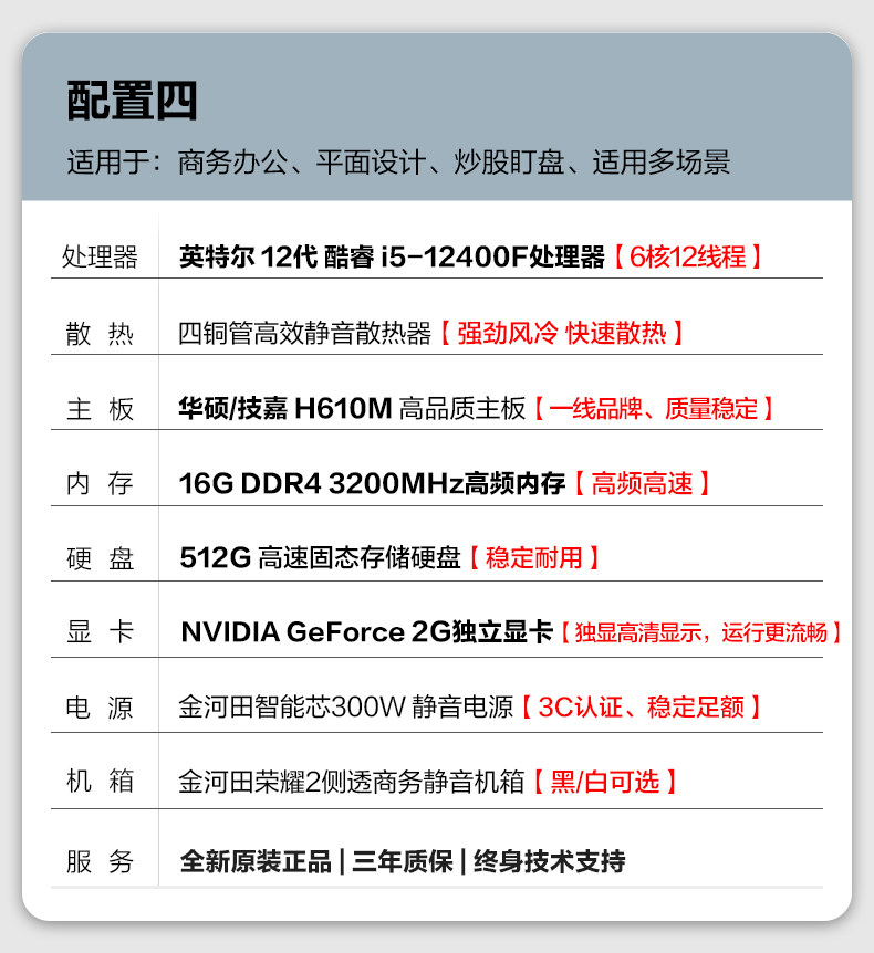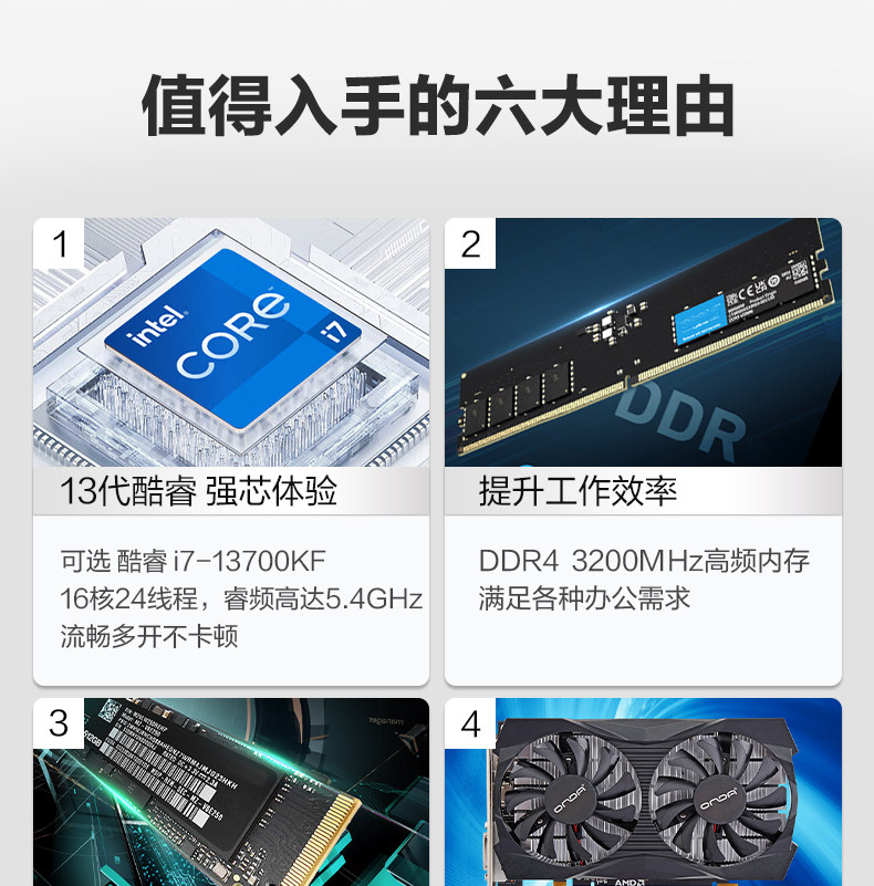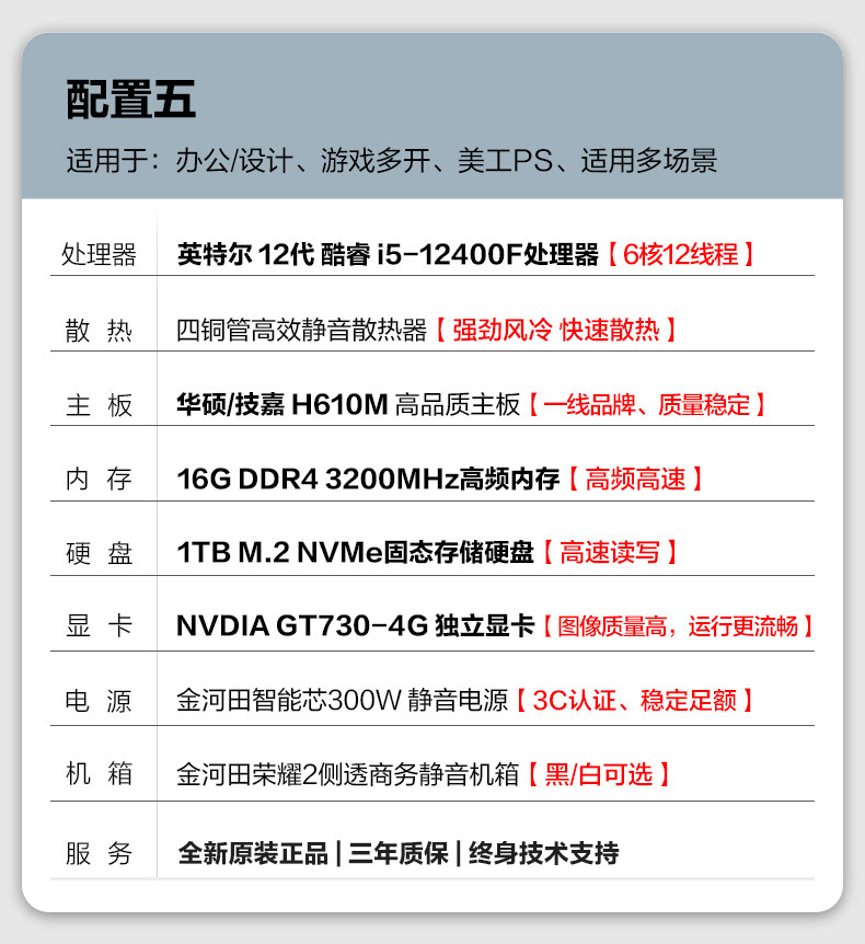 Core I5 Office Computer Desktop Host Home Complete Machine New Assembly Diy12400/13400/14400 Business Daily Office Audio and Video Entertainment Drama Online Class Teaching Security Monitoring