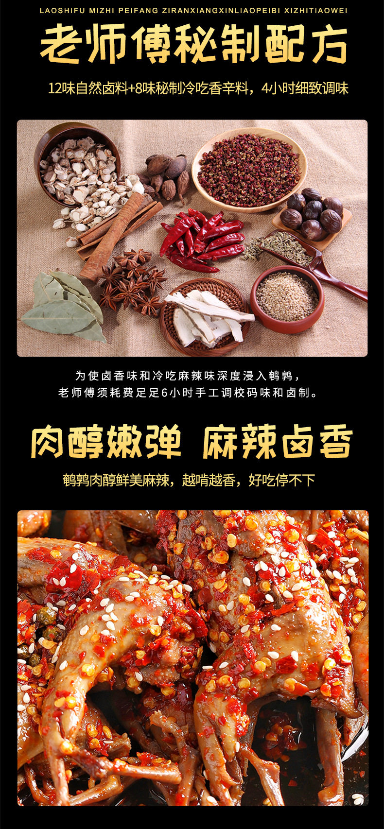 Zigong Specialty, Whole Spicy Quail Braised in Marinade, Snack Meat, Ready-To-Eat Food, Popular Snack, Side Dish for Drinks, Late-Night Snack
