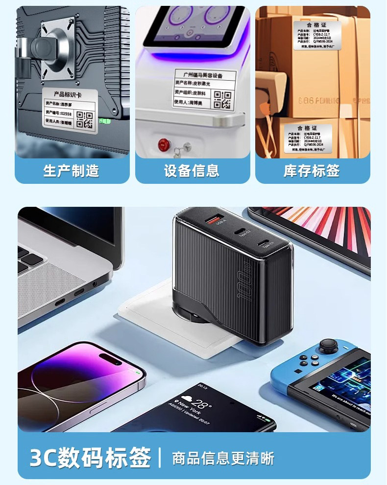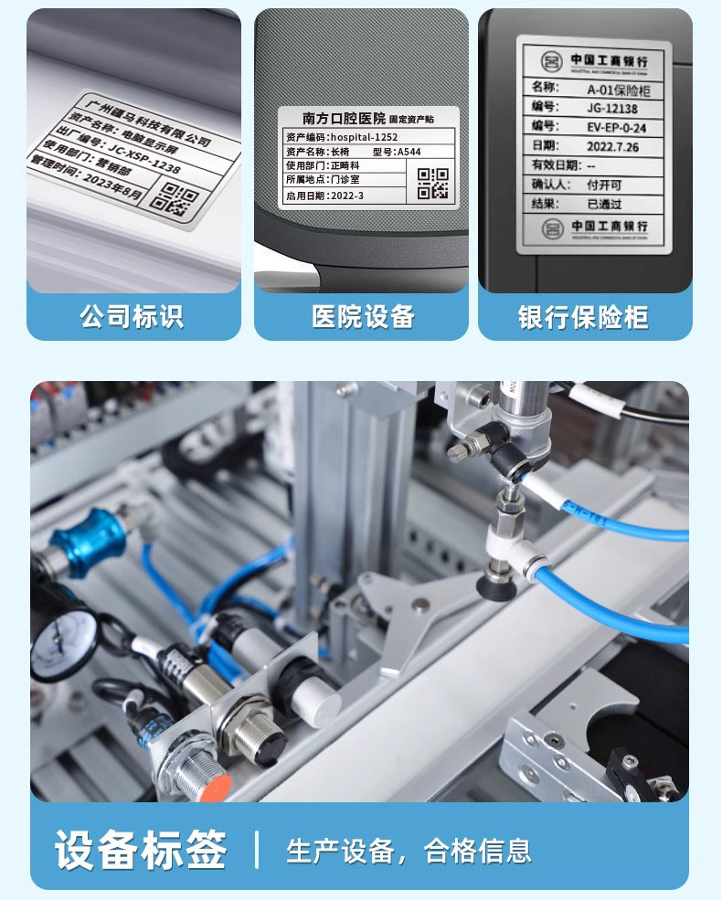 Jiangma Su7/8 Industrial-Grade Waterproof Barcode Label Printer for Certificates, Equipment Nameplates, Coated Paper, Pet Matte Silver Adhesive High-Definition Fixed Asset Ribbon Thermal Transfer Label Printer
