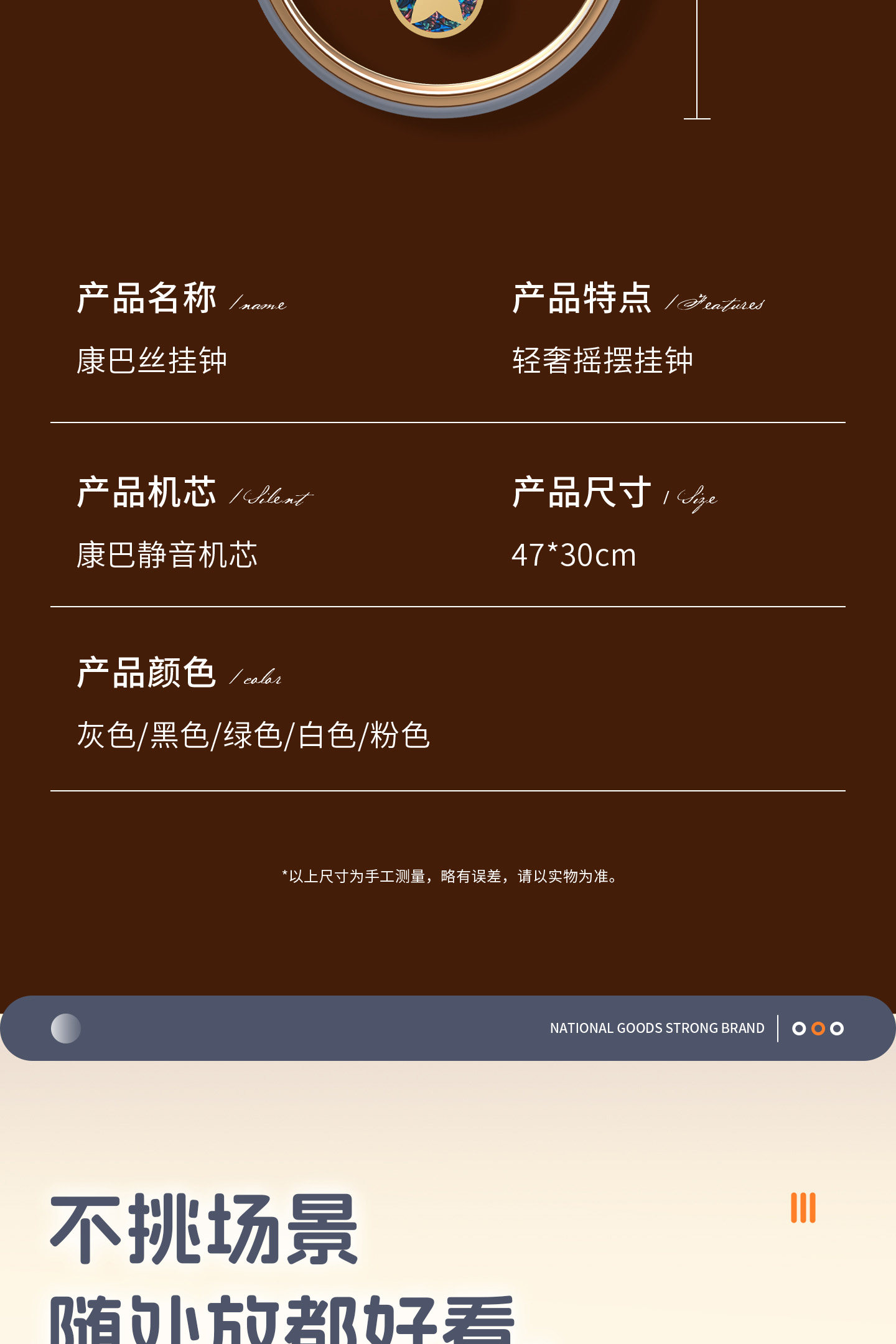 | Color Classification | Gray [Swinging Wall Clock],Black [Swinging Wall Clock],Green [Swinging Wall Clock],White [Swinging Wall Clock],Pink [Swinging Wall Clock],White Model [Silent and Punctual, Pendulum Swings Left and Right],Gray Model [Silent and Punctual, Pendulum Swings Left and Right],Black Model [Silent and Punctual, Pendulum Swings Left and Right],Green Model [Silent and Punctual, Pendulum Swings Left and Right],Pink Model [Silent and Punctual, the Pendulum Swings Left and Right] |