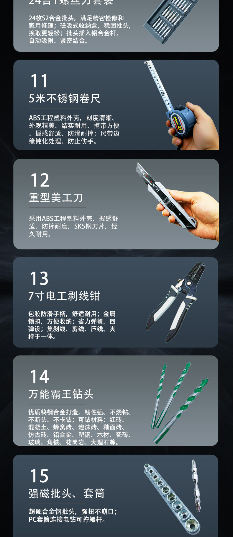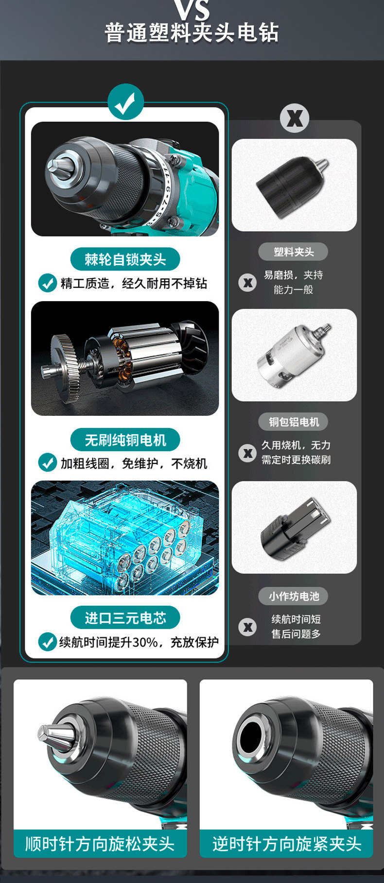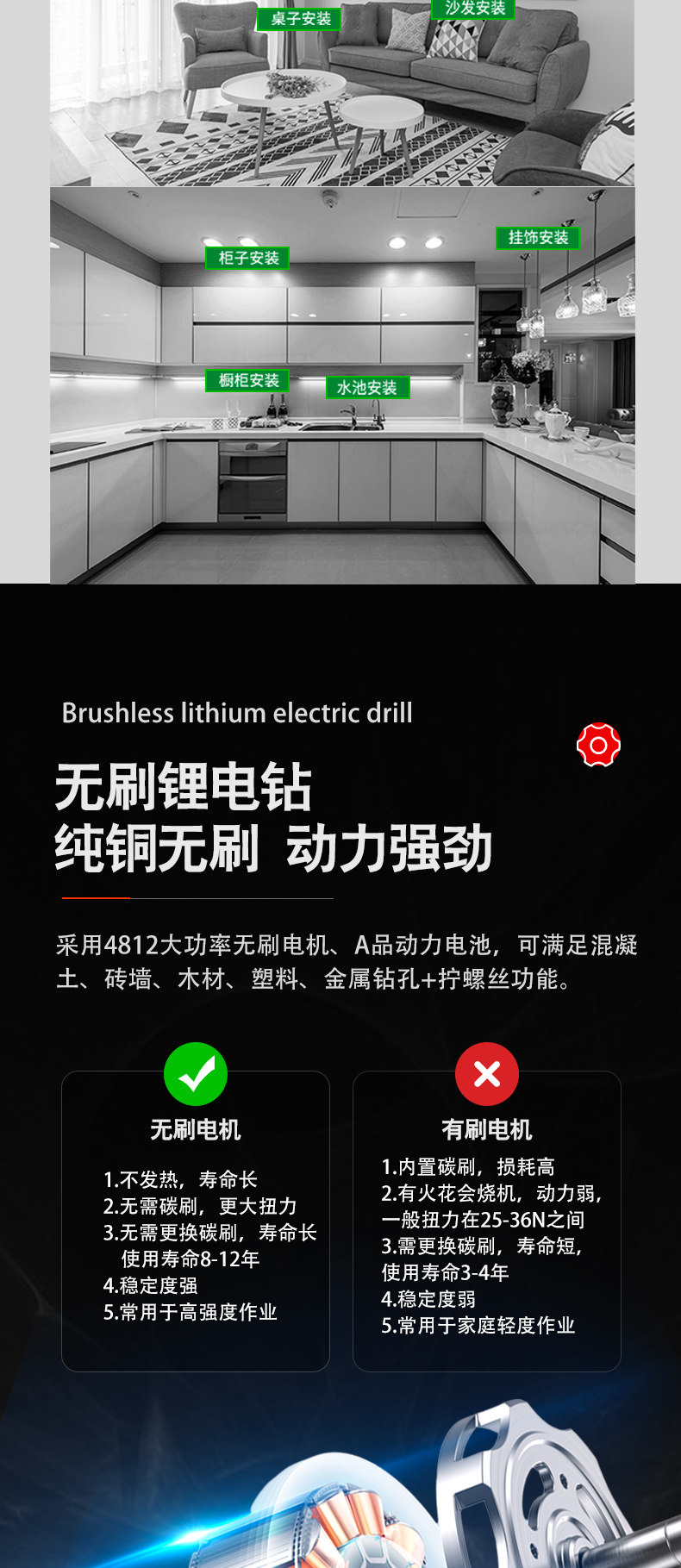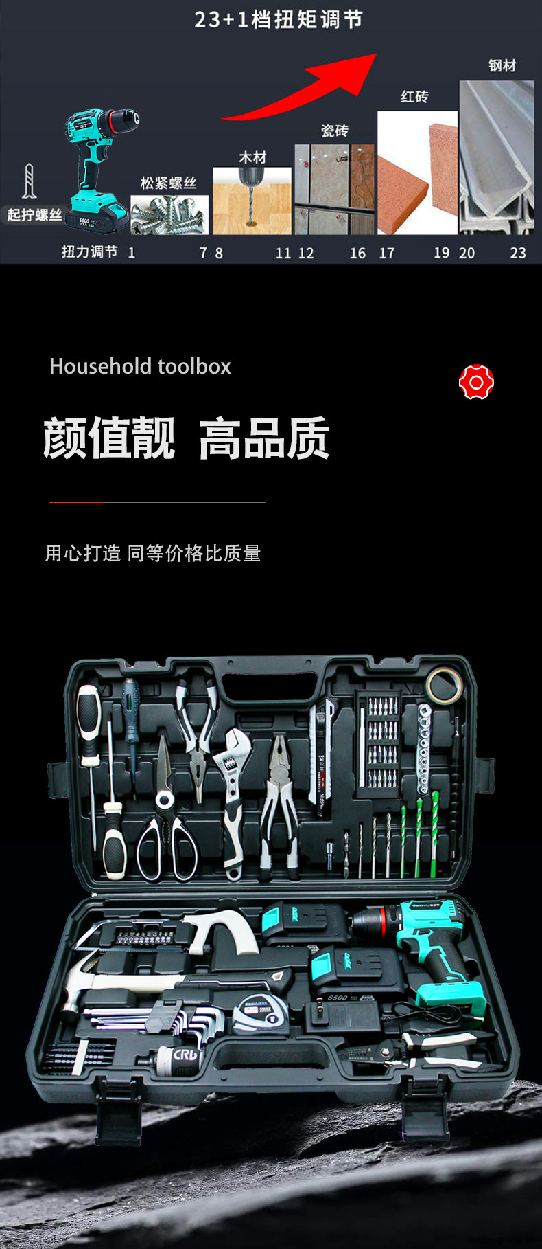 | Color Classification | 【21V Brushless Cordless Drill】Pro-Grade Kit (1 Battery),【21V Brushless Cordless Drill】Pro-Grade Kit (2 Batteries),【21V Brushless Drill】Warrior Kit (1 Battery, 1 Charger),【21V Brushless Cordless Drill】Warrior Kit (2 Batteries, 1 Charger),【21V Brushless Drill】Warrior (1 Battery, 1 Charger),【21V Brushless Cordless Drill】Warrior (2 Batteries),【16.8V Brushless Cordless Drill】Xuanwu (1 Battery),【16.8V Brushless Cordless Drill】Xuanwu (2 Batteries),【21V Brushless Drill】Warrior Kit (1 Battery, 1 Charger),【21V Brushless Drill】Warrior Kit (2 Batteries, 1 Charger),【16.8V Brushless Cordless Drill】 Basalt Kit (1 Battery, 1 Charger),【16.8V Brushless Cordless Drill】 Basalt Kit (2 Batteries, 1 Charger),【16.8V Brushless Cordless Drill】Qilin (1 Battery),【16.8V Brushless Cordless Drill】Qilin (2 Batteries),【16.8V Brushless Cordless Drill】Kirin Kit (1 Battery, 1 Charger),【16.8V Brushless Cordless Drill】Kirin Kit (2 Batteries, 1 Charger),【16.8V Brushless Cordless Drill】Baimang Kit (1 Battery, 1 Charger),【16.8V Brushless Cordless Drill】Baimang Kit (2 Batteries, 1 Charger),【12V Brushed Cordless Drill】Xuan Huang Kit (1 Battery, 1 Charger),【12V Brushed Cordless Drill】Xuan Huang Kit (2 Batteries, 1 Charger),【12V Brushed Cordless Drill】 White Tiger Kit (1 Battery, 1 Charger),【12V Brushed Cordless Drill】 White Tiger Kit (2 Batteries, 1 Charger),【12V Brushed Cordless Drill】Xuan-Huang (1 Battery),【12V Brushed Cordless Drill】Xuan-Huang (2 Batteries),【21V Brushless Impact】 Emperor's Edition Kit (1 Battery, 1 Charger),【21V Brushless Impact】 Emperor's Edition Kit (2 Batteries, 1 Charger),【21V Brushless Impact】Master Kit (1 Battery),【21V Brushless Impact】Dominator Kit (2 Batteries, 1 Charger),【21V Brushless Impact】Master Kit (2 Batteries, 1 Charger),[21V Brushless] Electric Drill + Electric Wrench Set (1 Battery, 1 Charge),[21V Brushless] Electric Drill + Electric Wrench Set (2 Batteries and 1 Charger),[220V High-Power Plug-In Impact Drill Set] |