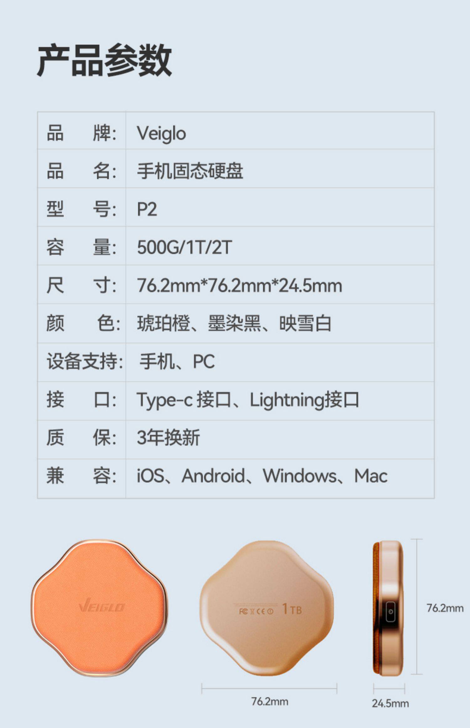 Veiglo Apple Mobile Hard Drive Solid State 1t Suitable for Huawei High-Speed External Computer Dual-Use USB Flash Drive