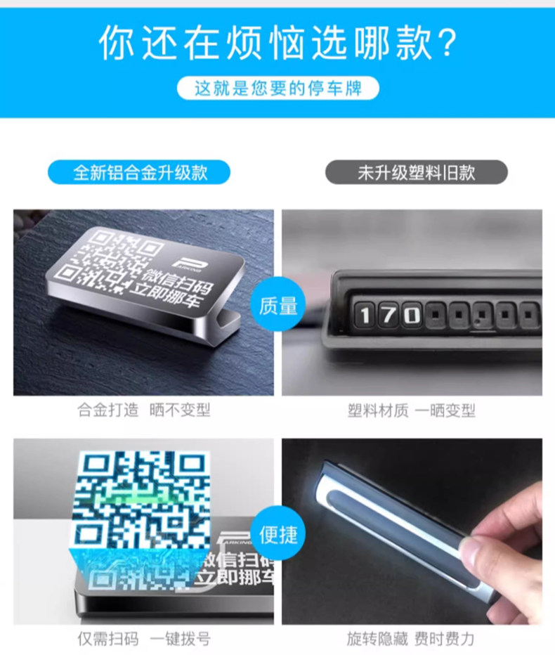 Scan Qr Code to Move Car, High-End 2024 New Creative Temporary Parking Number Plate, Moving Car Phone Number Plate, Metal