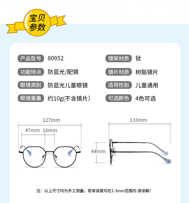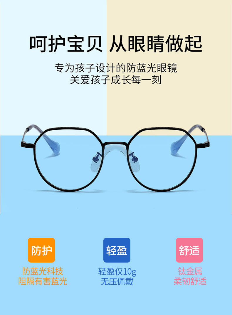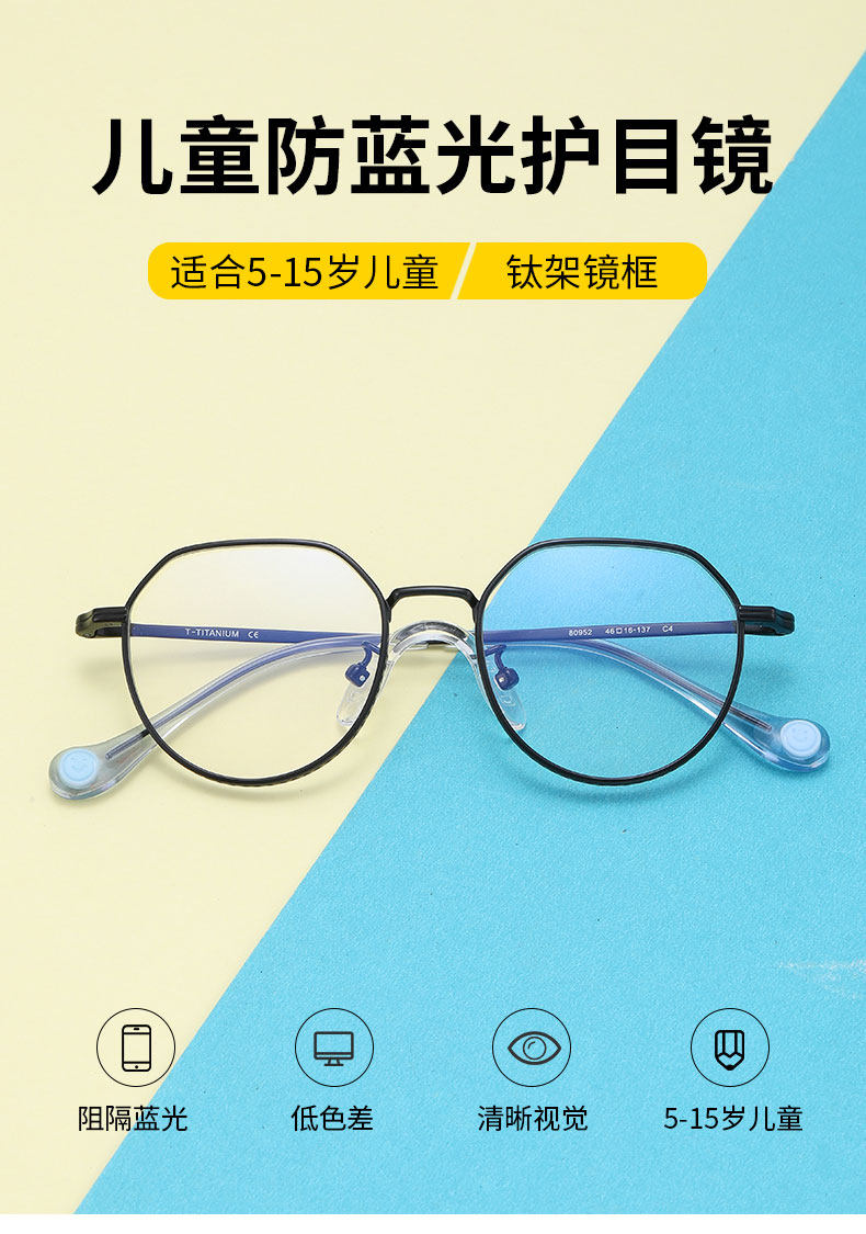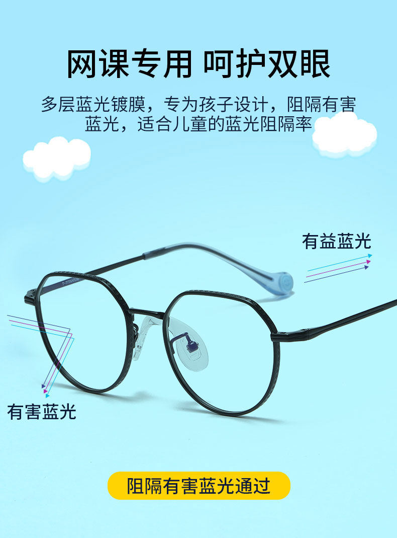 Pure Titanium Ultra-Light Kidsren's Anti-Blue Light Myopia Glasses Kidsren's Flat Glasses Eye Protection Boys and Girls Students Titanium Metal Frames