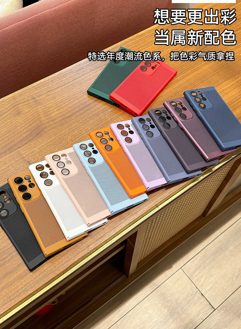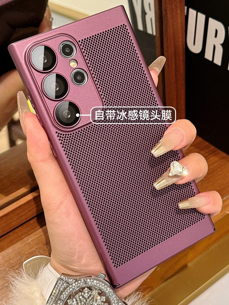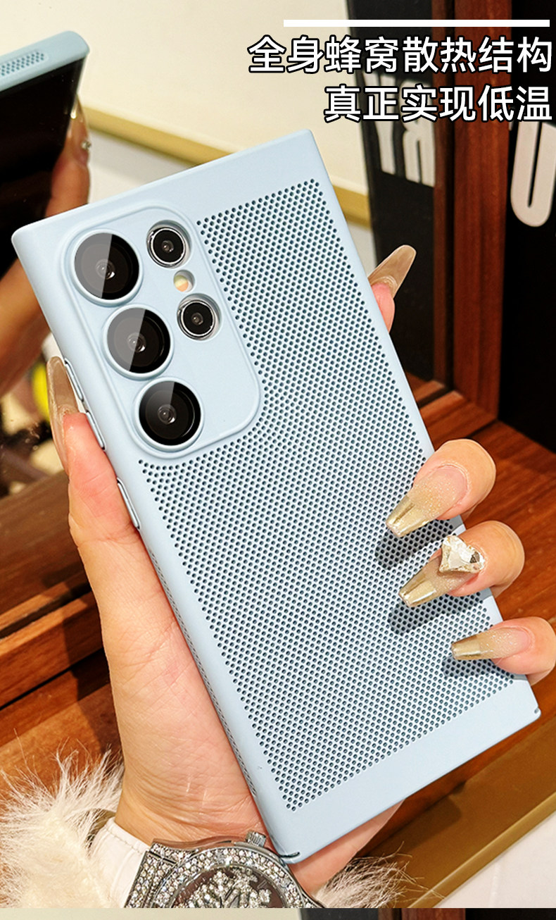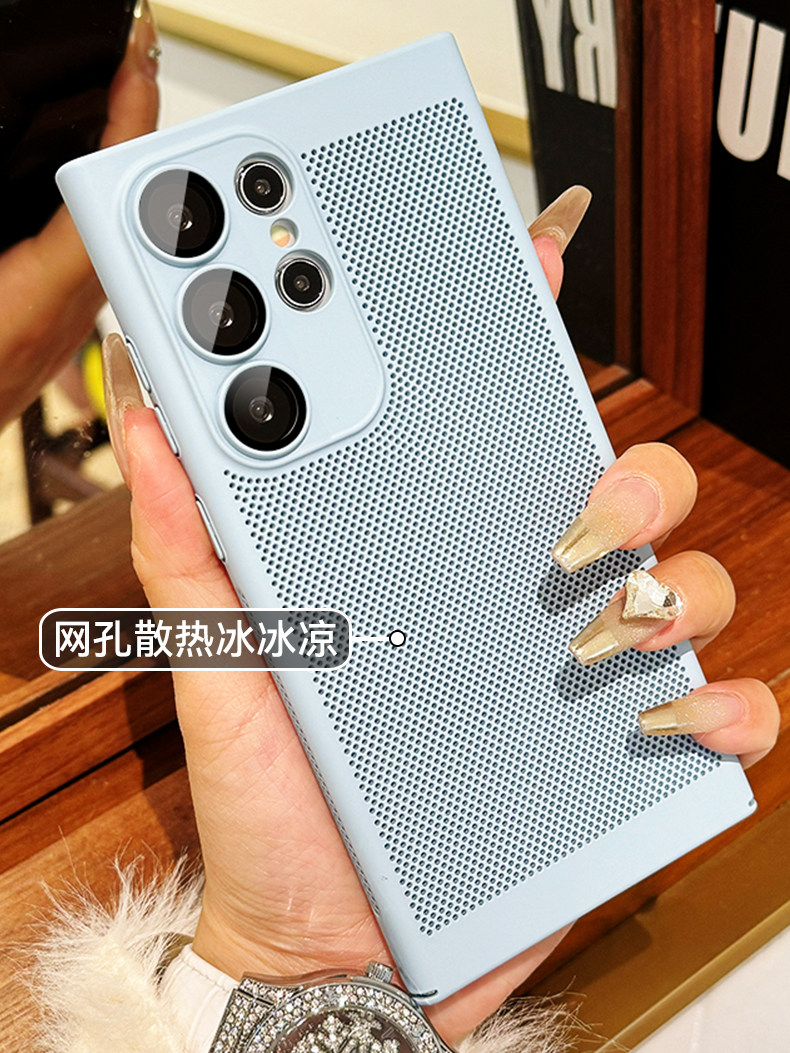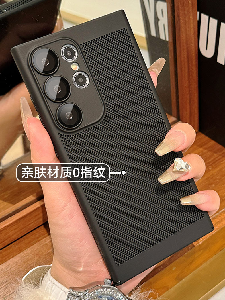 Samsung S24 Ultra Hollow Mesh Cooling Phone Case Galaxy S23+ Cooling Breathable New Model S21 Plus Lens Protective Case Full Coverage Note20U Anti-Drop Lightweight 10+ Matte Suitable