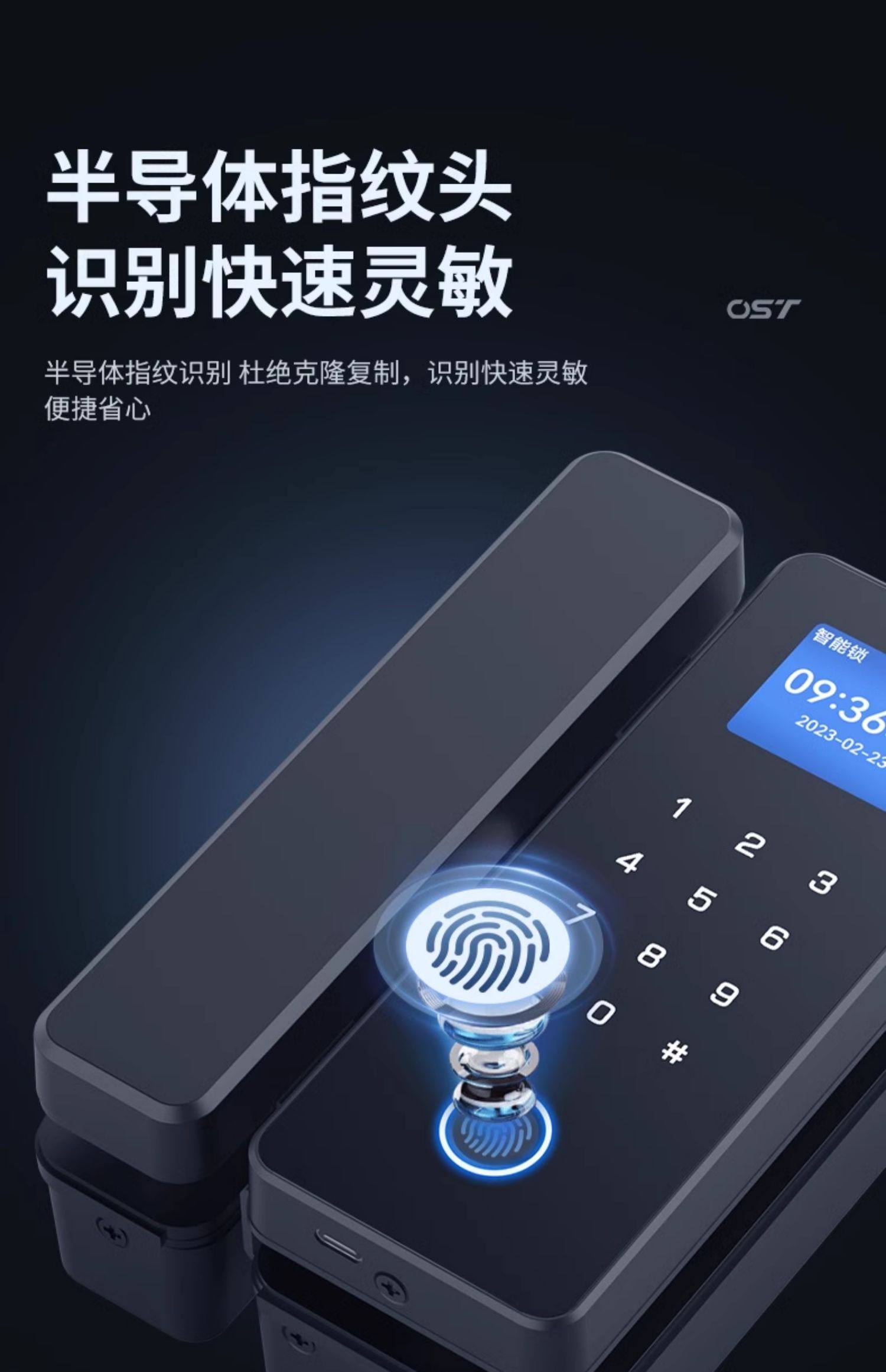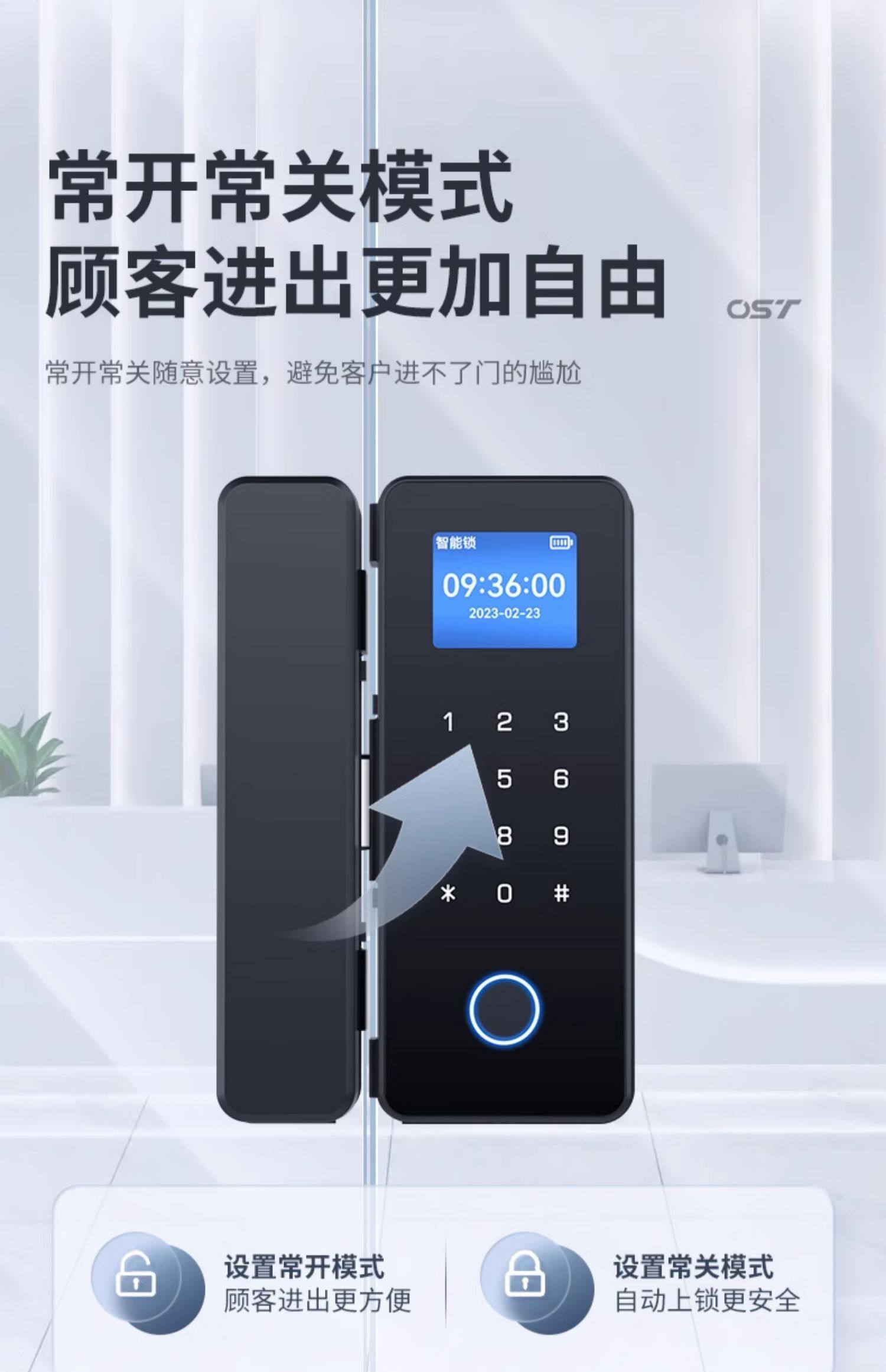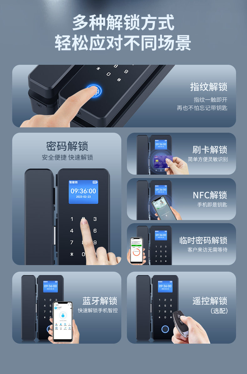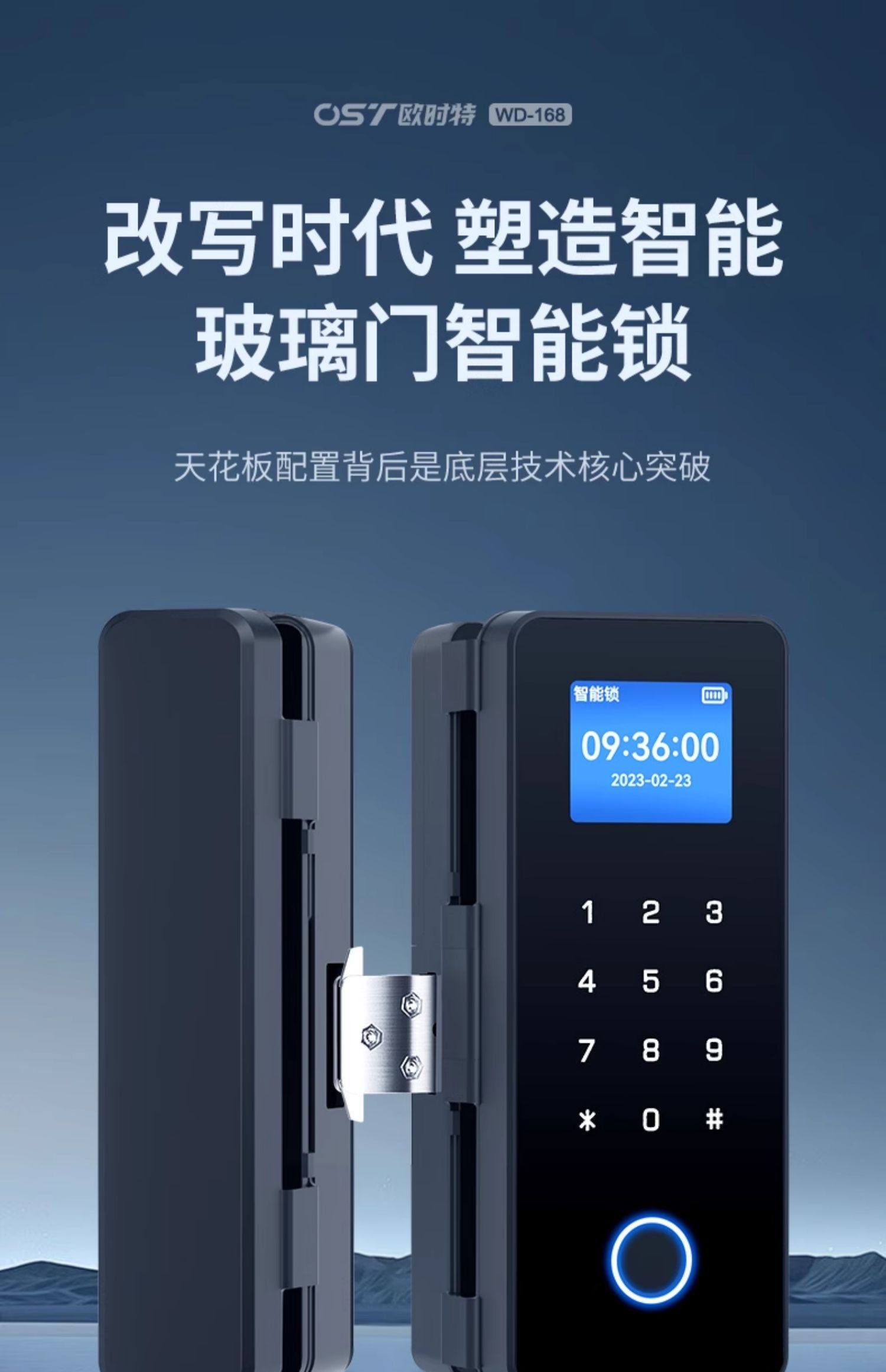 Glass Door Password Lock, Office Fingerprint Lock, Punch-Free Single and Double Door Double-Opening Electronic Smart Lock, Company Access Control Lock