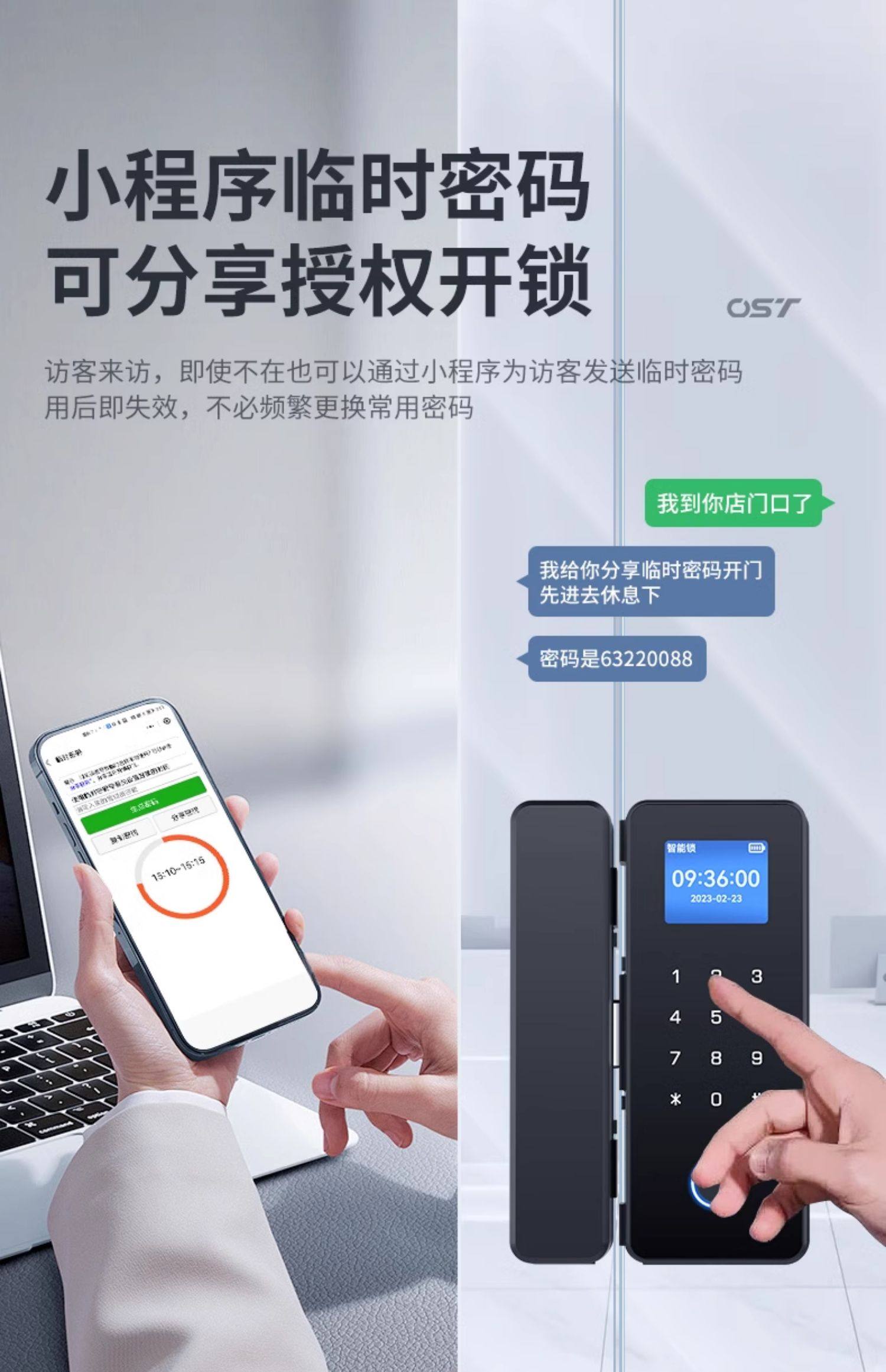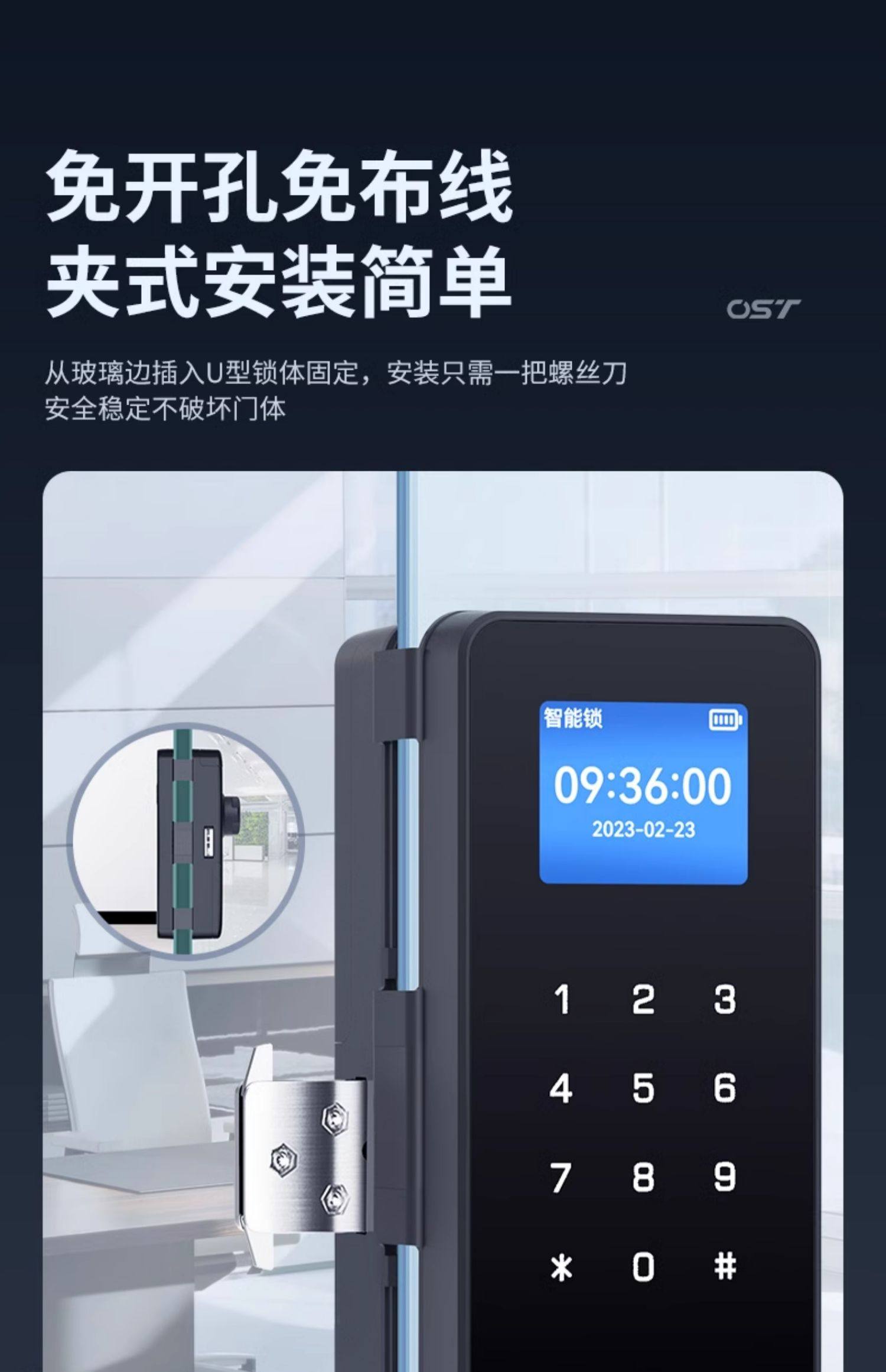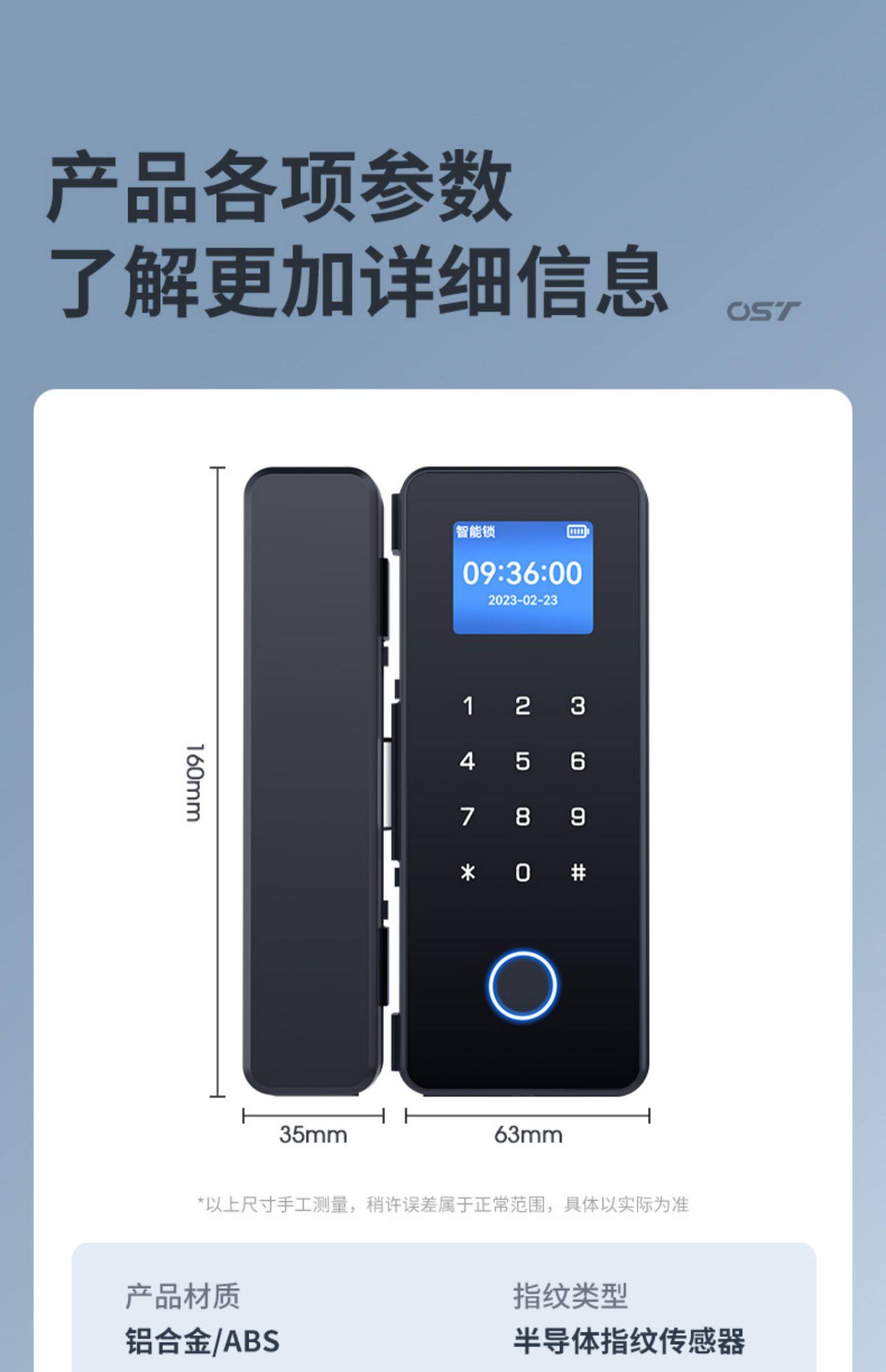 Glass Door Password Lock, Office Fingerprint Lock, Punch-Free Single and Double Door Double-Opening Electronic Smart Lock, Company Access Control Lock