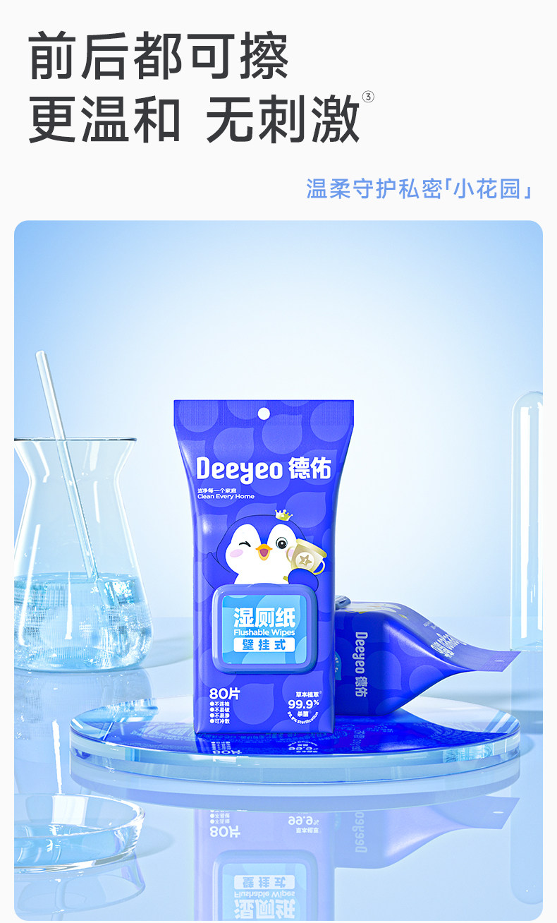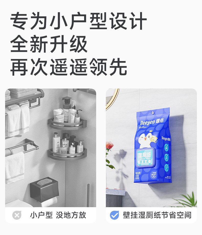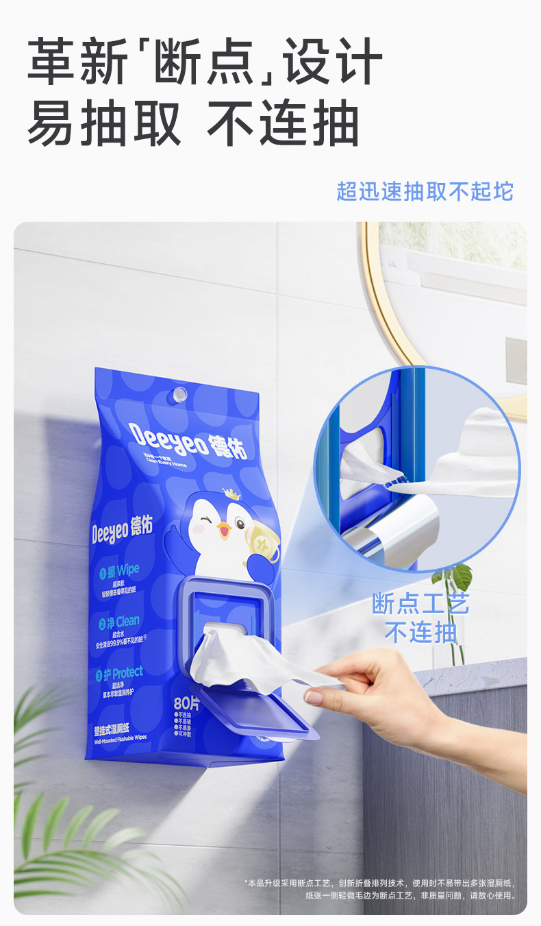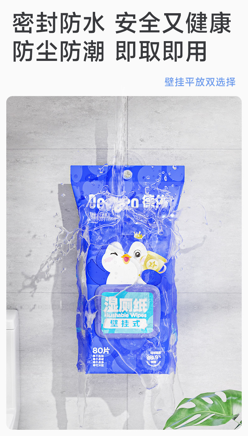 Deeyeo Wall-Mounted Wet Toilet Paper, 80 Sheets Per Pack, 12 Packs, Economical Family Pack, Women's Special Toilet