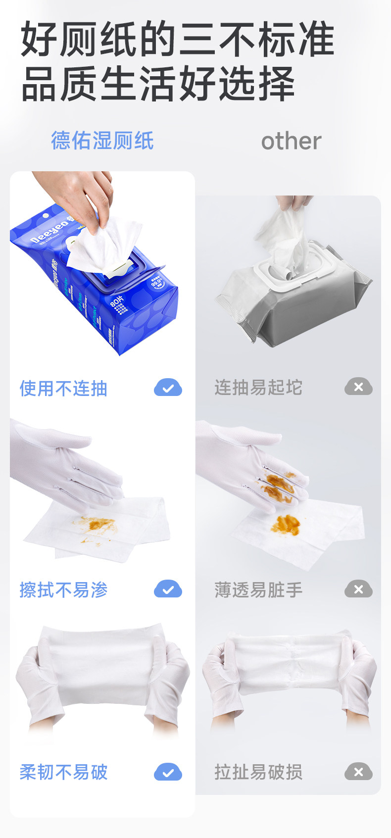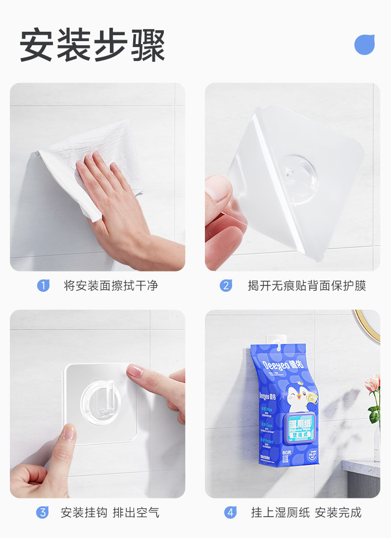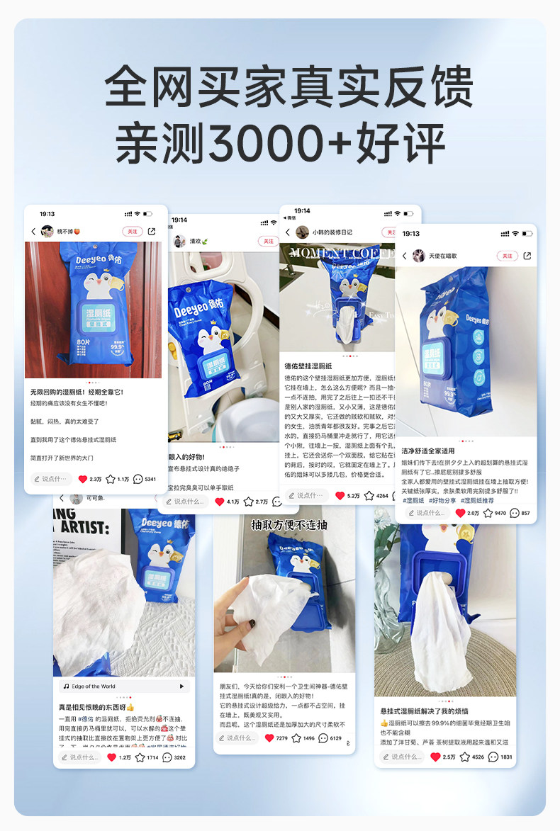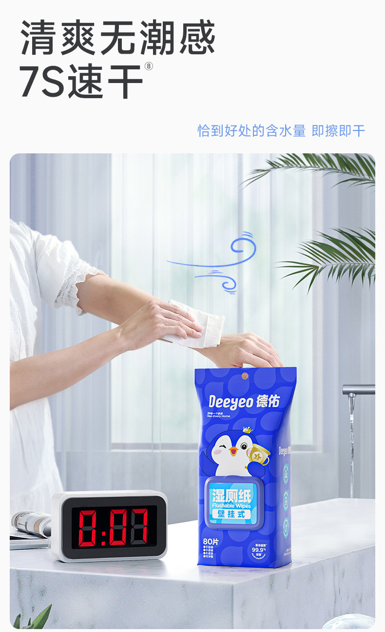 Deeyeo Wall-Mounted Wet Toilet Paper, 80 Sheets Per Pack, 12 Packs, Economical Family Pack, Women's Special Toilet