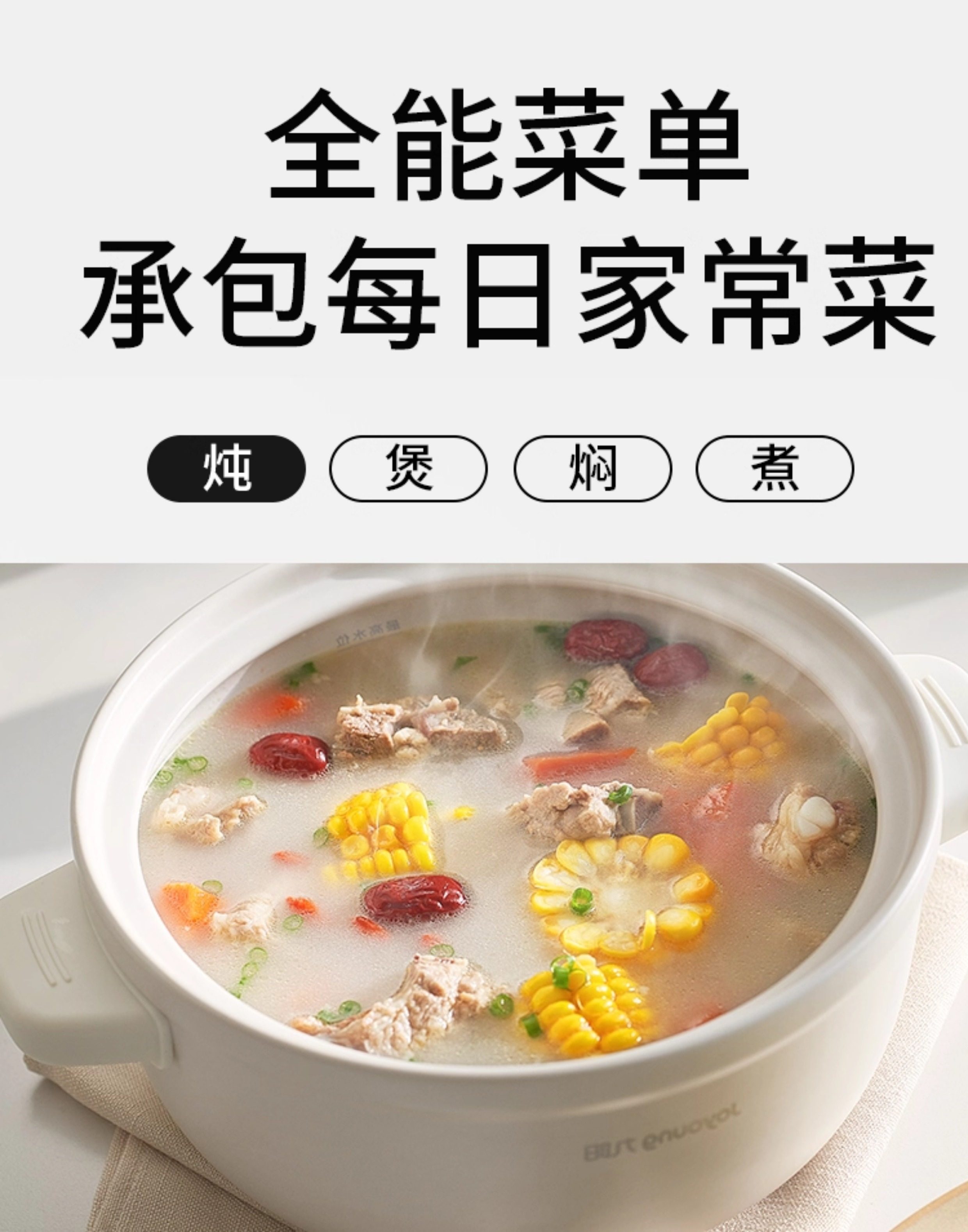 | Menu Function | Stew/Poach Meat,Cook Multigrain Porridge,Stewed Fish Maw,Cooking Complementary Foods,Other/Other,Cook White Porridge,Make Nutritious Soup,Bird's Nest,Stewed Dessert |
