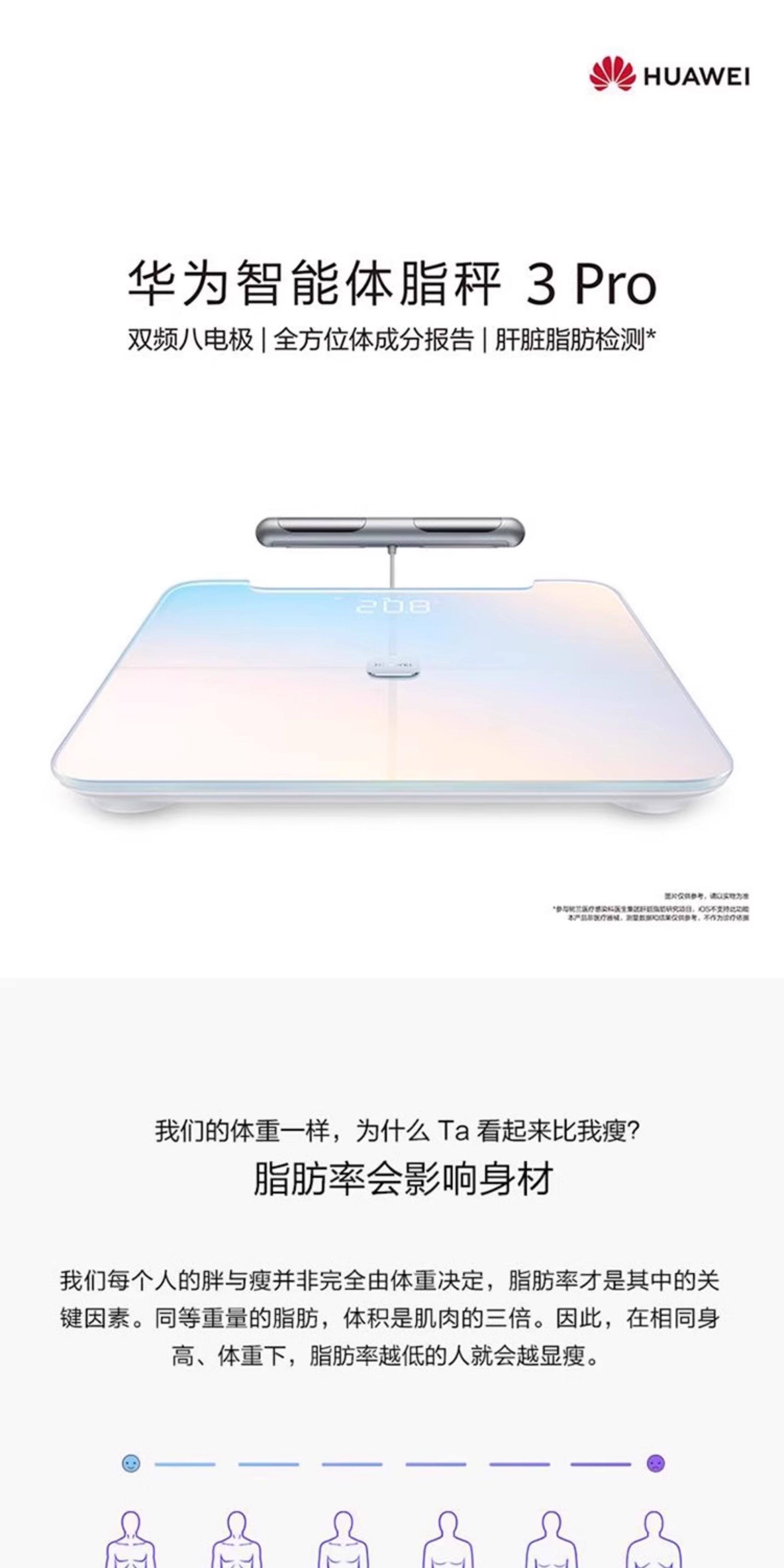 Huawei Smart Body Fat Scale 3 Pro Electronic Scale Original Genuine Professional Home Use Small Health Fat Monitoring Body Shaping Accurate Dual-Frequency Liver Detection Digital Display Bluetooth Wifi Connection
