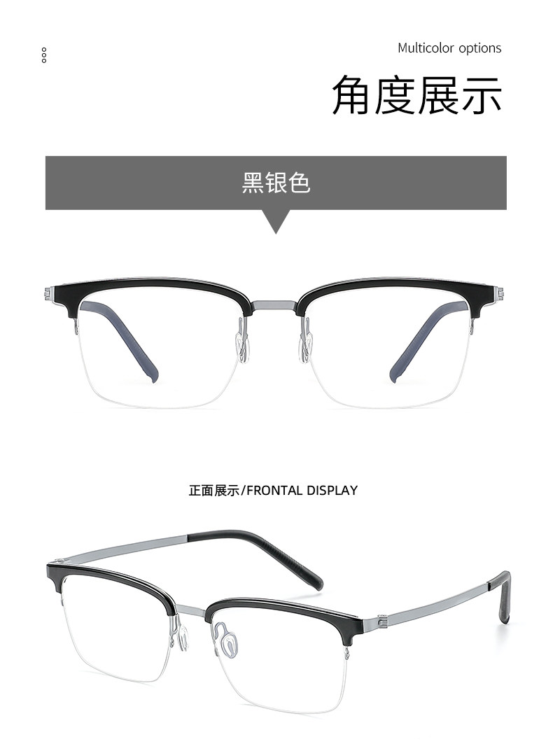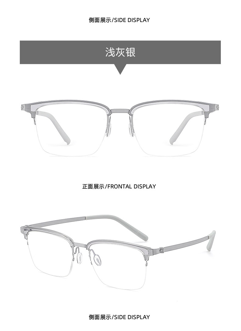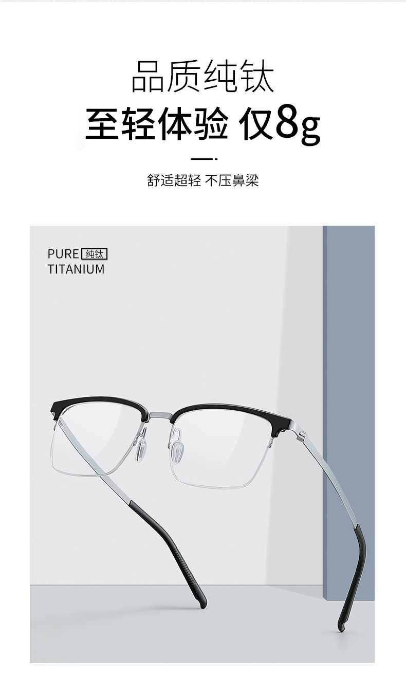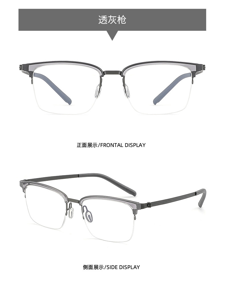 Pure Titanium Glasses for Men Can Be Customized with Prescription Lenses, Professional Online Prescription Lenses for Myopia and Astigmatism, Half-Rim and Half-Frame Titanium Frames
