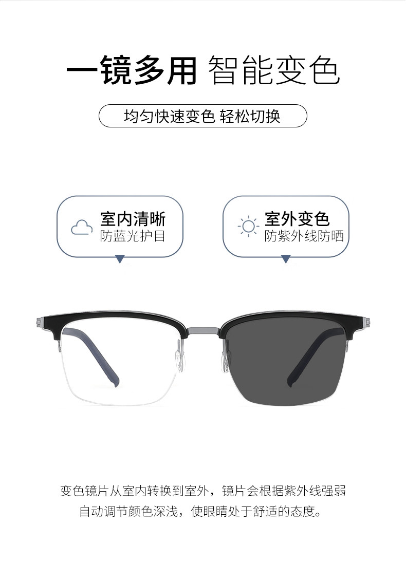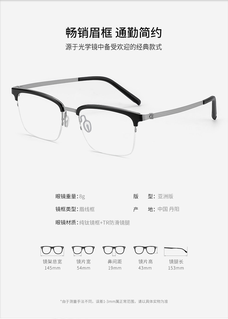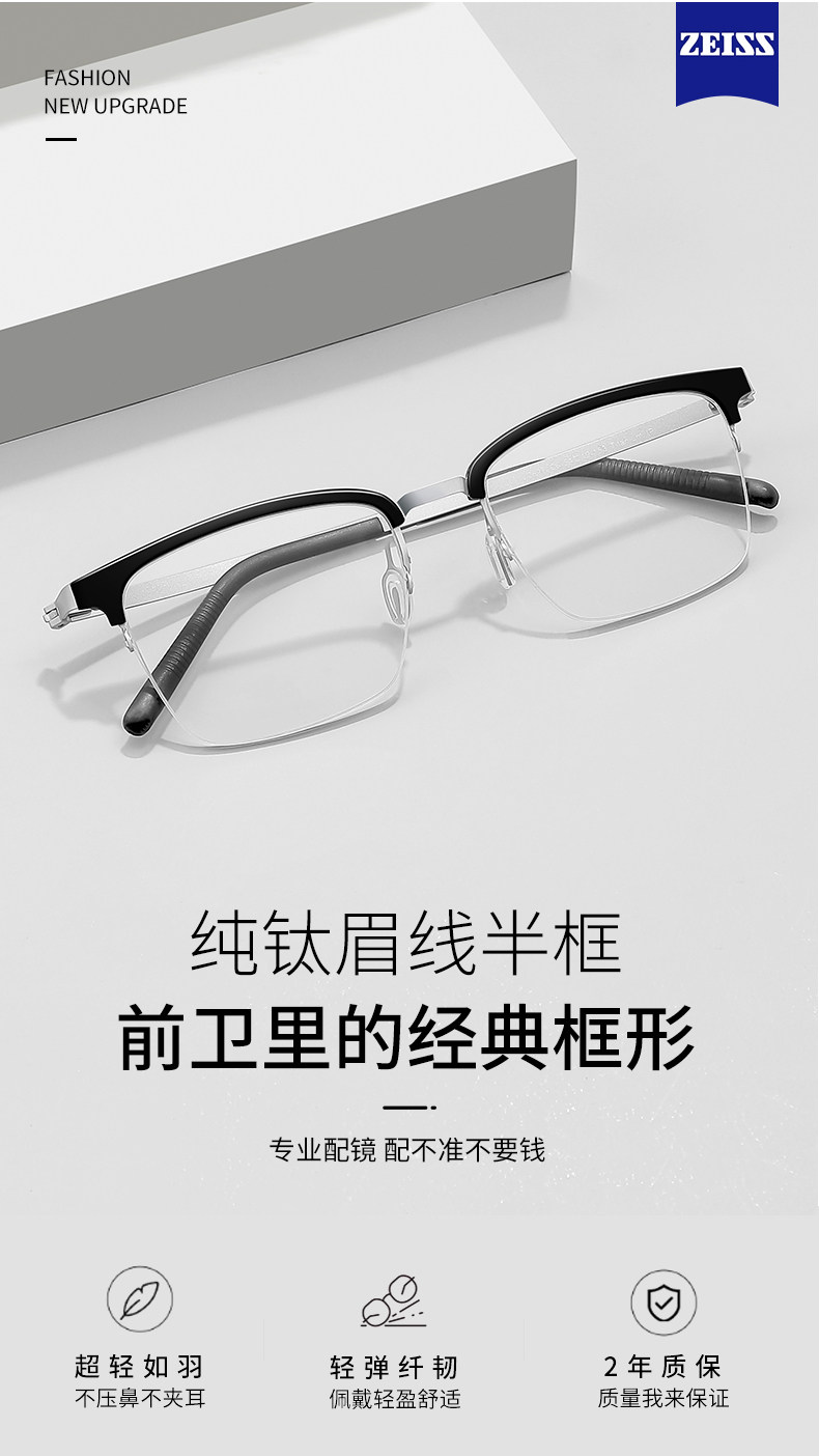 Pure Titanium Glasses for Men Can Be Customized with Prescription Lenses, Professional Online Prescription Lenses for Myopia and Astigmatism, Half-Rim and Half-Frame Titanium Frames