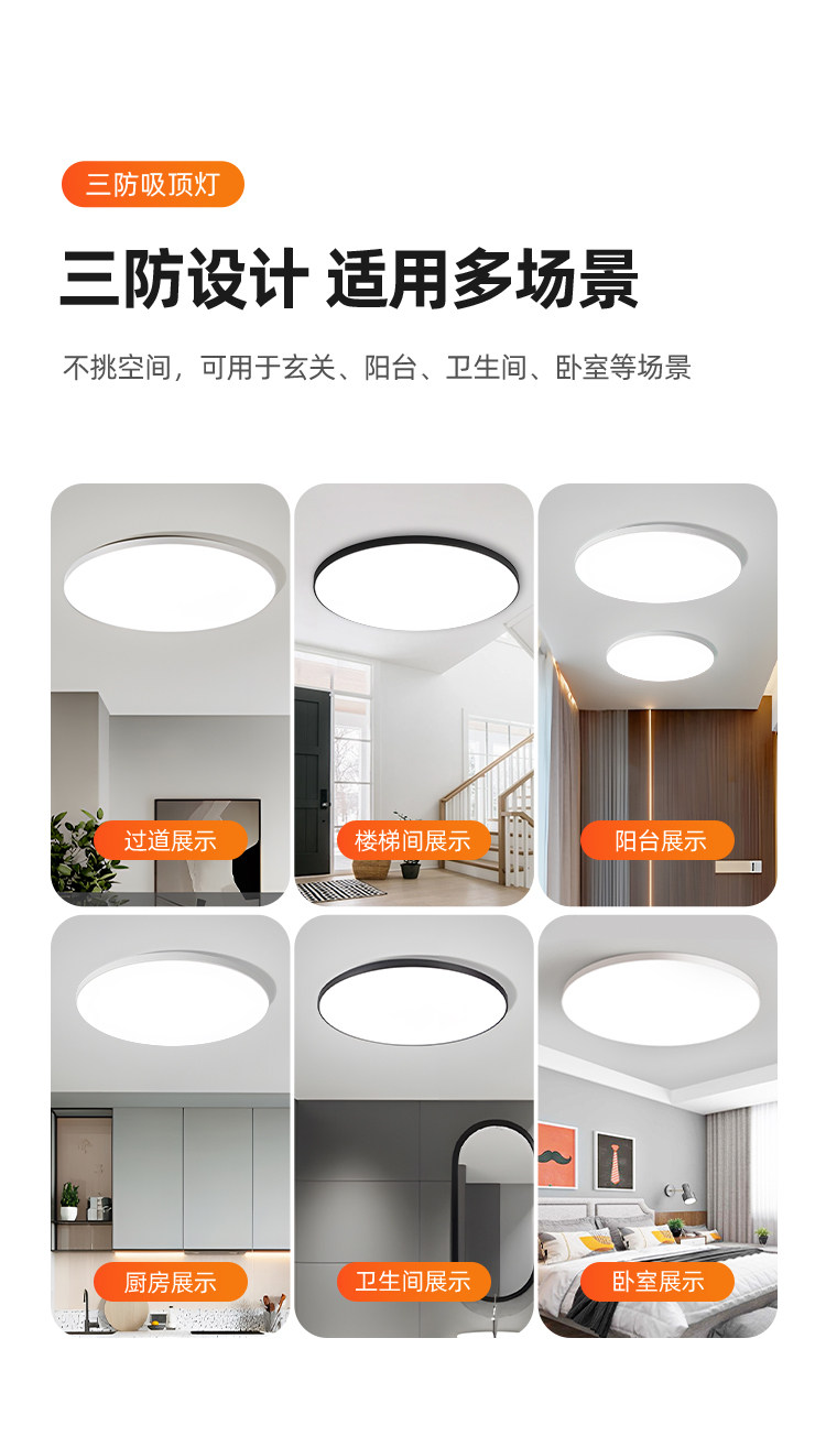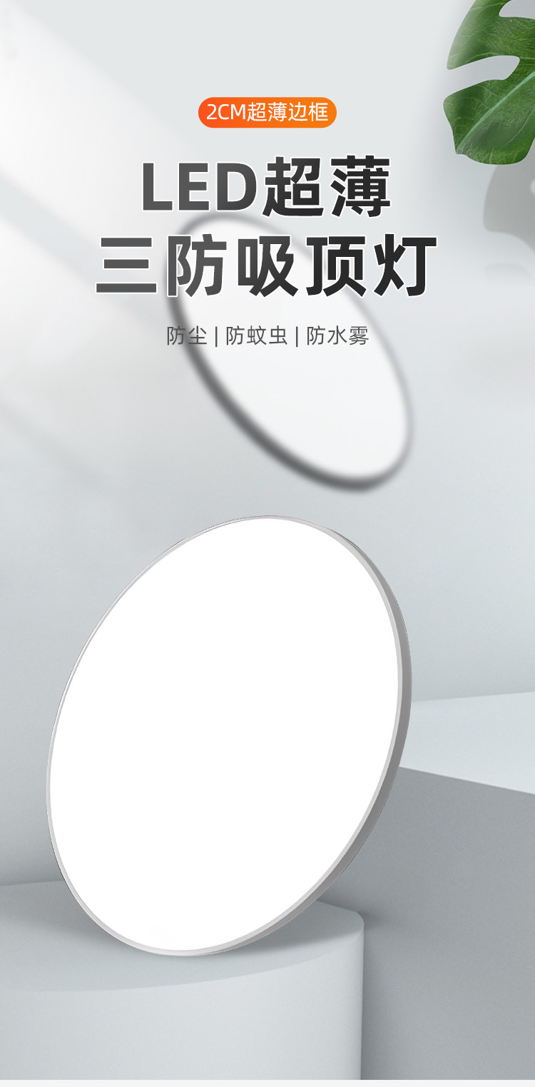 Led Three-Proof Ceiling Light Ultra-Thin Round Waterproof Bathroom Balcony Bedroom Kitchen Bathroom Light Aisle Corridor Light