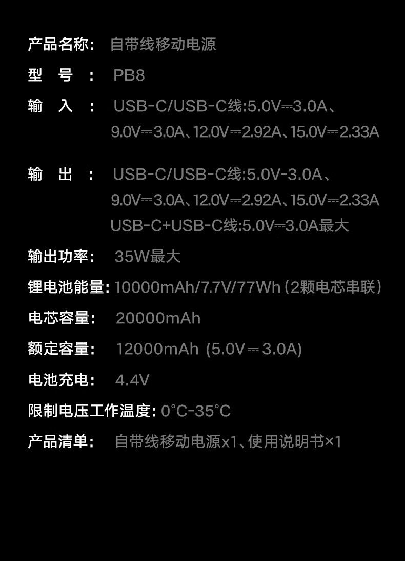 | Battery Capacity | 20000mAh |