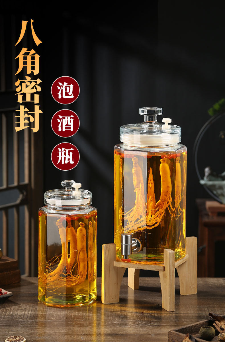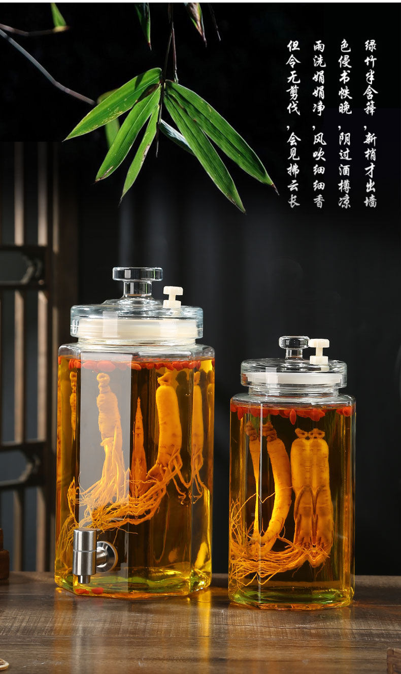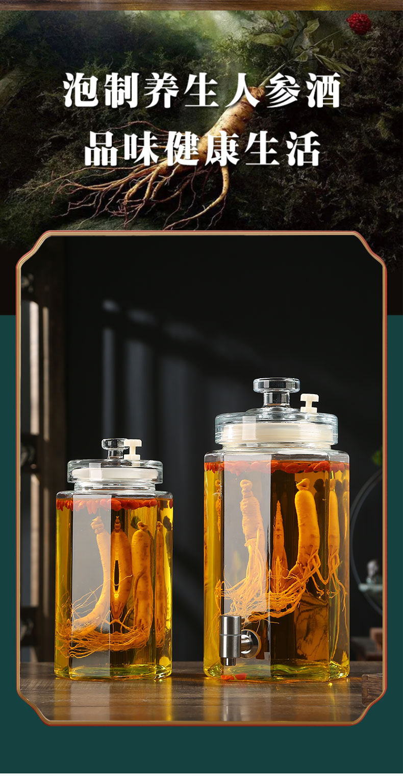 Glass Wine Bottle for Infusing Alcohol, High-End Ginseng Glass Medicinal Wine Jar, Empty Liquor Bottle, Sealed Wine Jar with Spigot