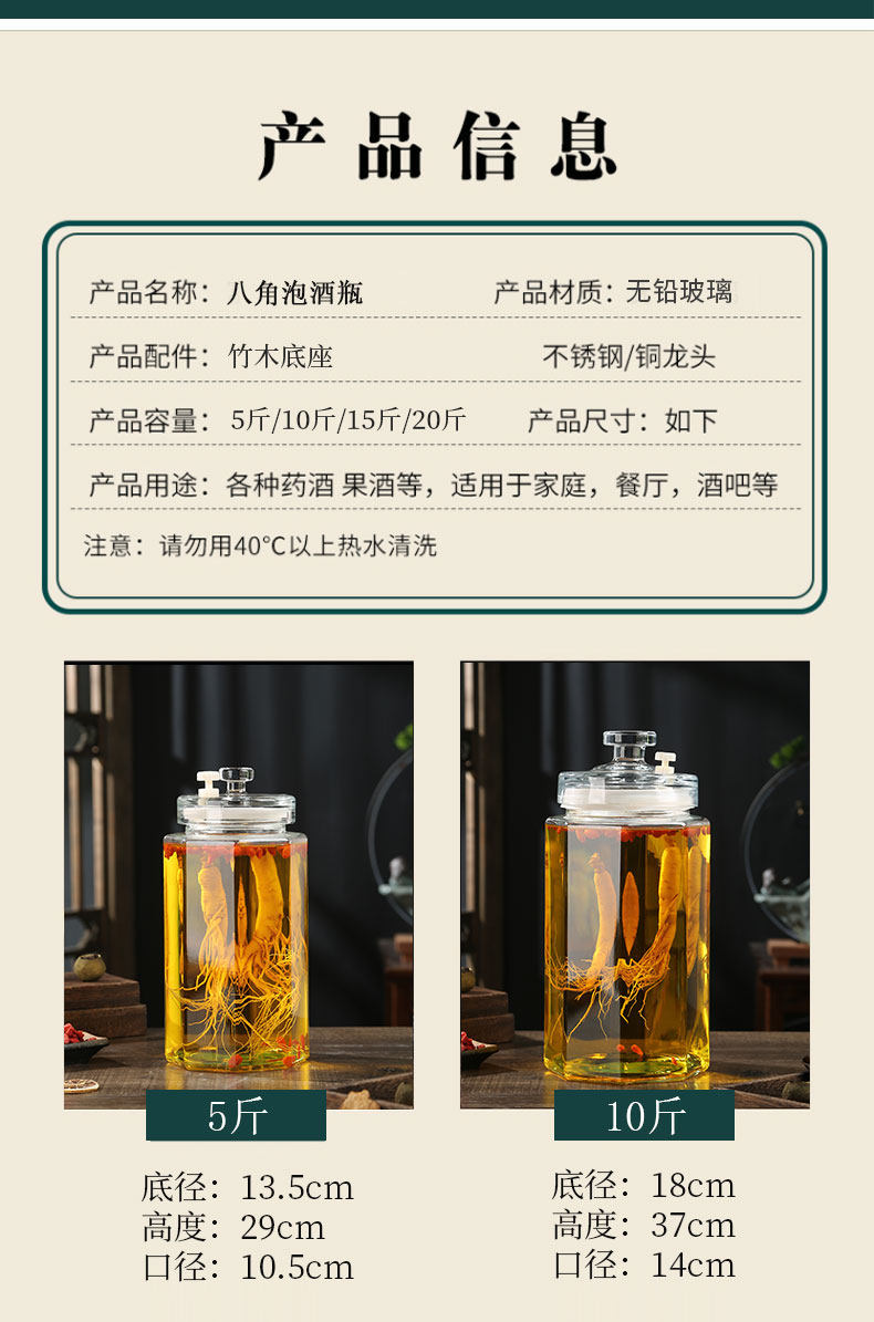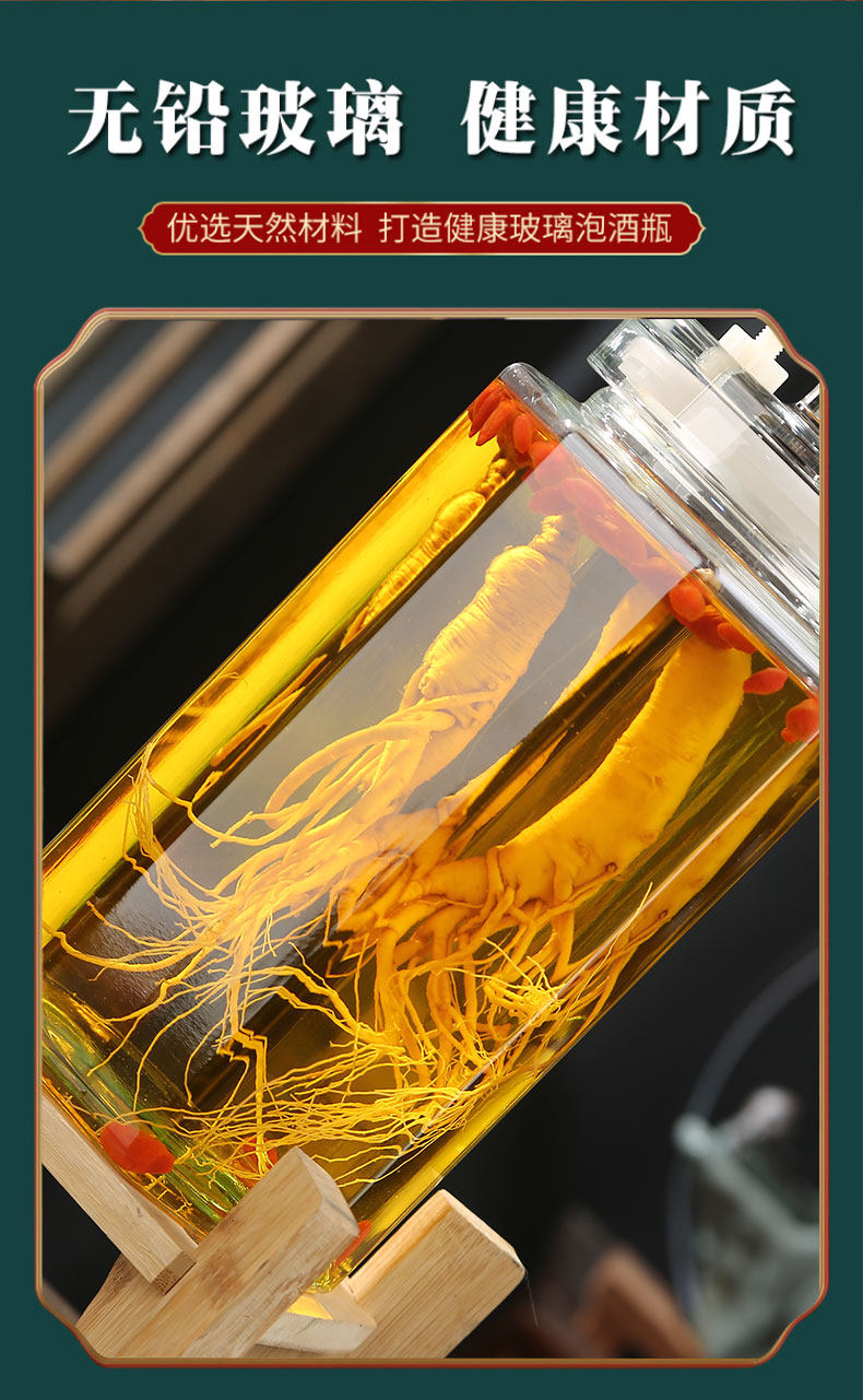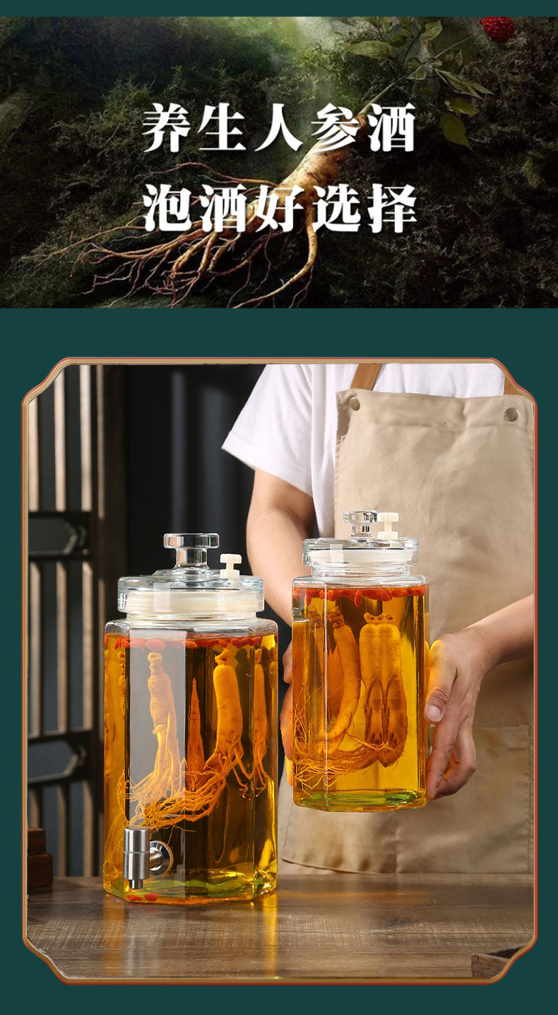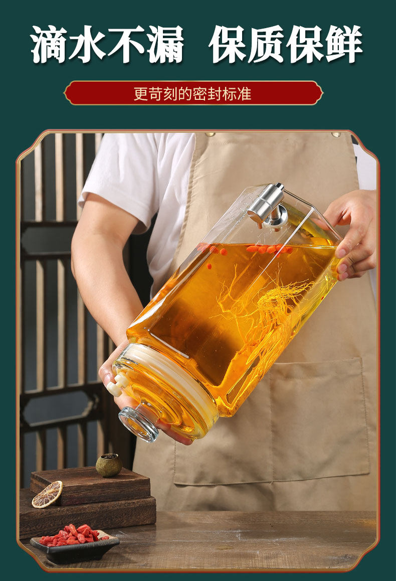 Glass Wine Bottle for Infusing Alcohol, High-End Ginseng Glass Medicinal Wine Jar, Empty Liquor Bottle, Sealed Wine Jar with Spigot